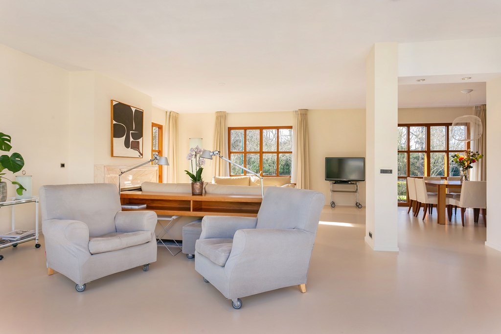 The detached villa is filled with natural light and privacy and offers 459 m² of living area, largely on the ground floor. It occupies one of the most beautiful and quiet locations in the De Salamander neighbourhood—just a two-minute walk from the Utrechtse Heuvelrug forest, yet close to all amenities in Veenendaal.