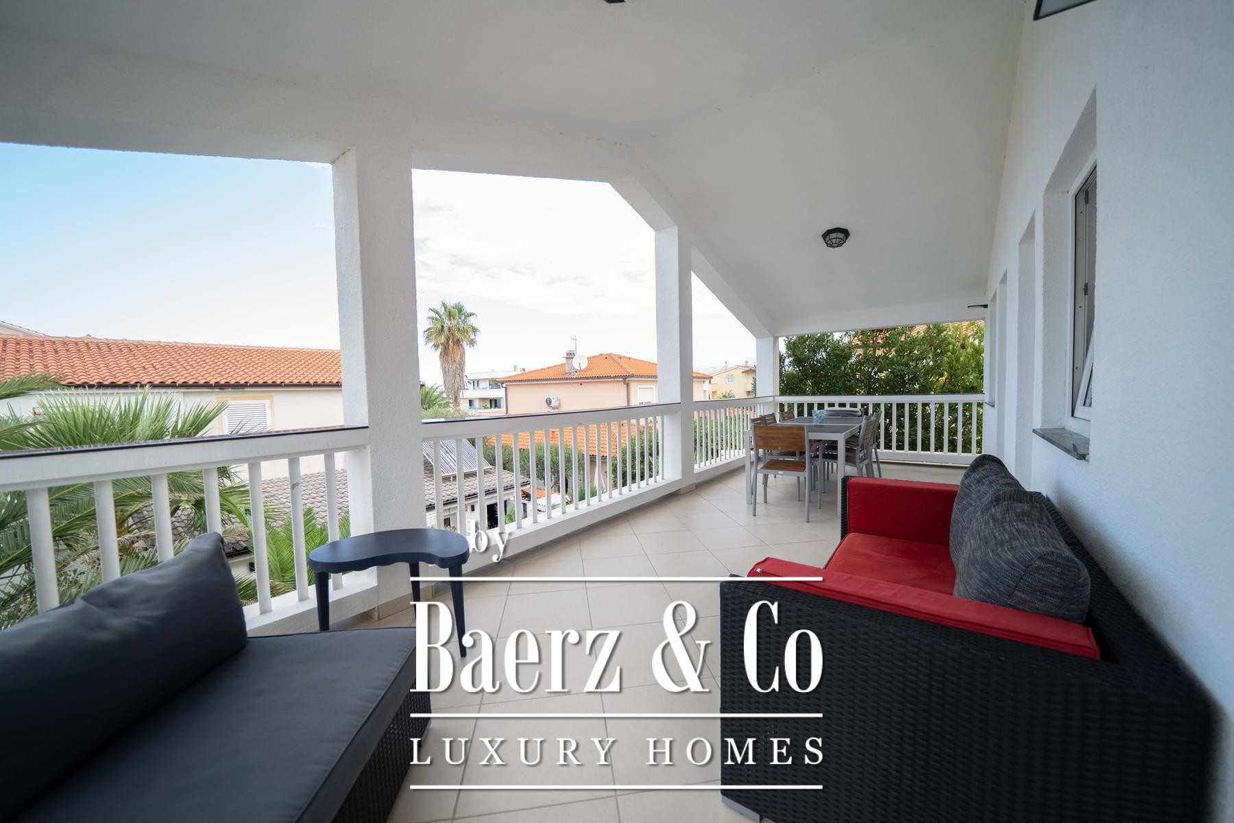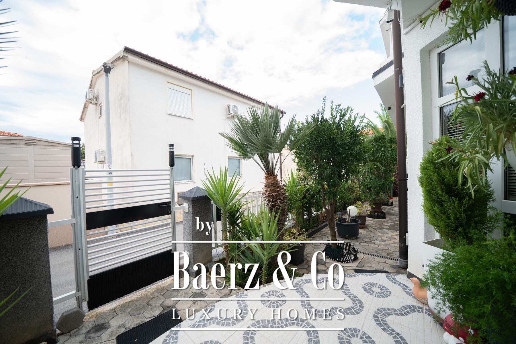 water heating has been installed throughout the house.Solar panels have also been installed, as well as an additional solar hot water system located in the garage/outbuilding of 25 m2. There is also an additional bathroom here.The yard is beautifully landscaped and abundant with greenery and Mediterranean trees that create a special atmosphereThis property is a perfect combination of comfort and functionality, suitable for use throughout the year or as an investment in tourism.The distance from the sea and the beach is only about 70 meters.Neat ownership.We are at your disposal for more information.