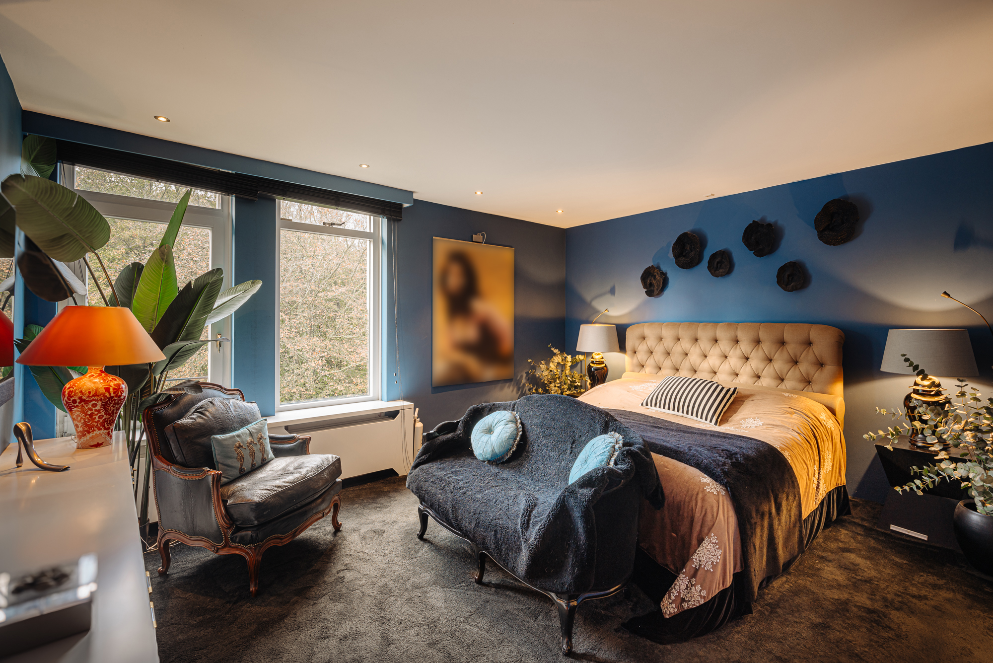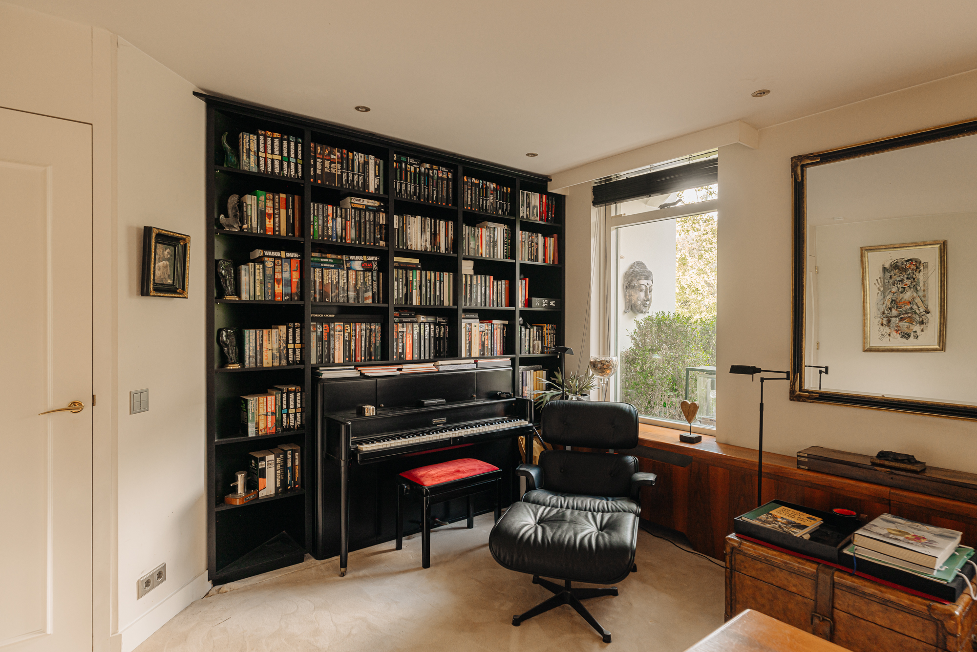 Beautifully situated 4-room penthouse (approx. 265 m² living space) with large balconies on the third floor of a small apartment complex on the Rust en Vreugd Estate. Originally two apartments, it was completely renovated and redesigned in 2009. You will find high-quality materials and luxurious details, including a custom-made interior and air conditioning. There are also two parking spaces and a storage unit in the basement.
