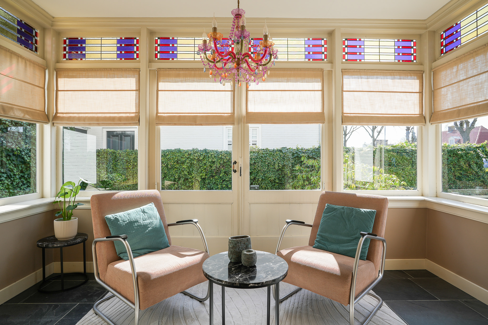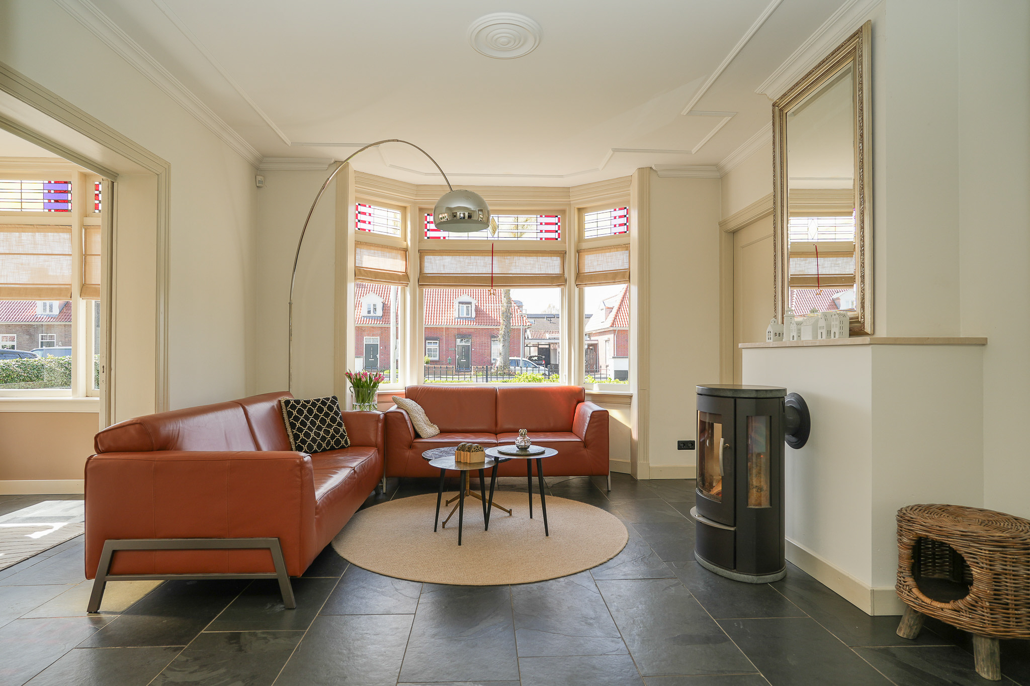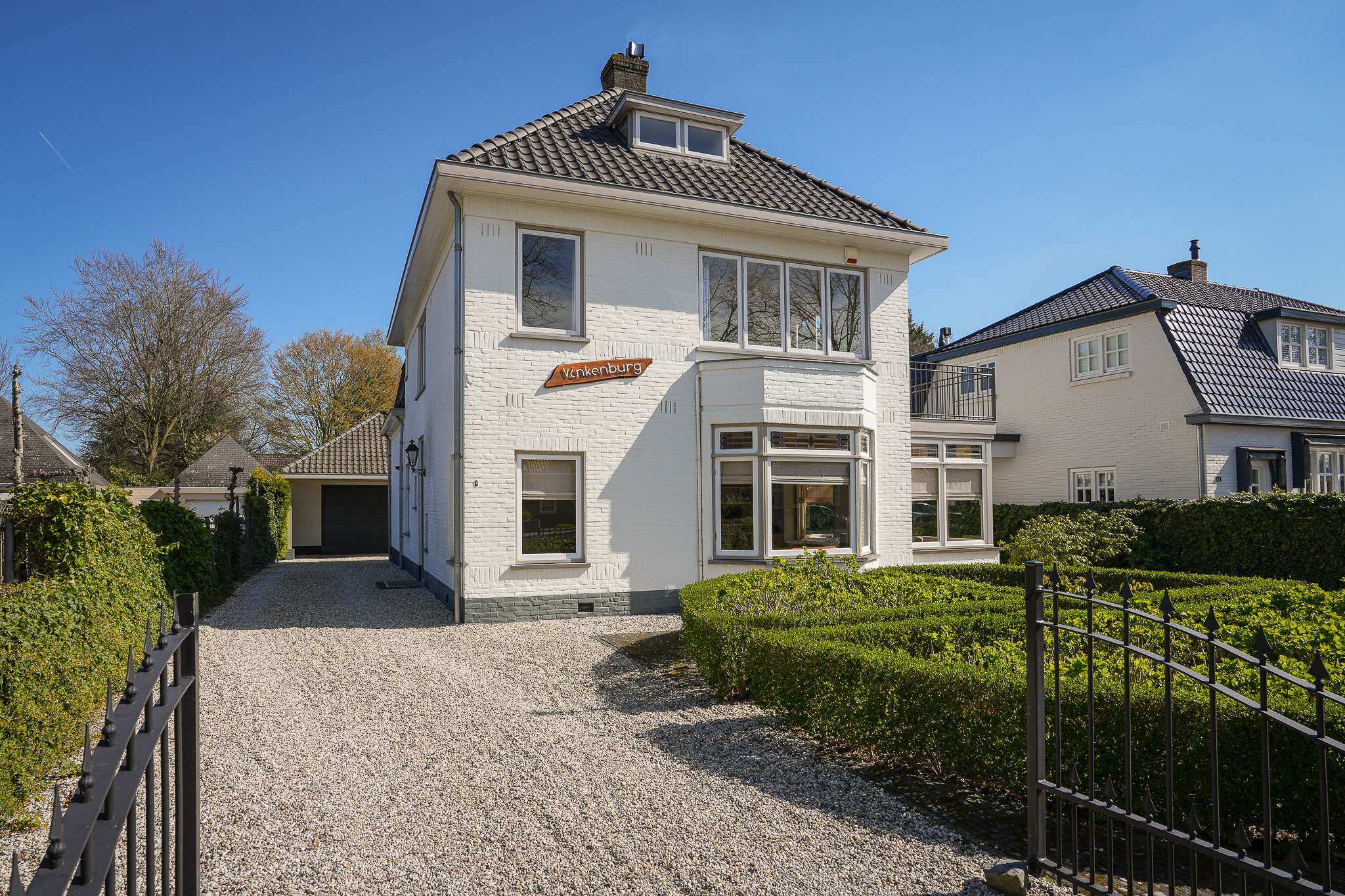 This striking white villa, named Vinkenburg, was built in 1929 to a design by municipal architect De Groot. Characteristic features from the period have been carefully preserved, including the wide overhangs, bay window, conservatory, stained-glass transoms and panelled doors with traditional ironmongery.