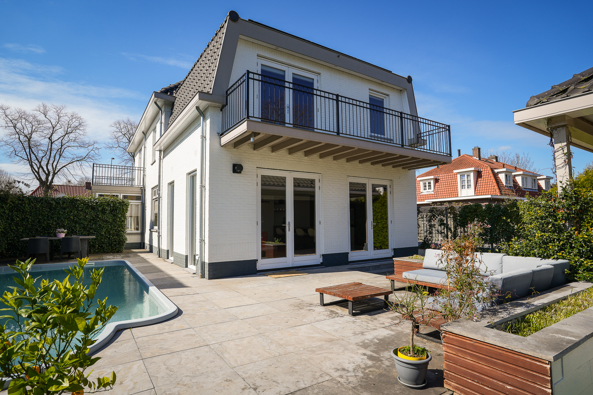 Near the historic centre of Zaltbommel stands this luxurious, pre-war detached villa, offering six bedrooms, two bathrooms and a multifunctional outbuilding, all set within a sun-drenched garden with a swimming pool.