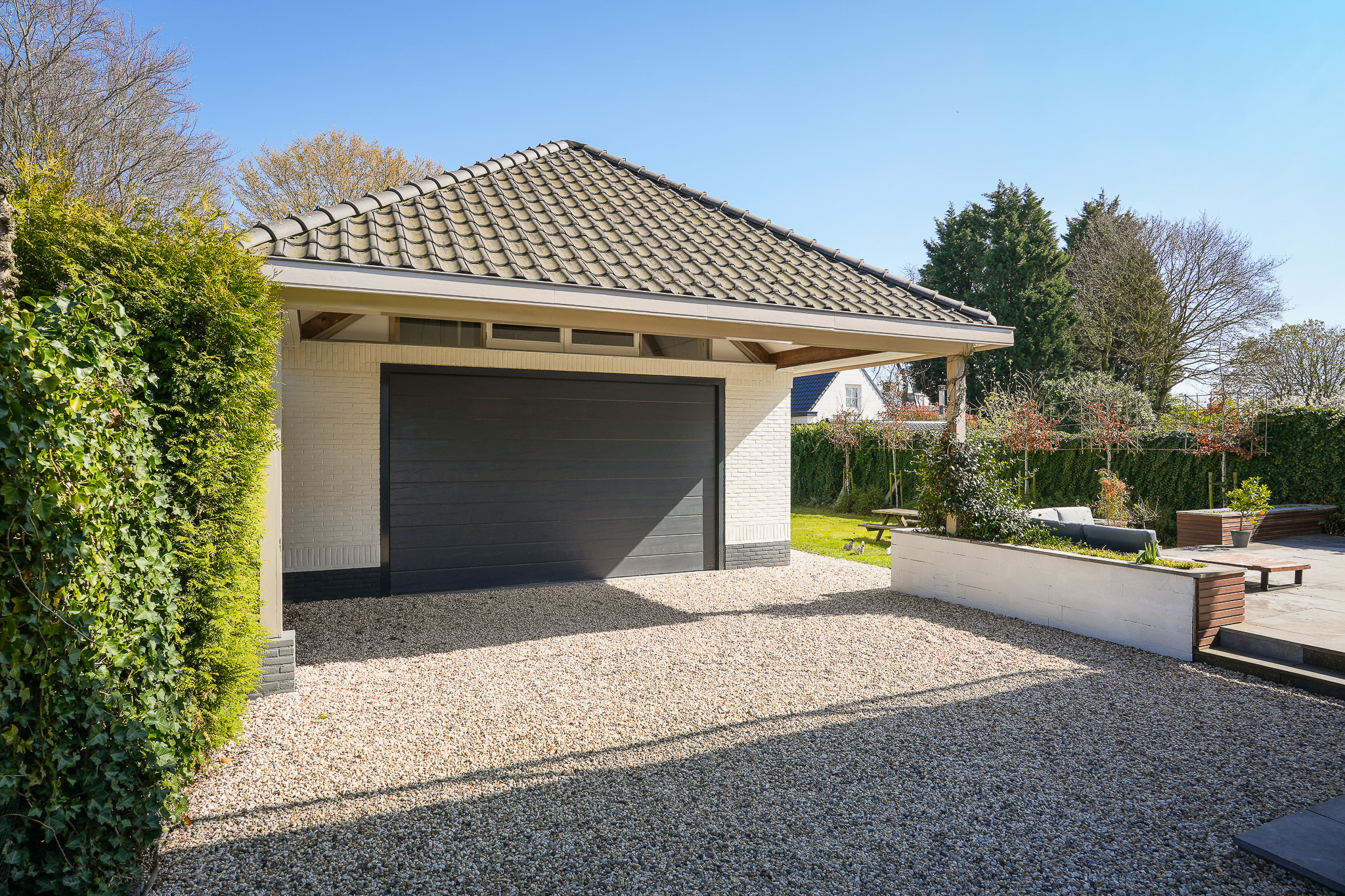 The fully insulated outbuilding (2016) is equipped with connections for gas, water, electricity and drainage. The ground floor consists of an open space suitable for parking multiple vehicles or use as a workshop, enhanced by its generous ceiling height.