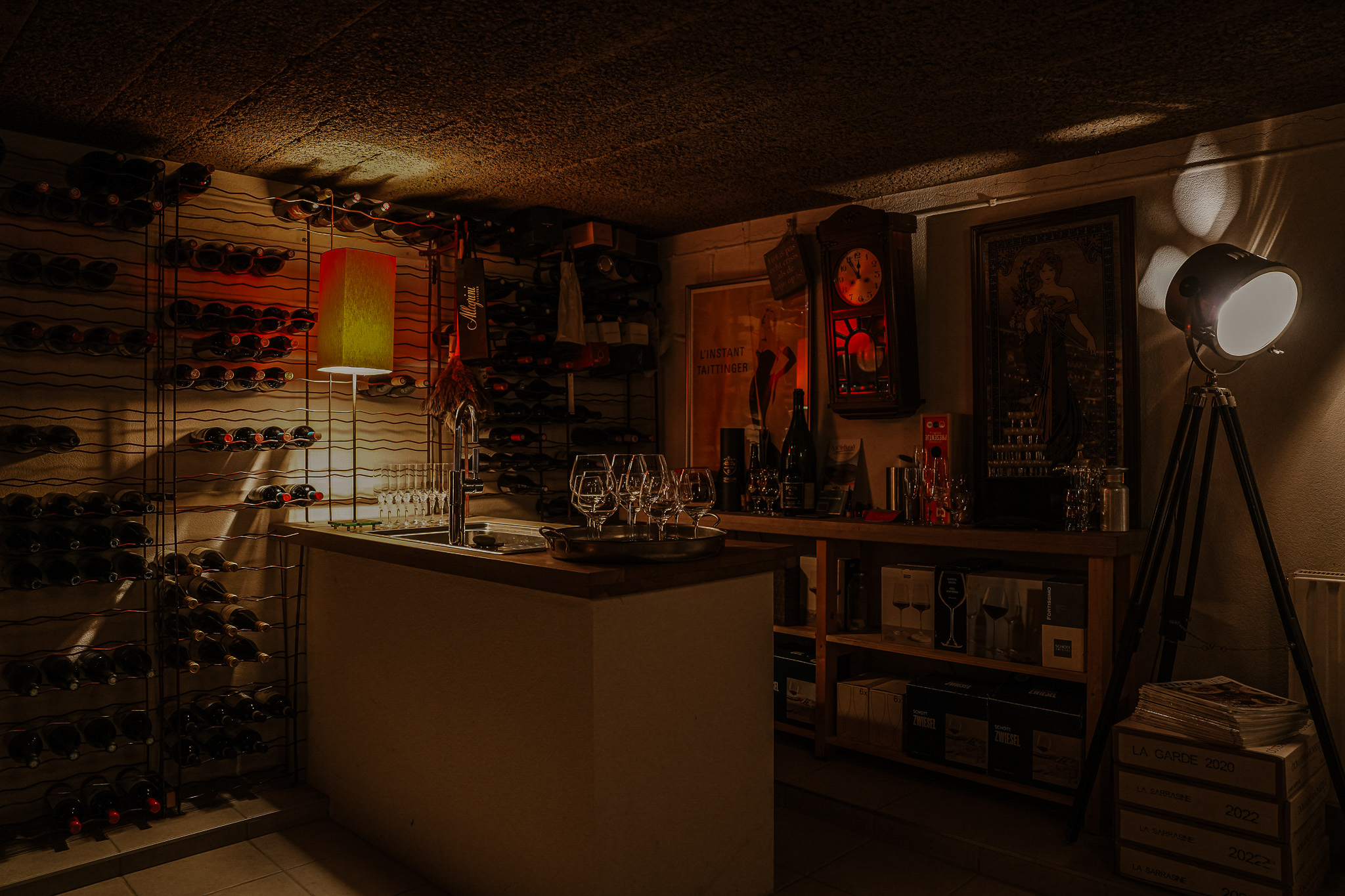 A spacious basement extends beneath the entire house, with a ceiling height of approx. 2.10 metres. Currently arranged as an atmospheric wine cellar where tastings are held, it could also serve as a hobby room, gym, or additional storage.