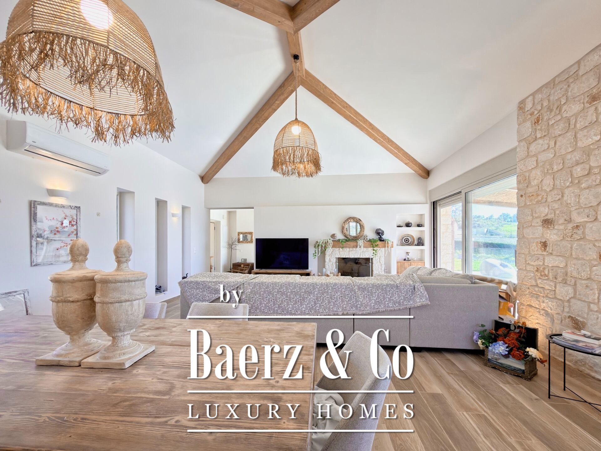 Al entrar, un amplio salón se organiza en torno a una chimenea de piedra, cuyos revestimientos auténticos prolongan el ambiente desde el interior al exterior. La cocina abierta, perfectamente integrada con la zona de estar, equilibra el confort con una funcionalidad clara. Tres generosos dormitorios tipo suite y tres baños refinados, complementados con un aseo adicional, aseguran privacidad y comodidad tanto para la vida diaria como para recibir invitados. Ventanas dobles de alta eficiencia energética, aislamiento avanzado y sistemas de seguridad aportan serenidad y tranquilidad en todo el hogar.