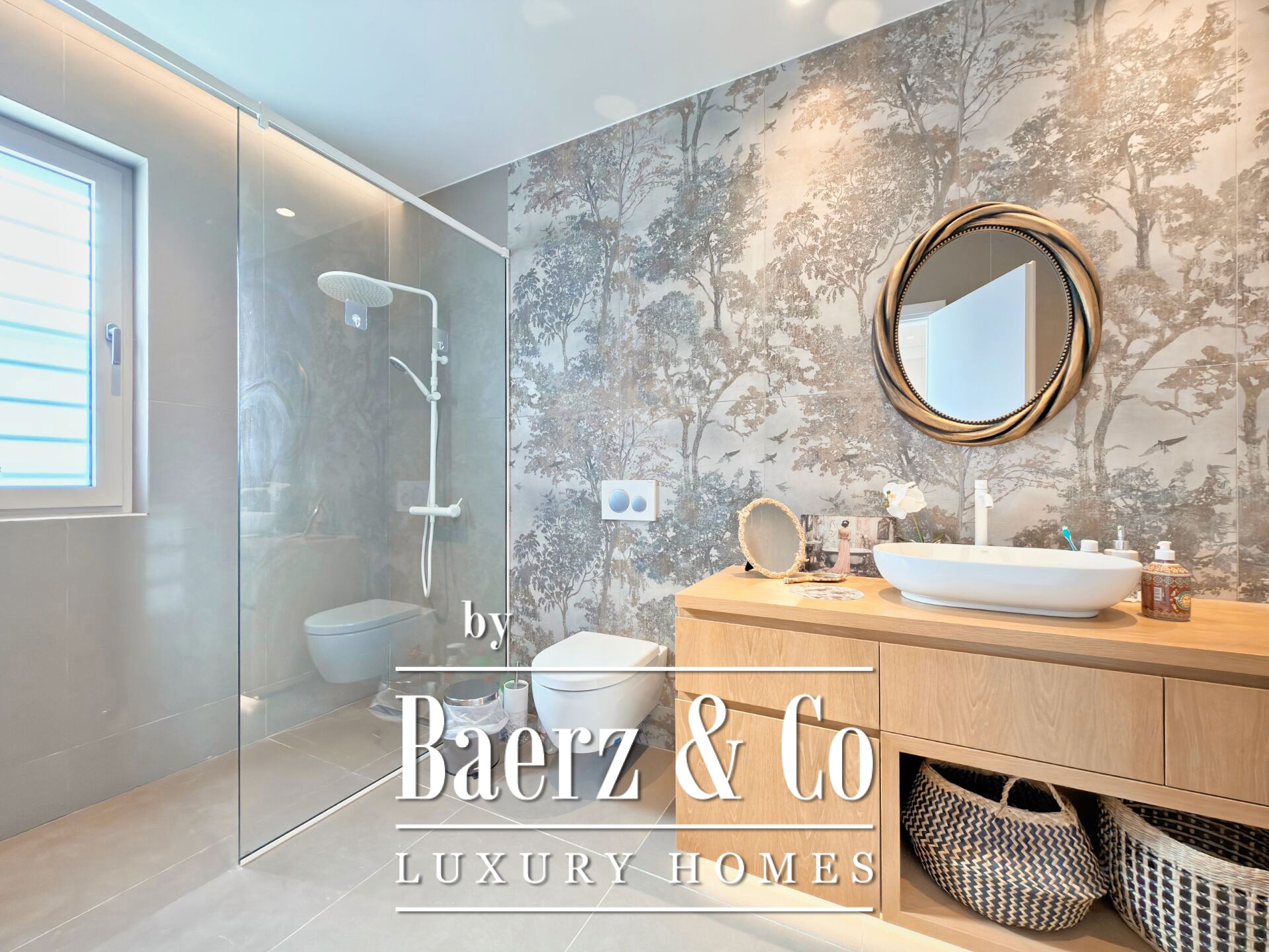 En el exterior, la elegancia discreta del patio se ve realzada por una piscina de 50 m² y una amplia zona de barbacoa bajo pérgolas de roble. Las vistas ininterrumpidas a la montaña, el mar y la naturaleza logran disolver los límites entre interior y exterior. Un sótano de 47 m² alberga parking y almacenamiento, mientras que el sistema fotovoltaico contribuye a la autosuficiencia. Esta villa ofrece la serenidad de una finca campestre, junto con el confort de un hogar diseñado con esmero para todas las estaciones.