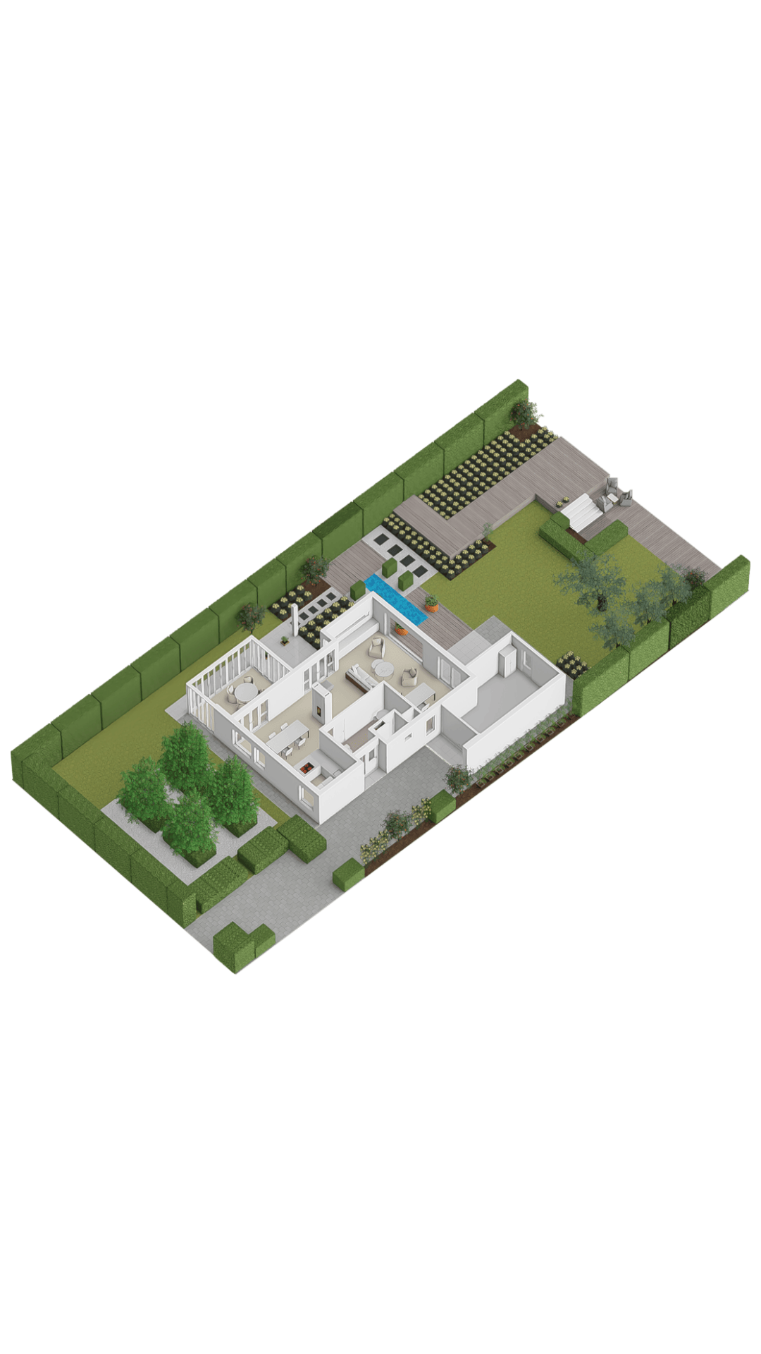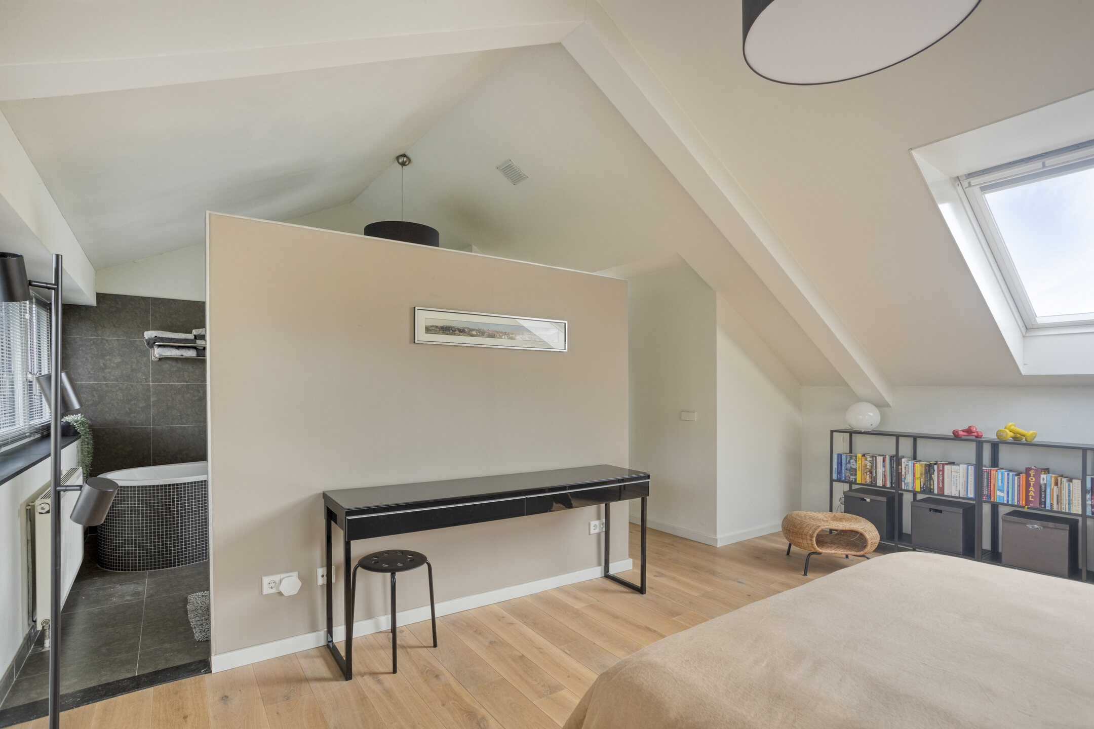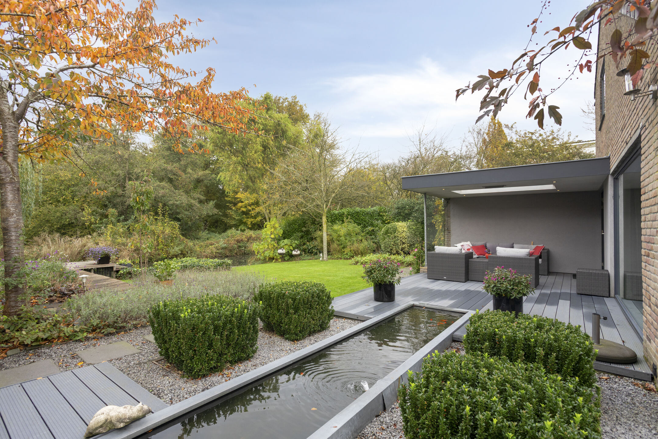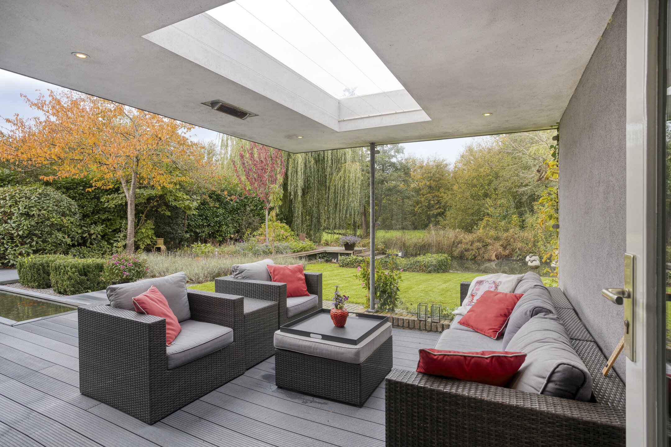 Dès l’entrée, un vaste hall s’ouvre sur un sol en chêne et des portes vitrées aux lignes épurées. Le séjour et la cuisine-salle à manger sont séparés par une cheminée Bellfire à double foyer, diffusant une chaleur apaisante au cœur de l’espace. La cuisine luxueuse, dotée d’équipements haut de gamme et d’un plan de travail en pierre bleue belge, allie usage quotidien et art de vivre. La façade arrière, caractérisée par de larges baies vitrées, sublime l’harmonie du jardin et la perspective protégée de l’Egmonderhout.