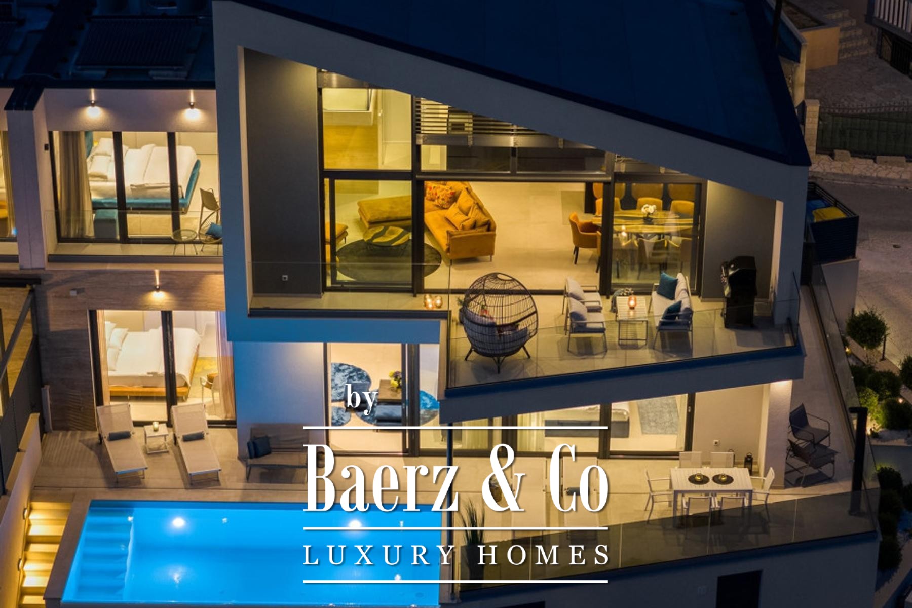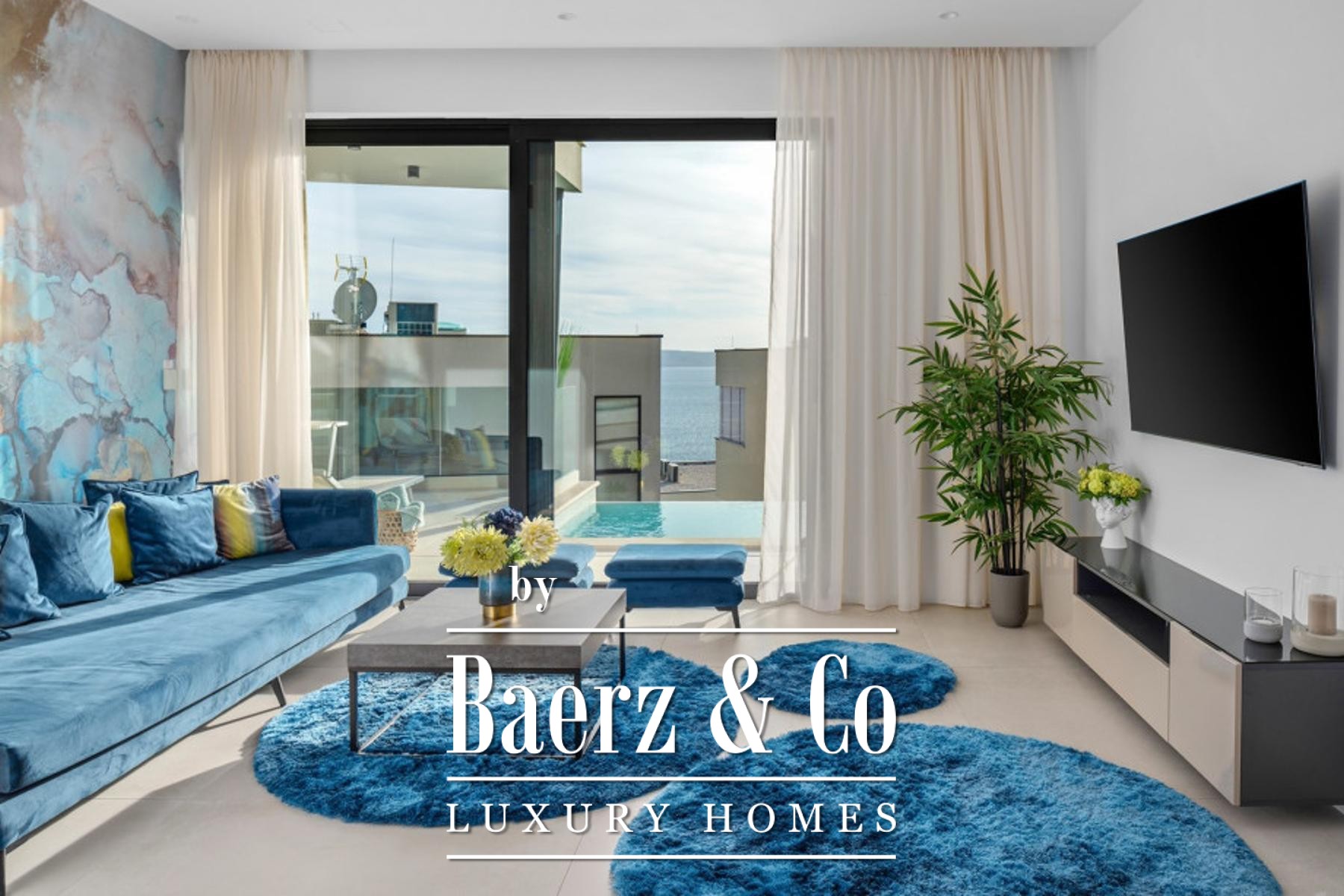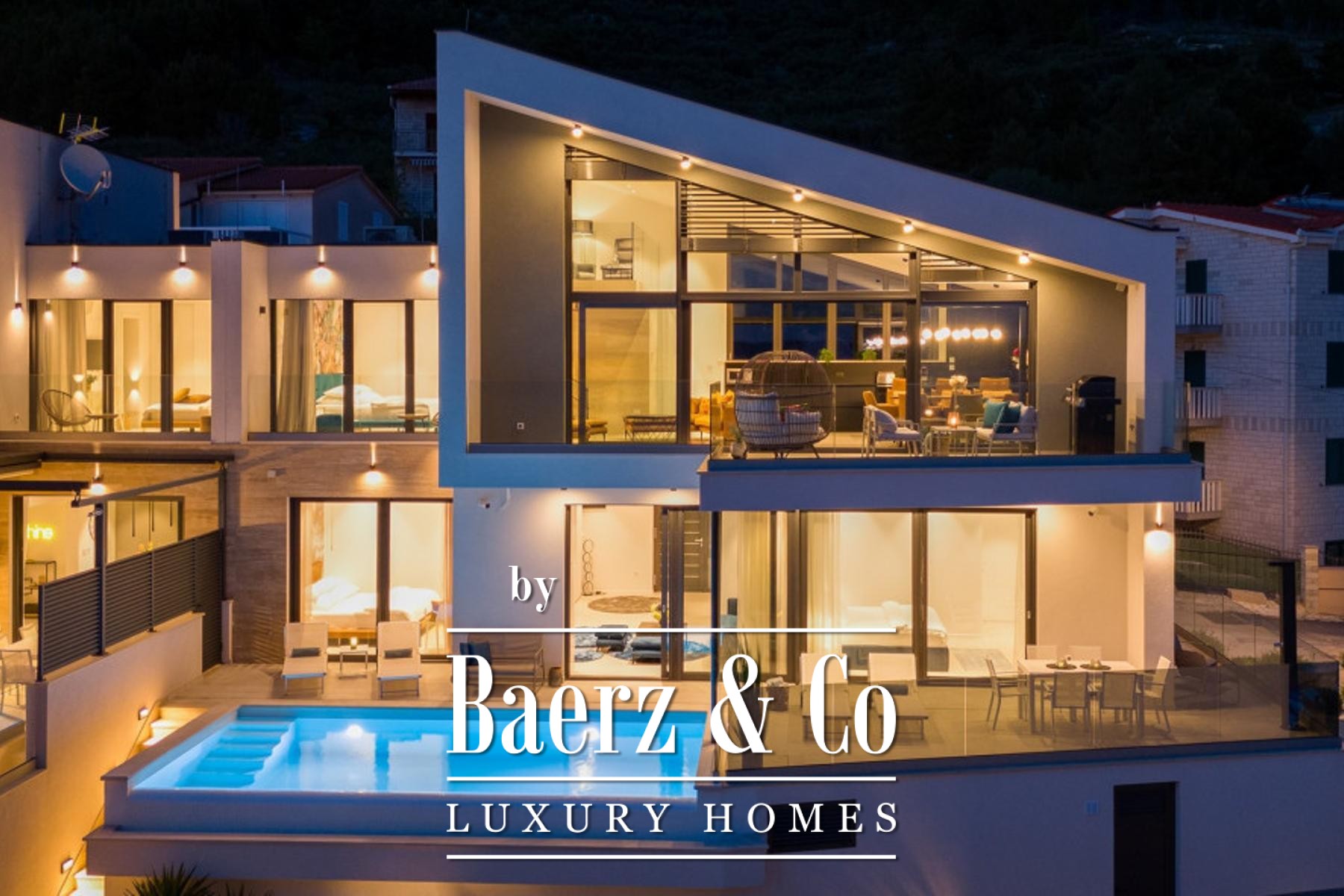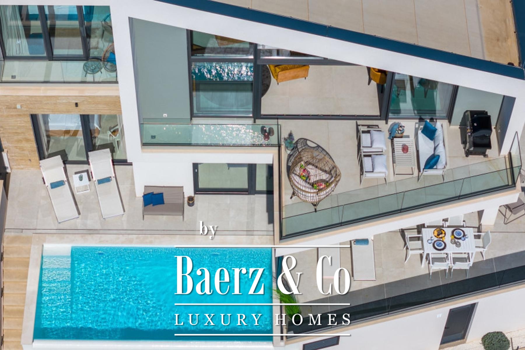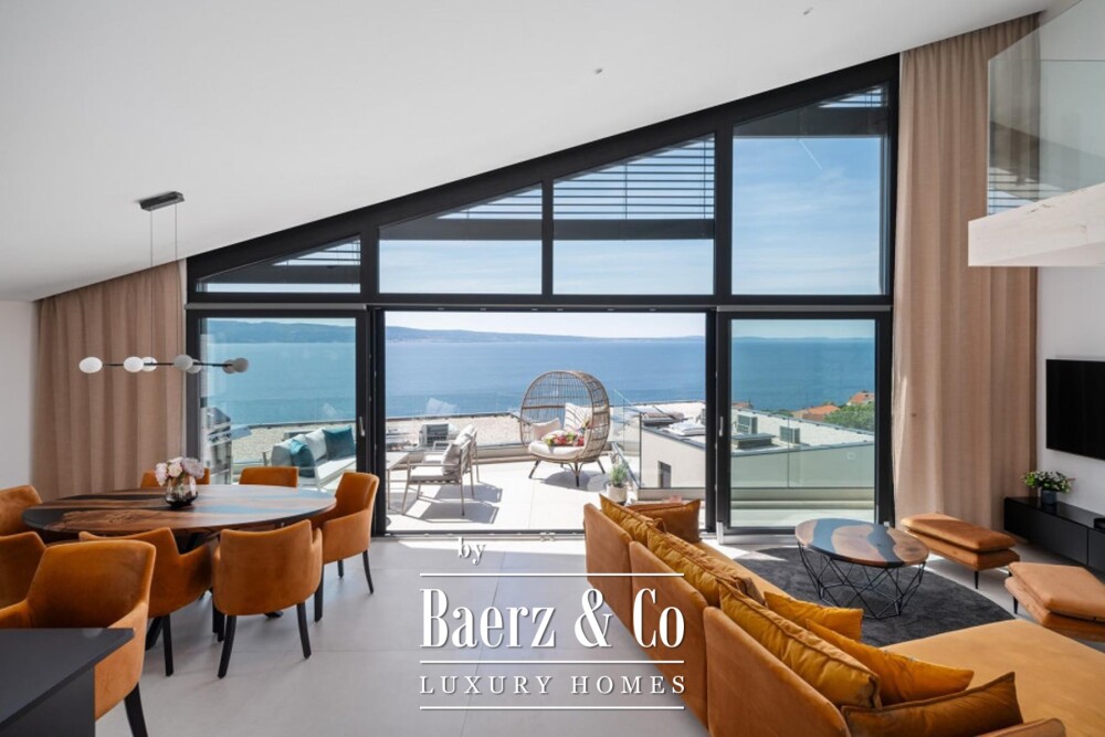 Jesenice, modern semi-detached villa with swimming pool. Spread over three floors, net usable area 245 m2. Consists of a living room, open-concept kitchen and dining room, 3 bedrooms, 2 bathrooms and one toilet, as well as a beautiful terrace with a swimming pool and a sunbathing area.Thanks to the stunning architecture, the upper floor has impressive ceiling heights combined with a beautiful sea view from the living room.It has 2 parking spaces.The villa was built to the highest technical standards, including smart home technology, underfloor heating, air conditioning and electrically operated roller shutters.Completed in 2023, it is fully furnished and equipped and is being sold as such.The advertised price refers to the purchase of the villa with the company that owns it.Further information on request.