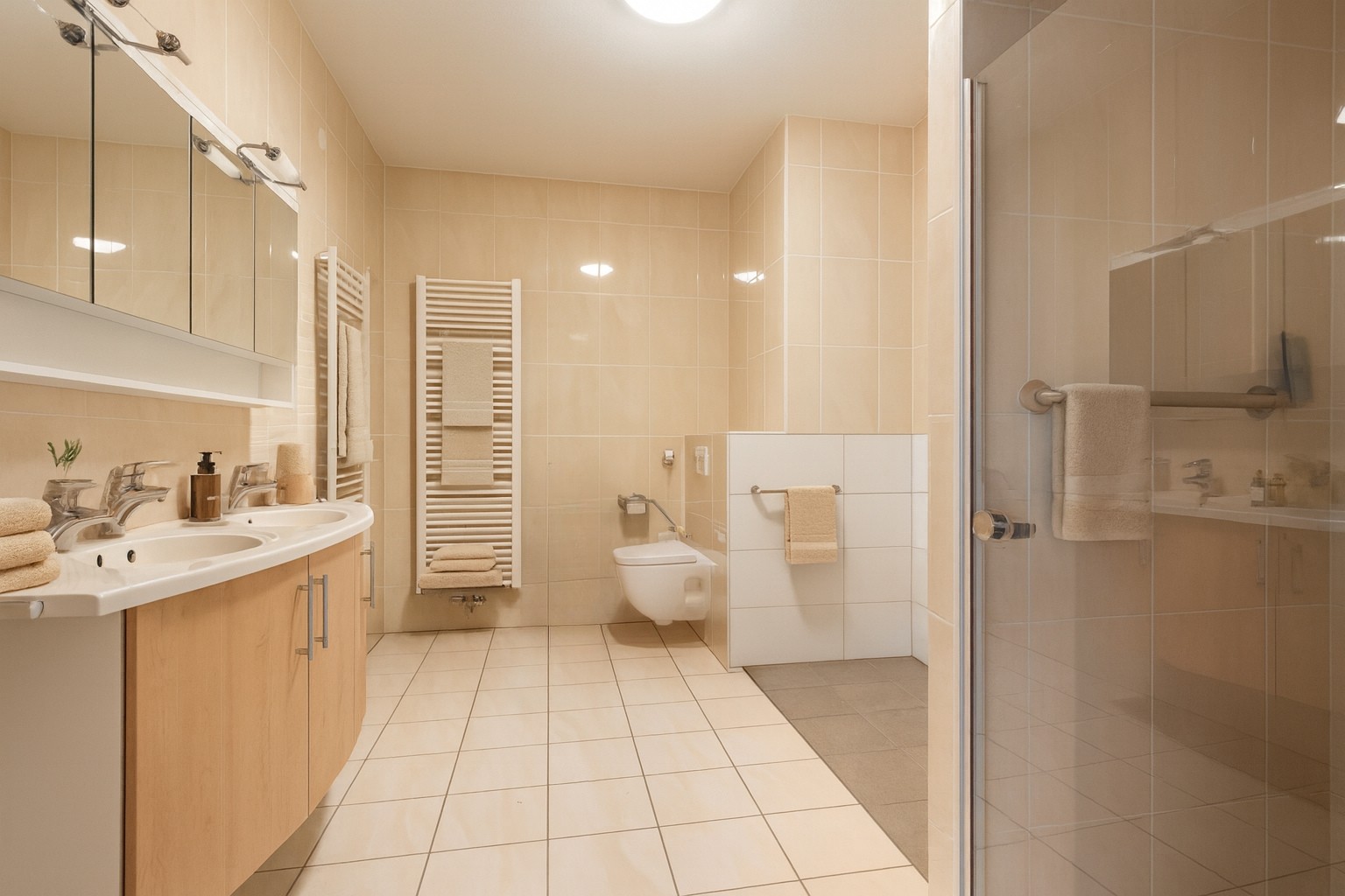 Les trois chambres bénéficient d'un sol PVC neuf, alliant chaleur et robustesse. La suite parentale dispose de rangements sur mesure, d’un accès balcon et d’une salle de bains attenante avec douches à l’italienne accessibles à tout âge. La seconde chambre profite de son propre balcon et dressing, la troisième est actuellement aménagée en bureau. Une deuxième salle de bains ainsi que des équipements optimaux offrent une flexibilité tant pour les invités que pour les résidents.