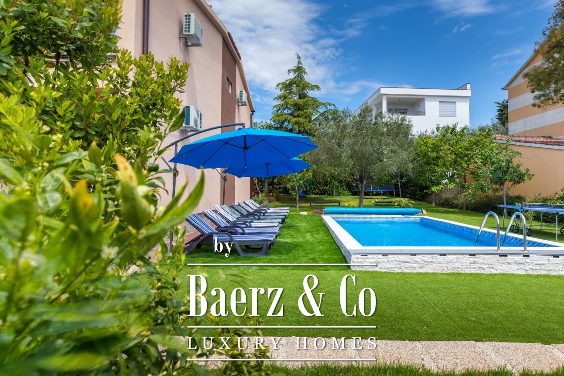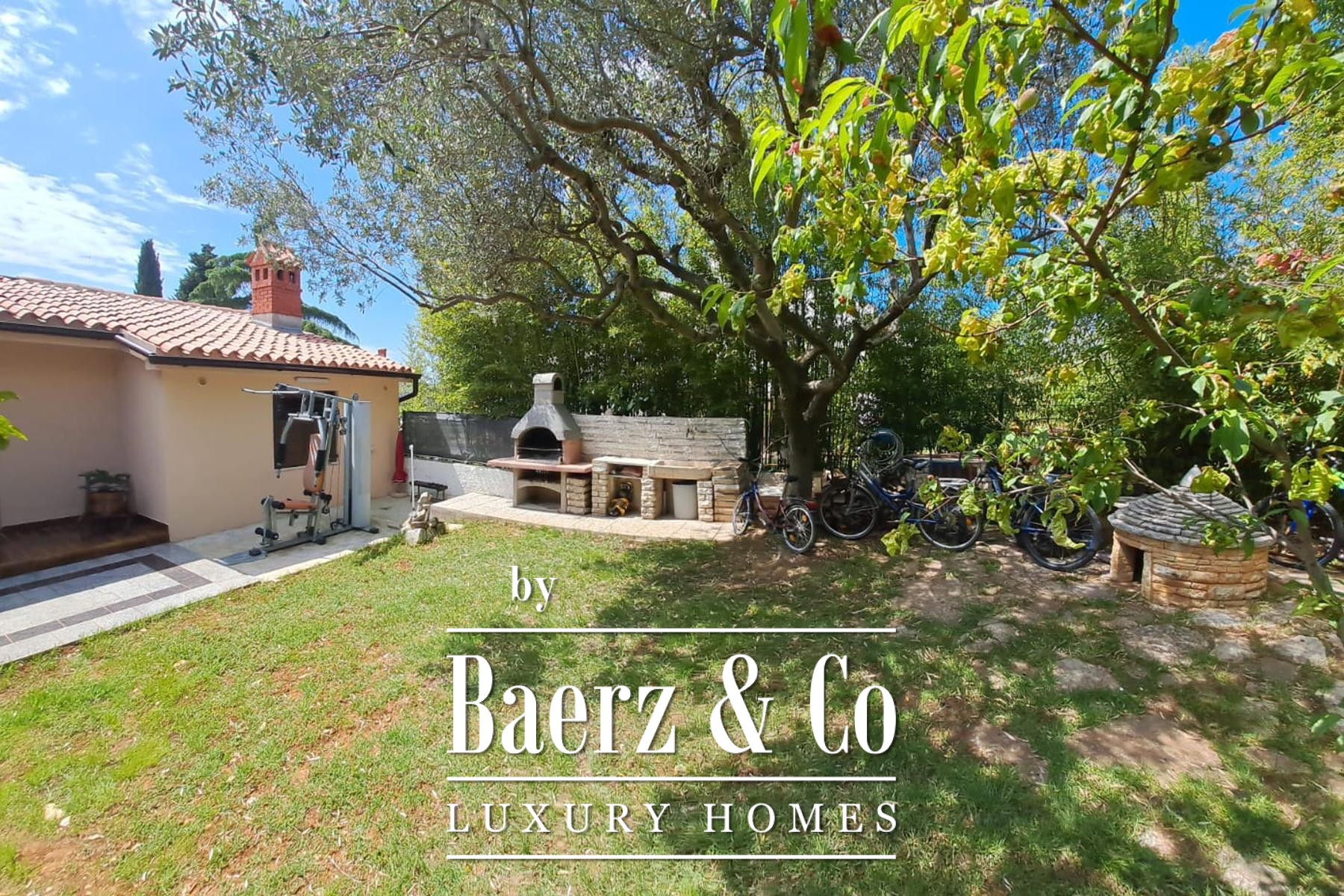 La maison familiale Fažana évoque une atmosphère sereine à seulement 600 mètres du littoral adriatique. Cette résidence de 200 m², nichée dans un jardin paysager de 815 m², harmonise la vie privée en famille et l’art de recevoir avec raffinement.