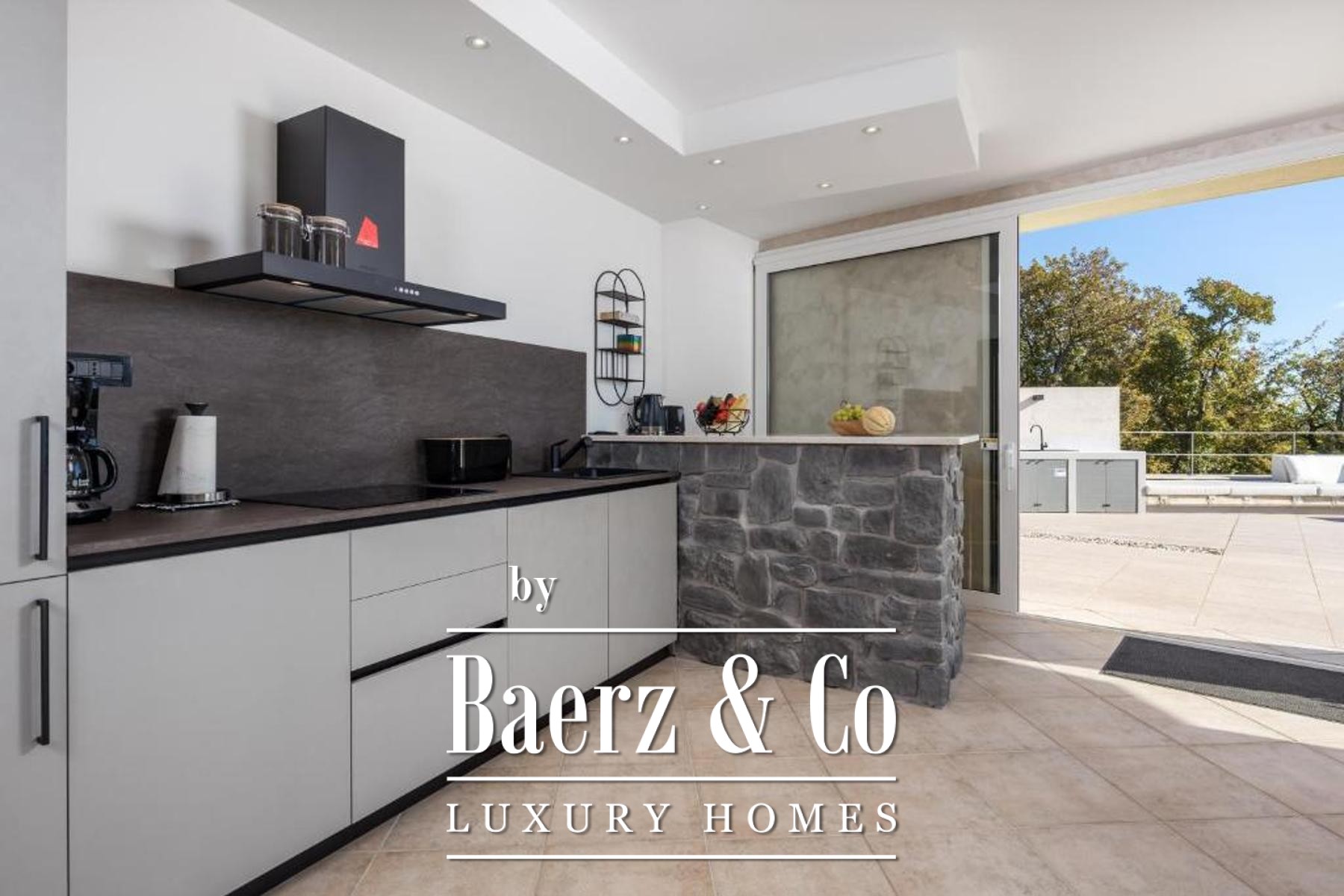 Édifiée sur un terrain de 1 585 m², la propriété accueille ses hôtes par un vaste garage privé, une buanderie, un espace loisirs ainsi qu'un appartement indépendant d'une chambre situé au sous-sol, garantissant intimité et flexibilité. La cuisine d'été s'ouvre sur une grande terrasse dotée d'une piscine à débordement et d'un solarium, offrant calme et vue imprenable sur la mer.