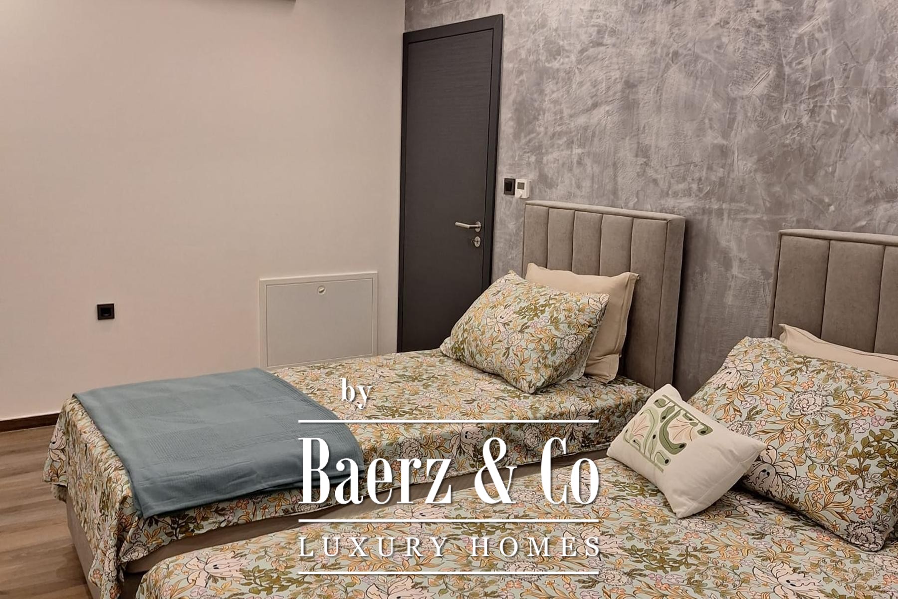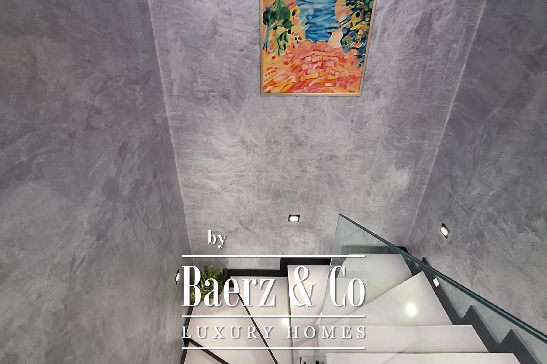La configuration a été soigneusement pensée pour assurer un confort contemporain et une élégante intimité. Le niveau inférieur accueille un espace bien-être dédié, une salle de sport ainsi qu’un espace polyvalent pour le sport ou la détente, sans oublier une buanderie pratique. Au rez-de-chaussée, un vaste séjour s’ouvre de façon fluide sur une cuisine américaine et la salle à manger ; un WC invités et une chambre avec salle de bains privative complètent judicieusement ce niveau.
