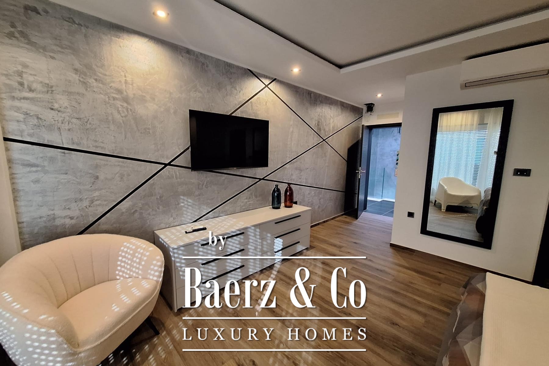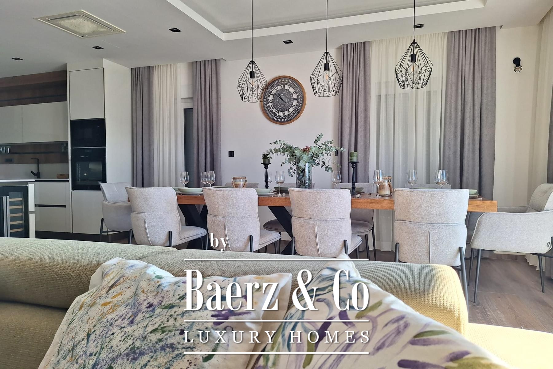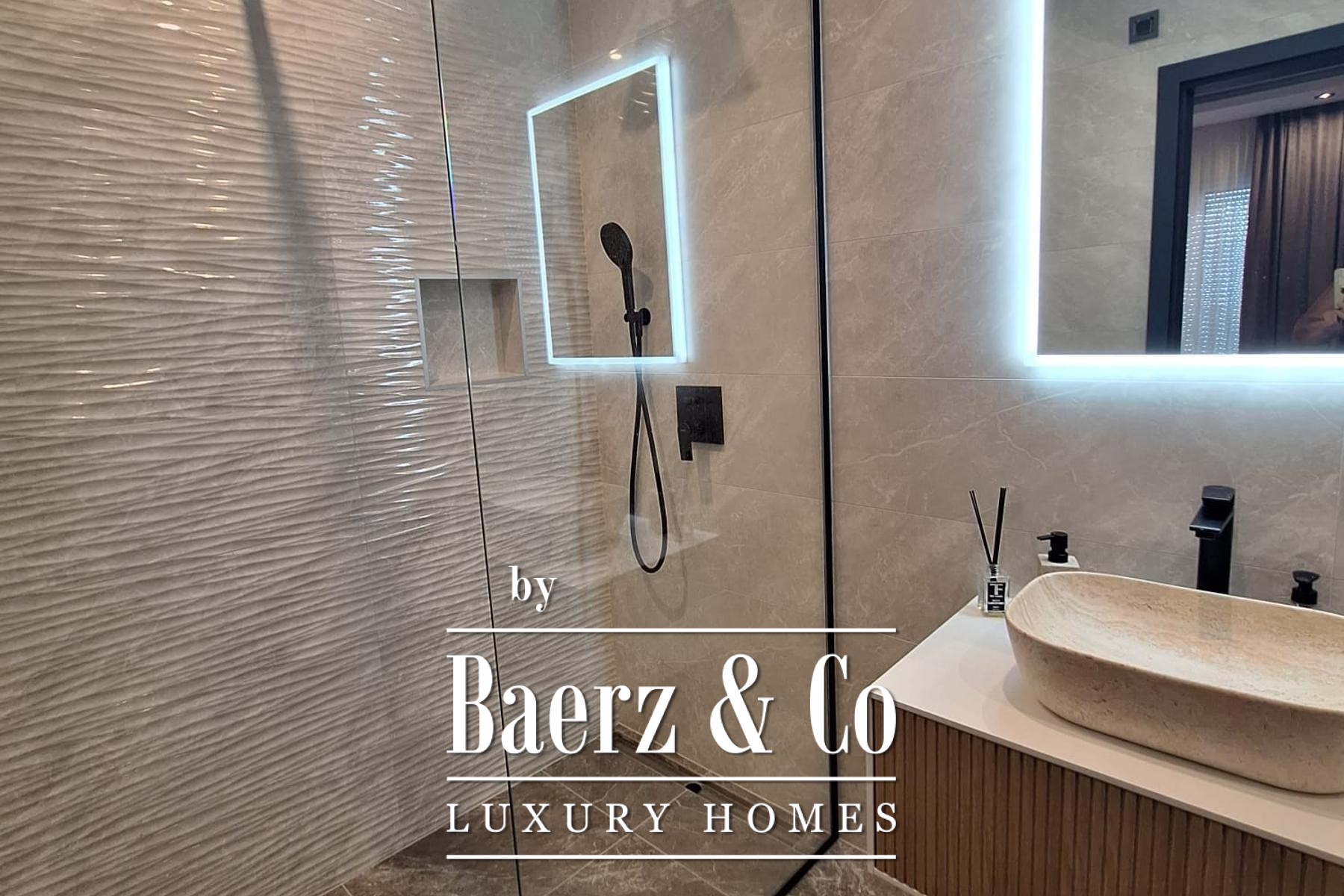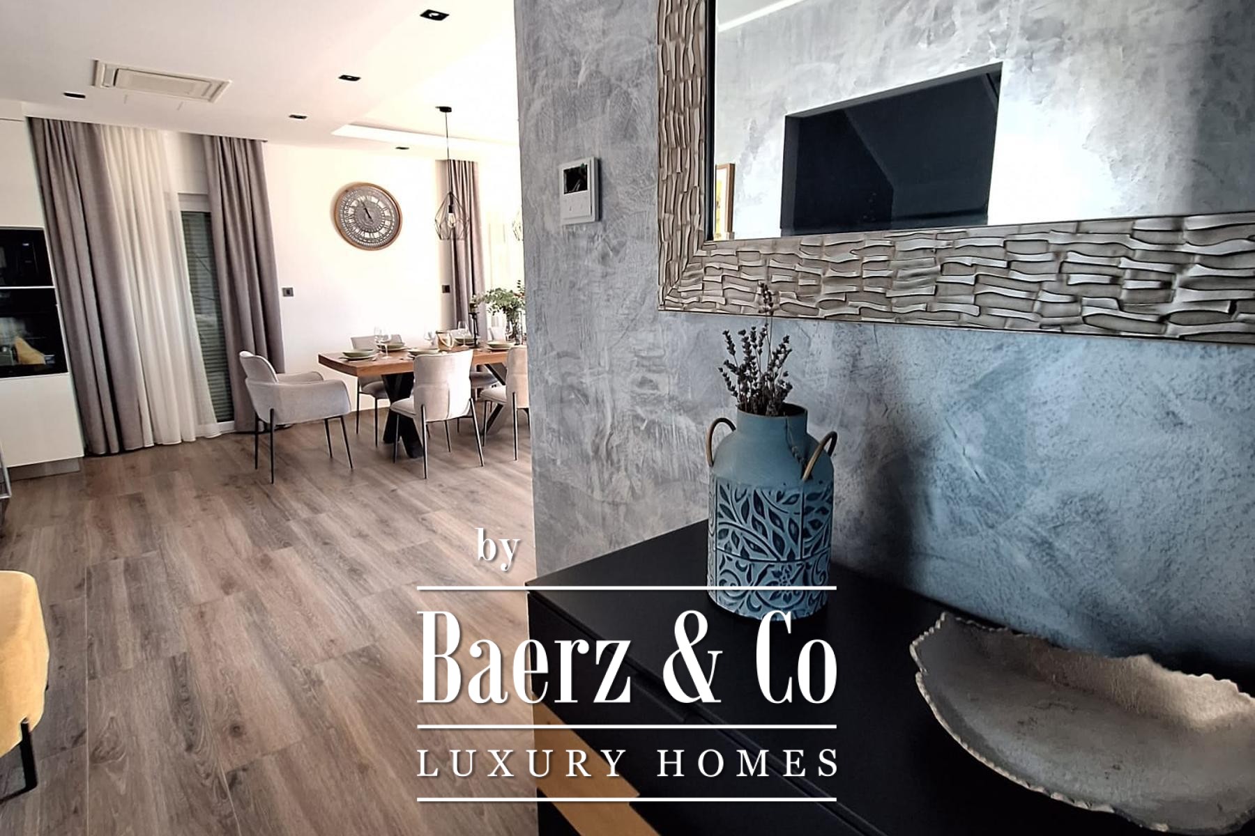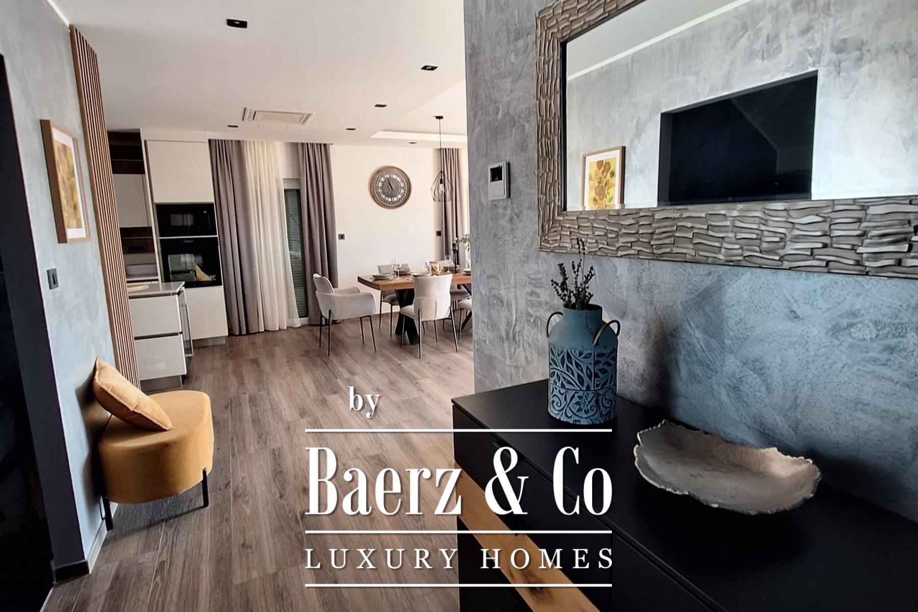 À l’étage, quatre chambres disposent chacune de leur propre espace et de leur salle de bains privative, offrant ainsi un équilibre parfait entre autonomie et vie familiale. À l’extérieur, une vaste terrasse encadre la piscine et prolonge l’espace de vie vers la mer, invitant à de longs après-midis de contemplation ou à des moments de convivialité. Cette propriété, villa de luxe à vendre à Novi Vinodolski, conjugue la clarté du design à une adresse côtière enviée.
