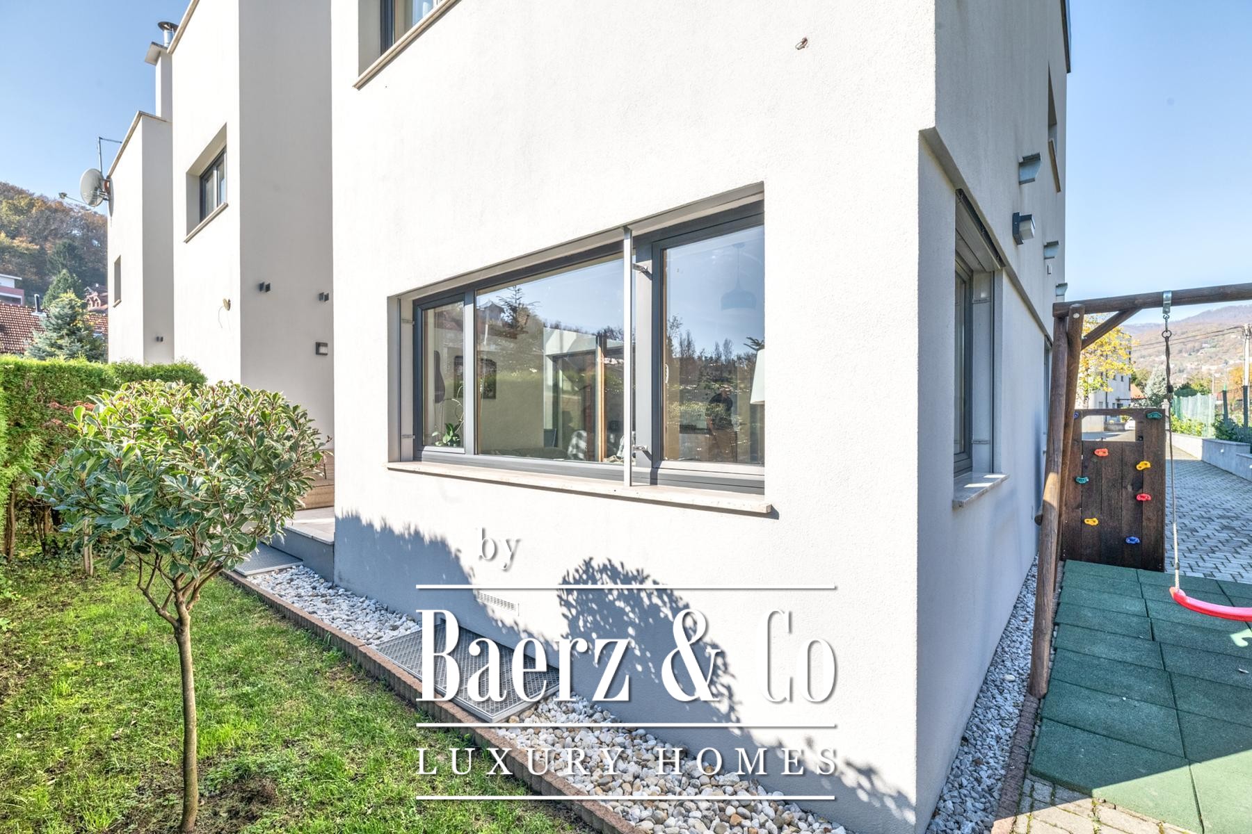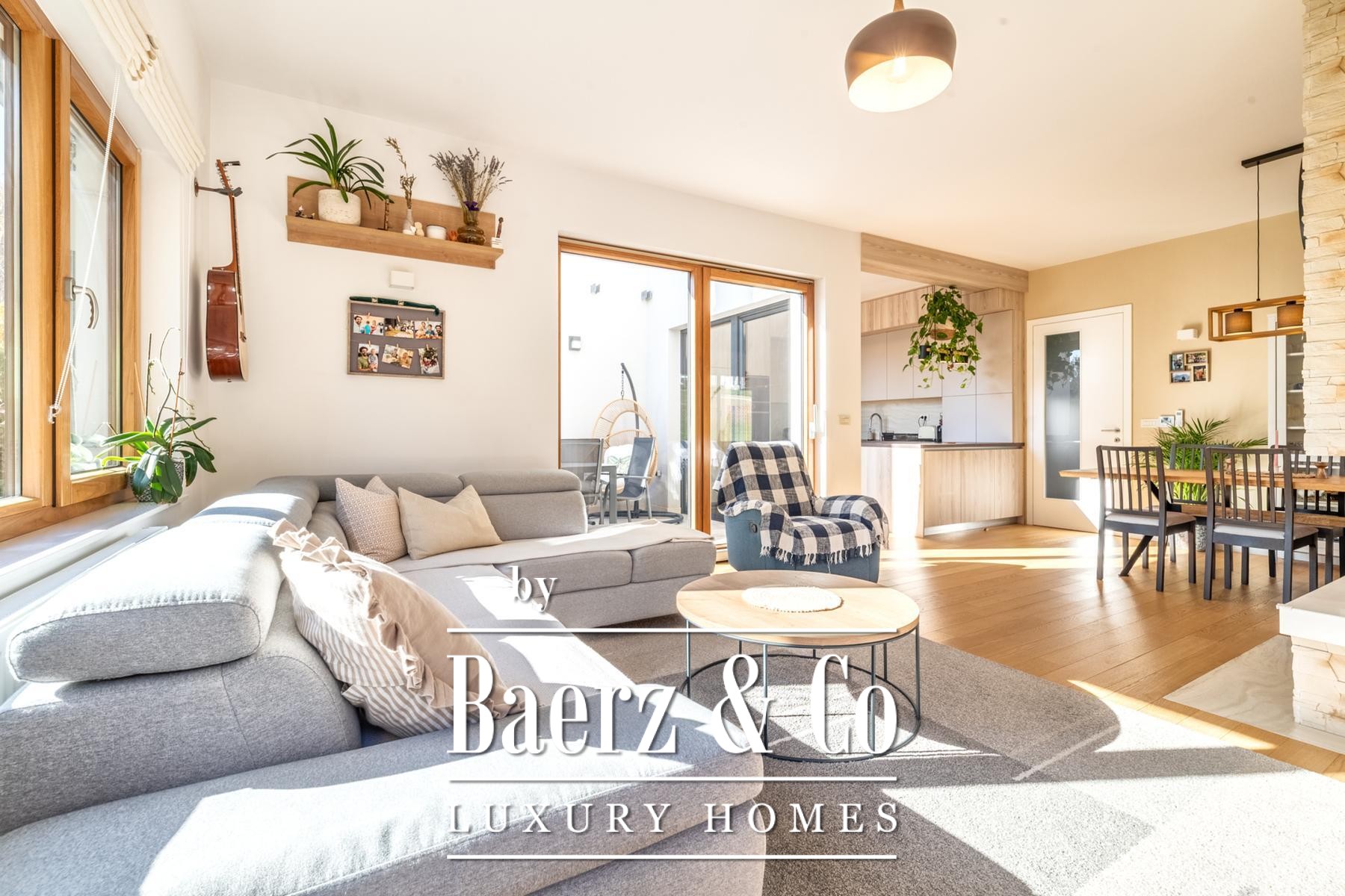 Le rez-de-chaussée s’ouvre sur un hall d’entrée qui conduit sans transition à un séjour baigné de lumière naturelle, prolongeant élégamment sur une terrasse ouverte de 14 m² et un jardin privé de 58 m². La cuisine et la salle à manger forment un centre convivial, tandis que l’étage accueille trois chambres—dont une facilement aménageable en bureau—ainsi que des salles de bains soignées. Le sous-sol réserve une pièce de rangement discrète, une salle de bains supplémentaire et deux chambres additionnelles, plus adaptées à la préservation de l’intimité des invités ou de la famille.