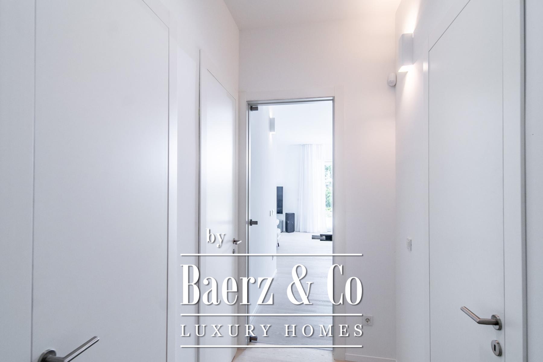 La villa, de plain-pied au style contemporain avec toit plat et 400 m² d’espaces intérieurs, est conçue pour réduire l’impact du vent et des précipitations. Les murs extérieurs associent 38 cm de maçonnerie en bloc d’argile, 12 cm d’isolation thermique et une finition Baumit, assurant une performance énergétique optimale. Dotée de deux chambres, deux salles de bains et d’une hauteur sous plafond de 303 cm, cette résidence offre des volumes généreux et une lumière naturelle omniprésente. De larges parois vitrées, protégées l’été par de profonds débords de toit, permettent en hiver aux rayons du soleil d’apporter une douce chaleur aux espaces centraux.