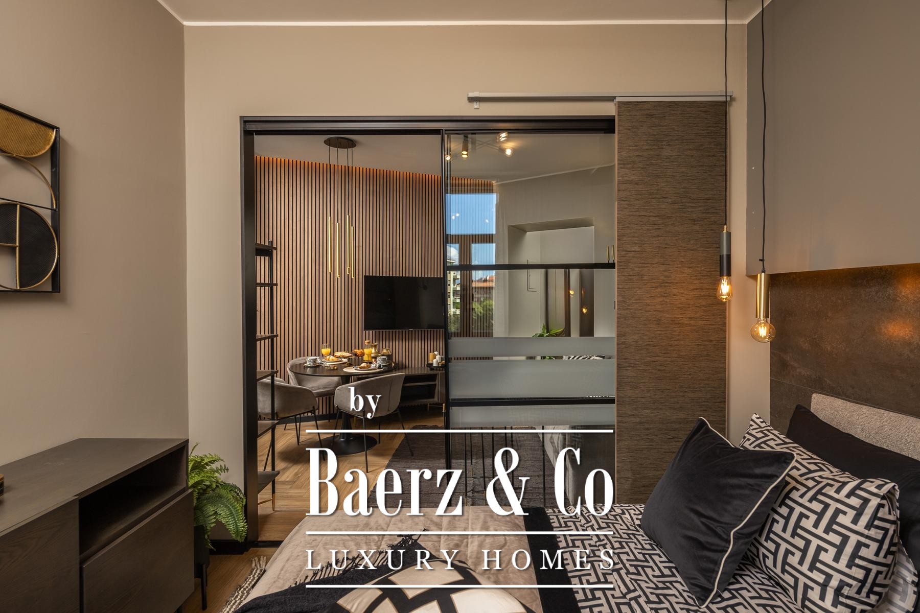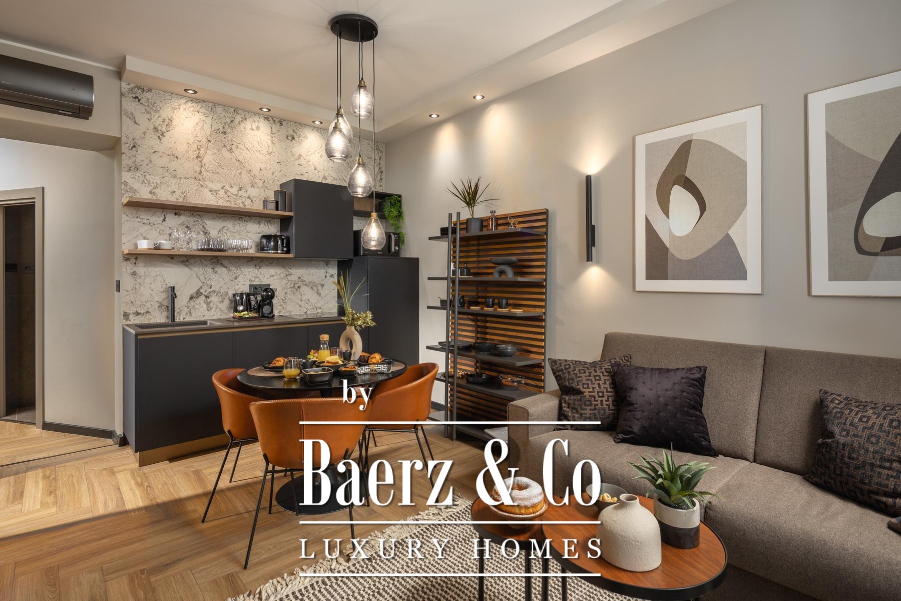 In an attractive location in Rijeka’s Potok district, a four-bedroom apartment with a total surface area of 141 m² is offered for sale, superbly renovated into four separate, fully furnished apartments, each ranging from 32 to 35 m². Two of the apartments feature balconies with a pleasant, open view of the new City Library and the park.The property is sold as a completed and well-established investment project. The apartments are rented for most of the year and represent a secure and stable source of income, with proof of generated revenue available for inspection.The interior is designed in a luxury hotel style, with carefully selected warm beige and anthracite tones, gold accents, and ambient lighting. The highest-quality Italian furniture has been used, along with large-format porcelain tiles.Custom-made kitchens by Veneta Cucine in a matte black finish are installed, featuring high-quality worktops and decorative “stone/marble” backsplashes. The living and sleeping areas are connected by glass sliding partitions with frosted stripes, while wooden wall slats with indirect LED lighting further emphasize the contemporary design.The interior is complemented by designer brass pendant lights, velvet dining chairs, and trendy geometric textiles. Bathrooms are fitted with walk-in showers, glass partitions, and black fixtures, as well as decorative panels with a natural stone effect.Each apartment consists of a living room with kitchen and dining area, one bedroom, and a designer bathroom. Apartment sizes range from 32 to 35 m², with two apartments offering a balcony.The Potok neighborhood offers exceptional convenience-within walking distance of the city center and all essential amenities. Views of the new City Library and excellent transport connections make this location particularly attractive for short-term and mid-term rentals.The property is sold exclusively as a single unit, i.e., as a package of four apartments. An established rental operation throughout most of the year ensures stable cash flow and a faster return on investment. Furniture and all equipment are included in the price.All documentation is in order.For additional information and to arrange a viewing, we remain at your disposal.