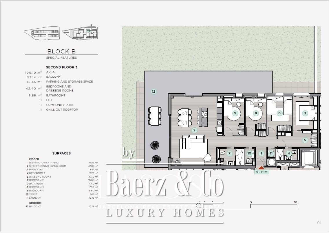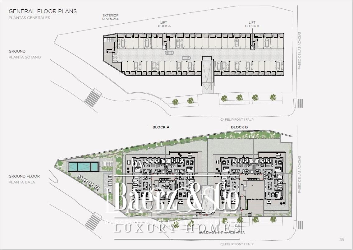 Les espaces intérieurs sont valorisés par des matériaux sobres et des rangements sur mesure, tandis que l’expérience extérieure atteint une nouvelle dimension : une terrasse pour chaque logement, des espaces paysagers offrant intimité et de magnifiques vues sur Sitges et la Méditerranée. Les parties communes comprennent un jardin méditerranéen planté d’espèces locales, une piscine, des espaces chill-out sur le toit avec lits balinais, ainsi que des allées paisibles pour savourer des moments conviviaux ou de tranquillité. Un parking souterrain sécurisé et des zones de stockage dédiées assurent sérénité et praticité.