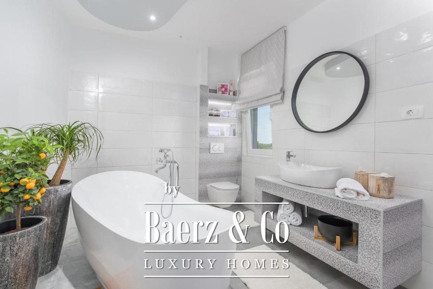 Le rez-de-chaussée offre des transitions fluides entre l’intérieur spacieux et l’extérieur, avec une piscine de 30 m², un jacuzzi, deux terrasses couvertes et un salon ouvert sur le jardin. La cuisine et la salle à manger disposent de leur propre terrasse, invitant à des moments conviviaux au soleil comme à l’ombre. Le sous-sol accueille une salle de sport et un sauna, véritables havres de détente et de bien-être. Au premier étage, trois chambres et trois salles de bains profitent d’un accès à la terrasse, offrant des vues apaisantes sur la nature environnante et la mer au loin. Les combles abritent deux chambres et deux salles de bains supplémentaires, préservant l’intimité des invités ou des membres de la famille. Une mezzanine propose une suite avec salle de bains pour un confort accru.