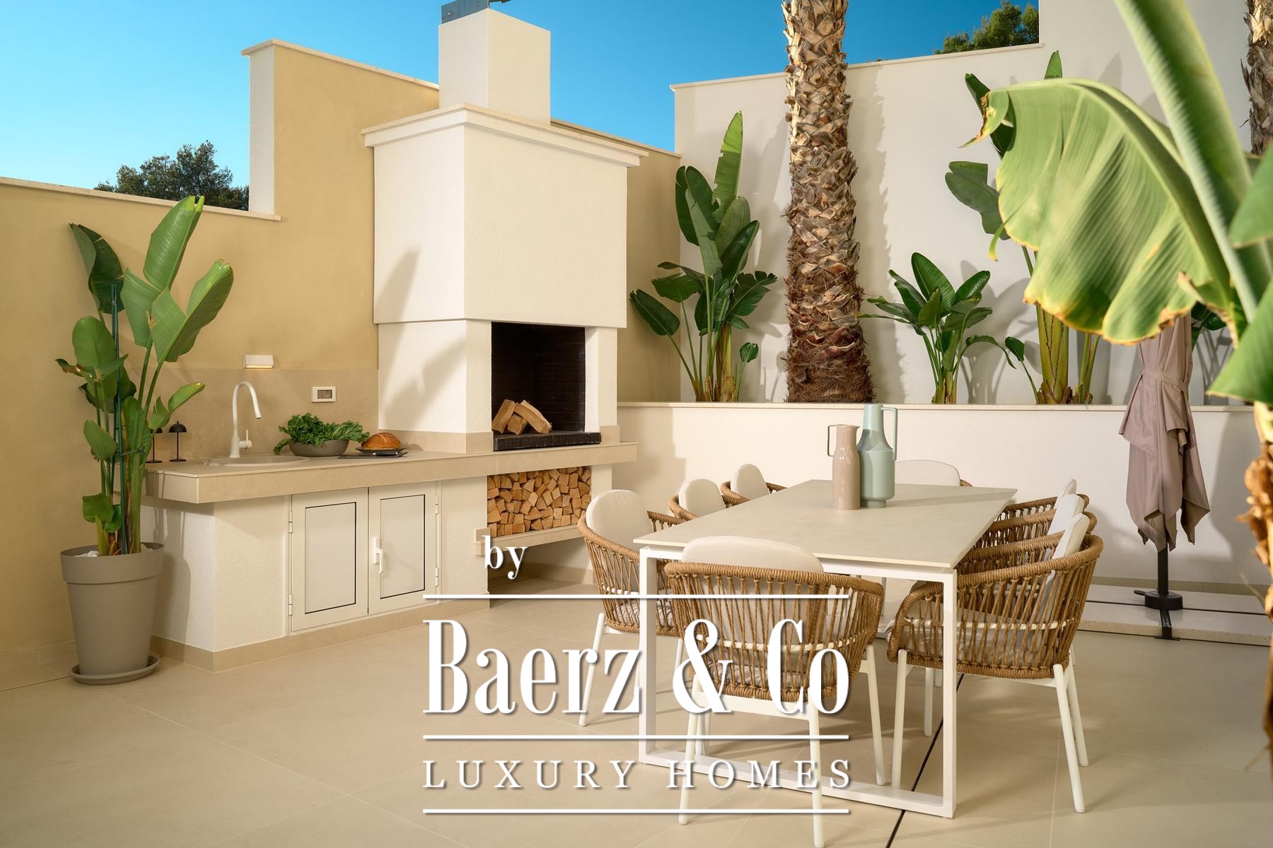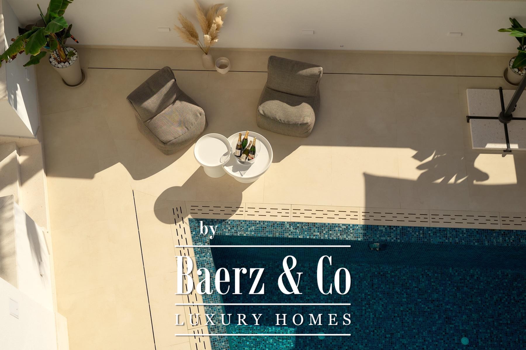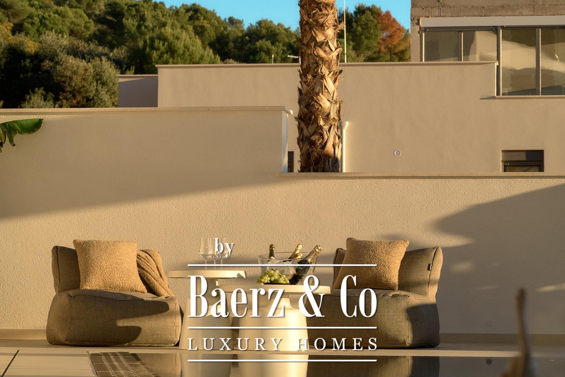 Les standards de construction sont irréprochables : climatisation encastrée, chauffage au sol par pompe à chaleur, récupération d’air, isolation thermique, menuiseries aluminium, garde-corps en verre sur les terrasses, installation photovoltaïque, arrosage automatique du jardin et vidéosurveillance témoignent d’une technicité d’excellence. Deux places de stationnement extérieures et un aménagement paysager d’inspiration méditerranéenne parachèvent l’ensemble.