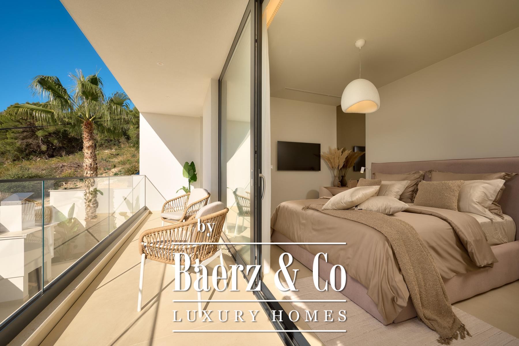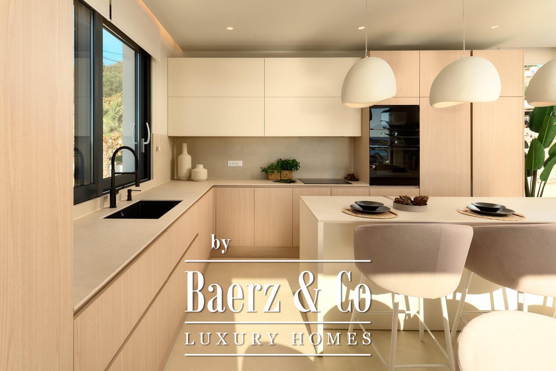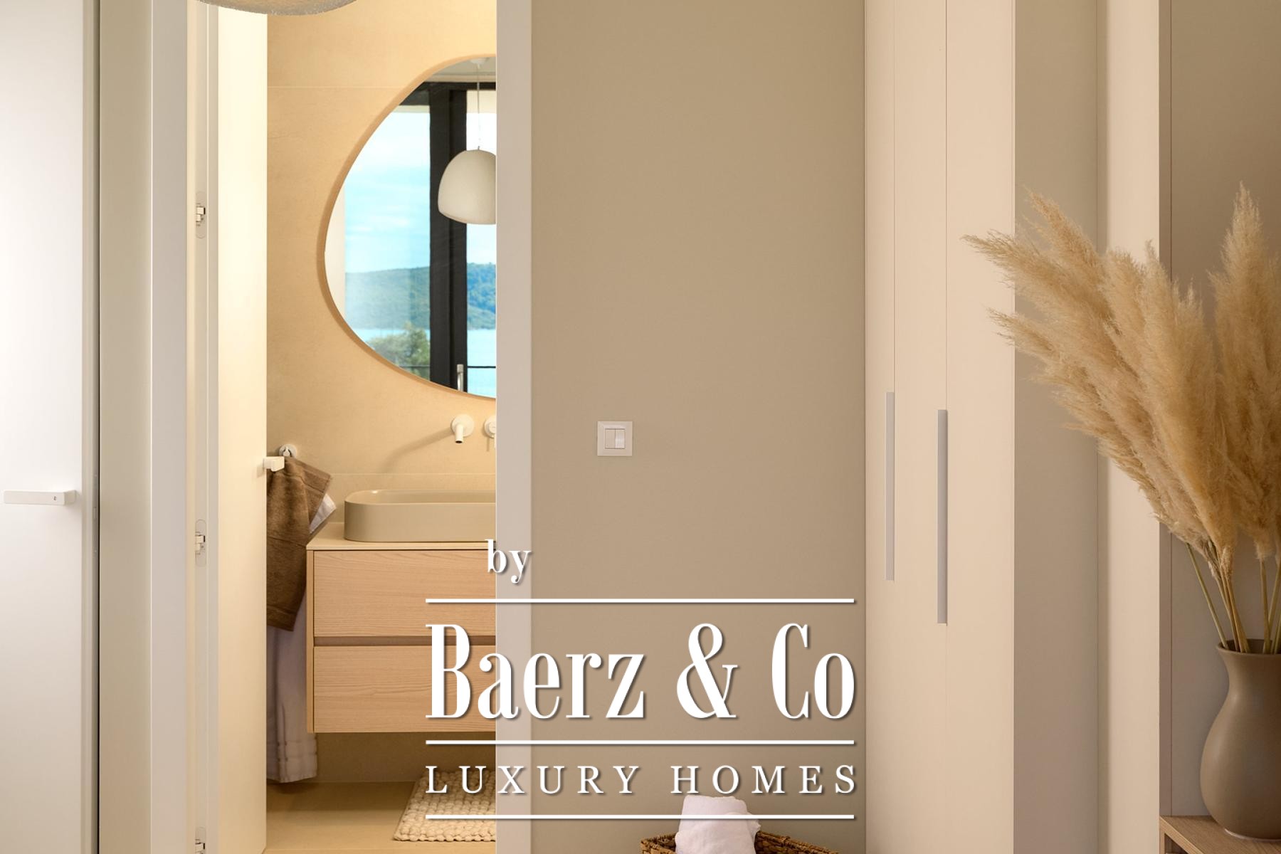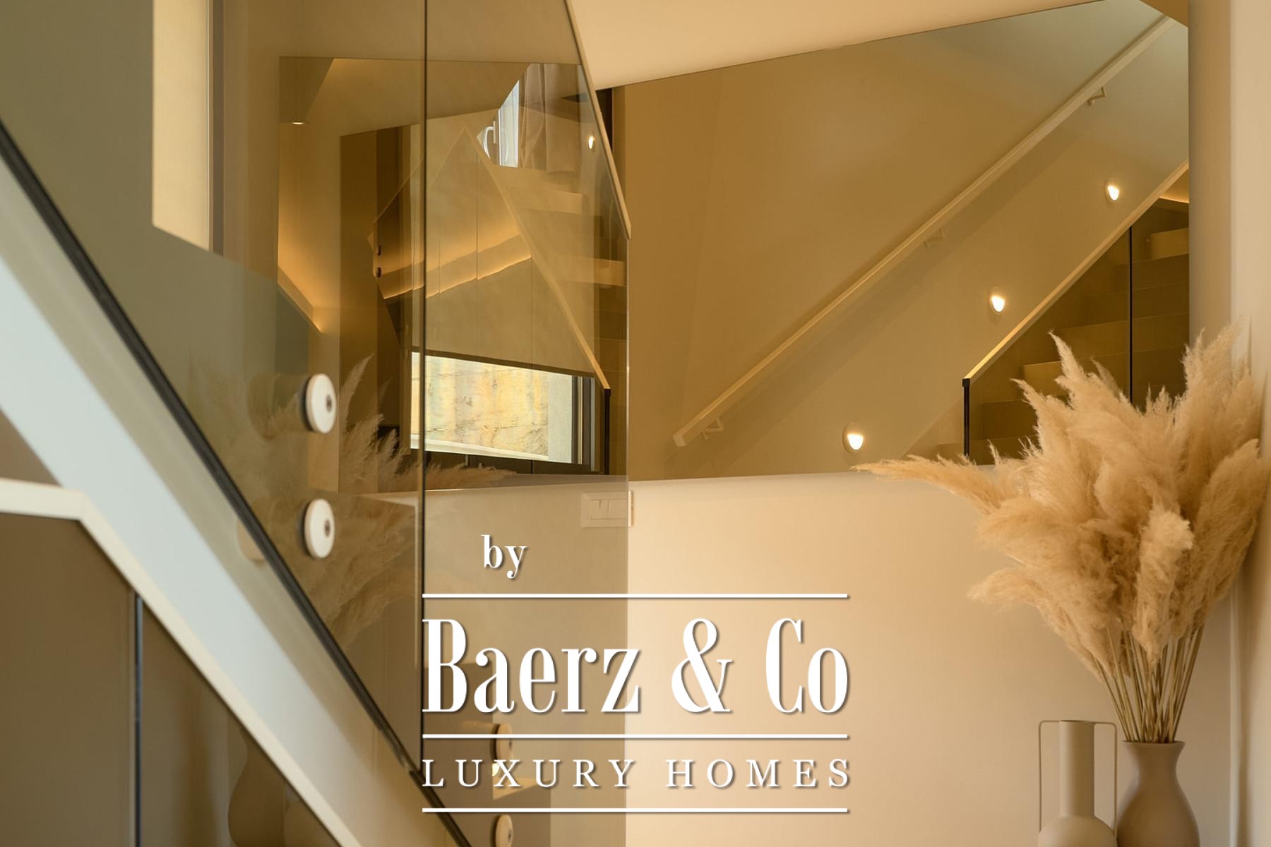 Trois chambres avec salles de bains privatives au rez-de-chaussée profitent d’un accès direct à une loggia de 18,8 m². Le garage privé de 31 m² est équipé d’une borne de recharge pour véhicule électrique. Au premier étage, un espace de vie volumineux de 52 m² s’accompagne d’une quatrième chambre, d’une salle de bains supplémentaire, et de larges terrasses, toutes orientées vers l’horizon scintillant.