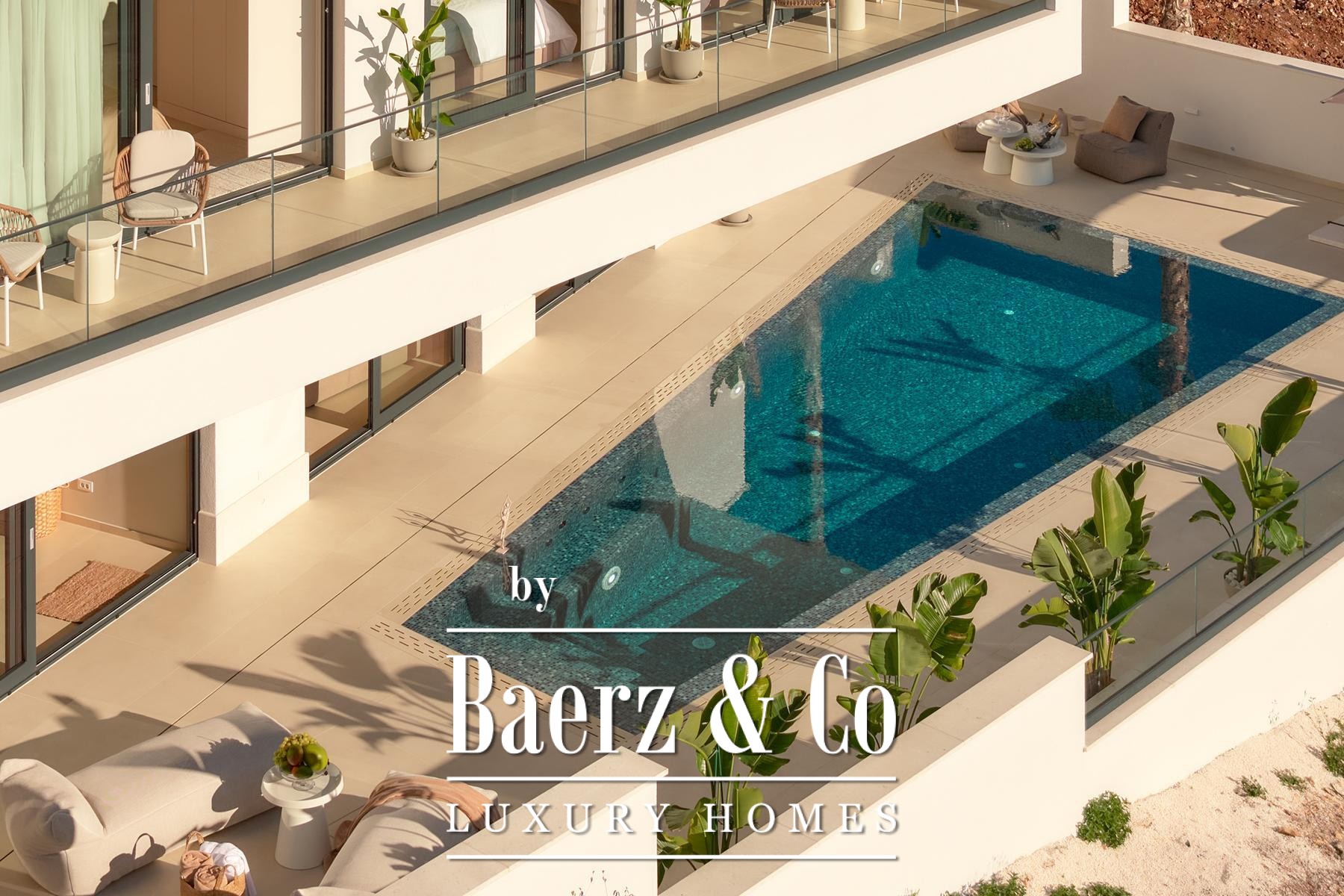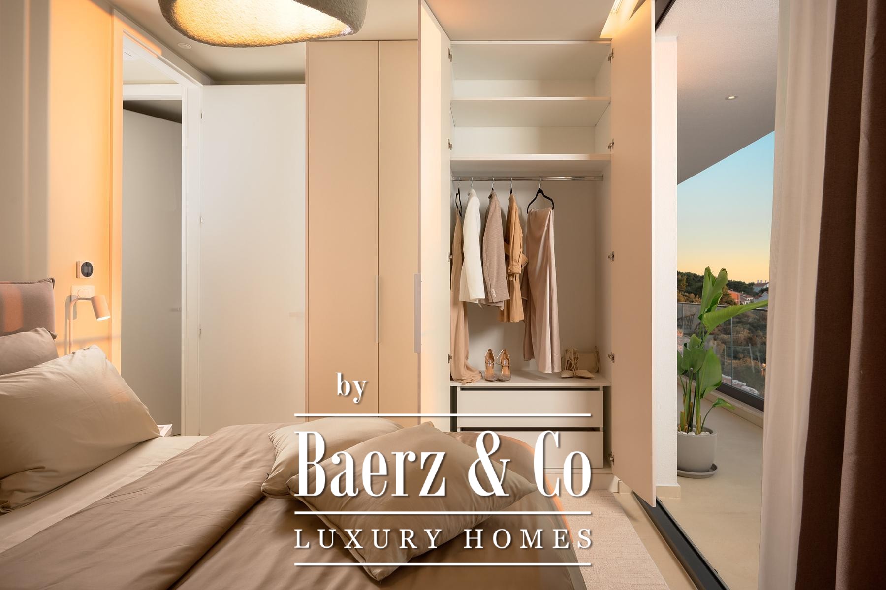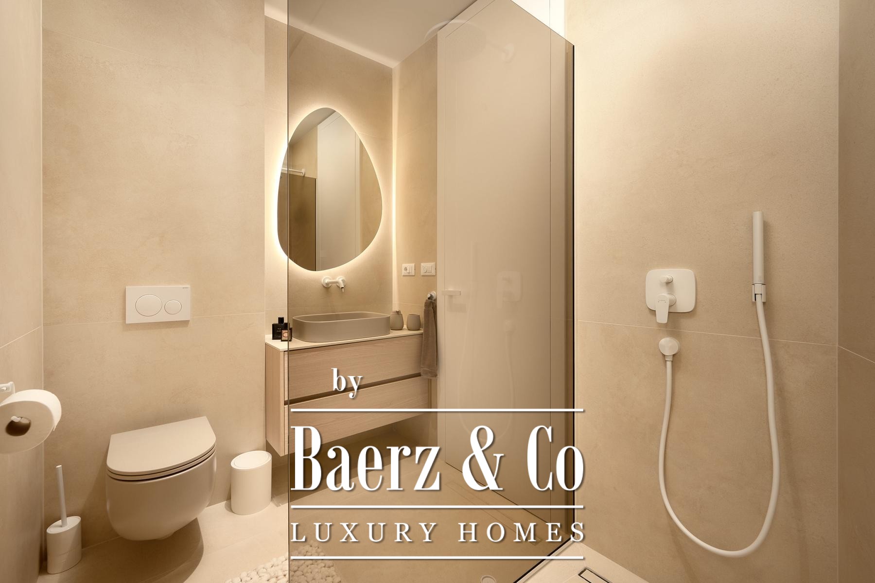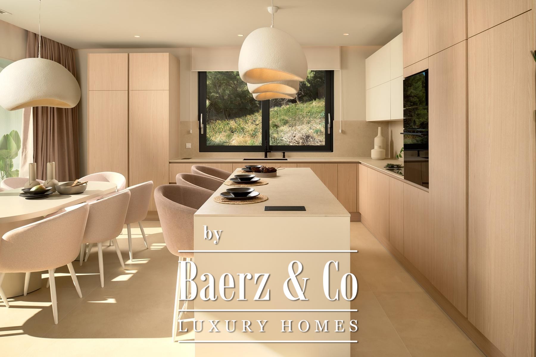 Trois chambres avec salles de bains privatives au rez-de-chaussée profitent d’un accès direct à une loggia de 18,8 m². Le garage privé de 31 m² est équipé d’une borne de recharge pour véhicule électrique. Au premier étage, un espace de vie volumineux de 52 m² s’accompagne d’une quatrième chambre, d’une salle de bains supplémentaire, et de larges terrasses, toutes orientées vers l’horizon scintillant.
