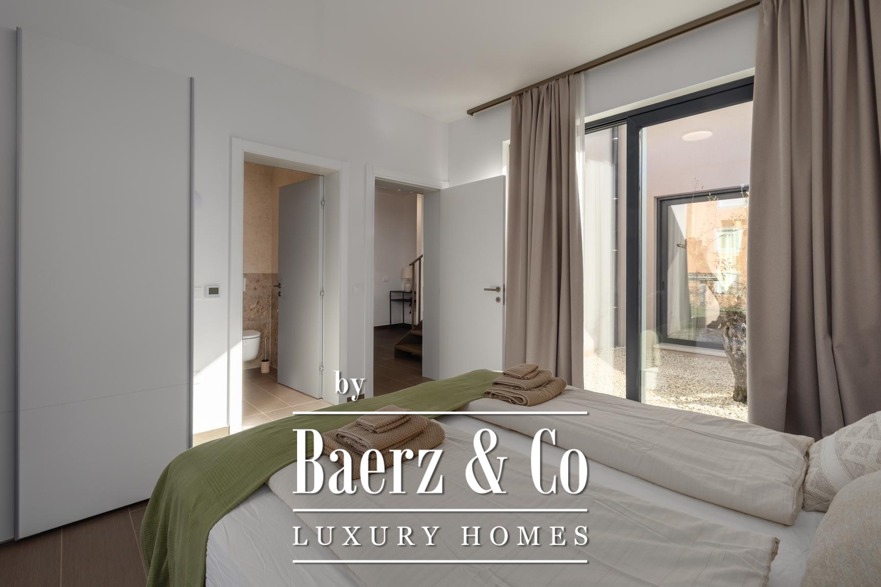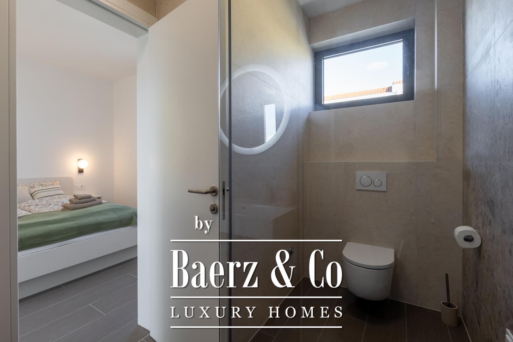 À l’étage, les quatre chambres disposent chacune d’une salle de bains privative, assurant confort et intimité à chaque membre de la famille ou invité. Le chauffage au sol par pompe à chaleur et la climatisation intégrale dans chaque pièce garantissent une température idéale en toute saison. Ce bien représente un exemple irréprochable de villa moderne à vendre à Umag, alliant authenticité et fonctionnalité pour une clientèle exigeante.