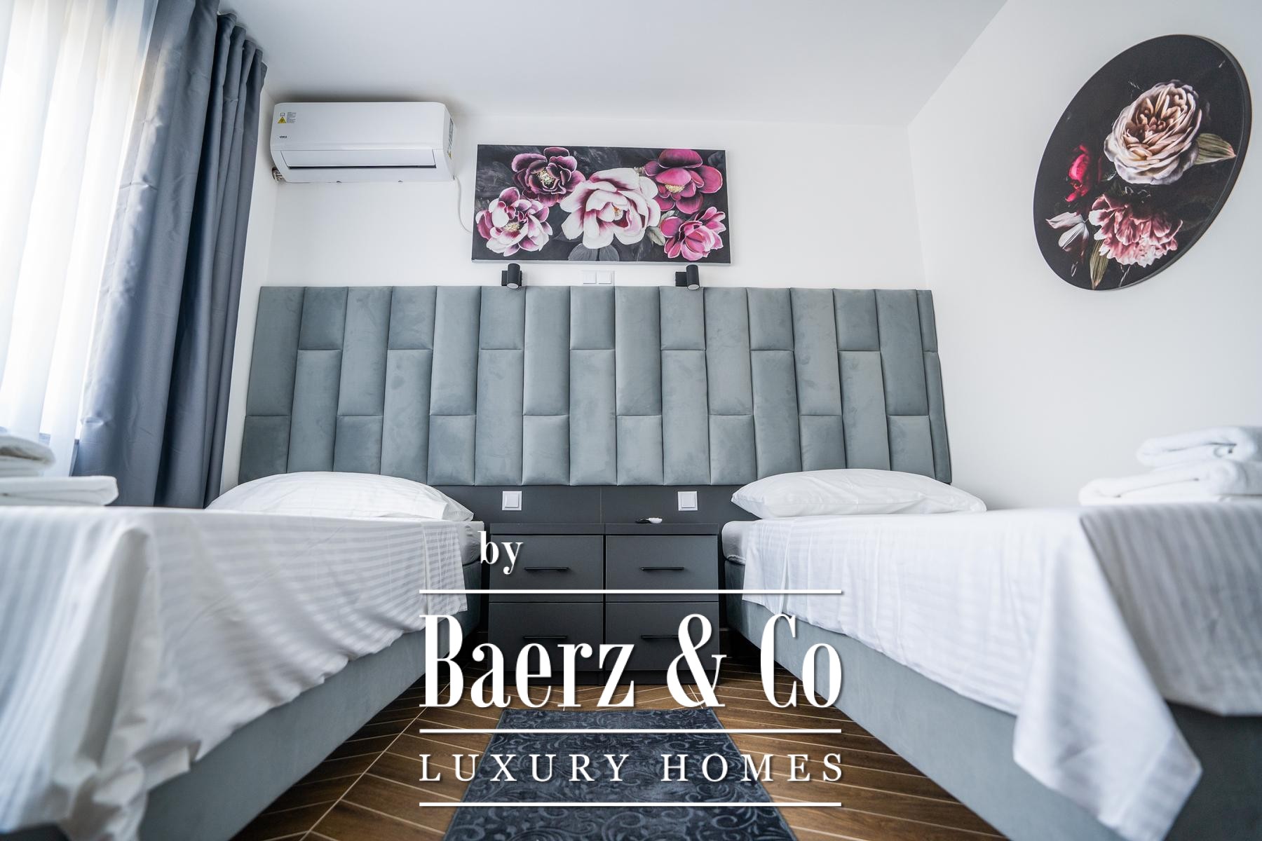 Chaque villa s’articule sur quatre niveaux et propose au total 20 chambres et 22 salles de bains, pensées avec une grande générosité d’espace pour accueillir des familles nombreuses ou de nombreux invités. Les intérieurs expriment une élégance sobre, valorisée par des prestations bien-être telles qu’une piscine extérieure, un sauna moderne et un jacuzzi.