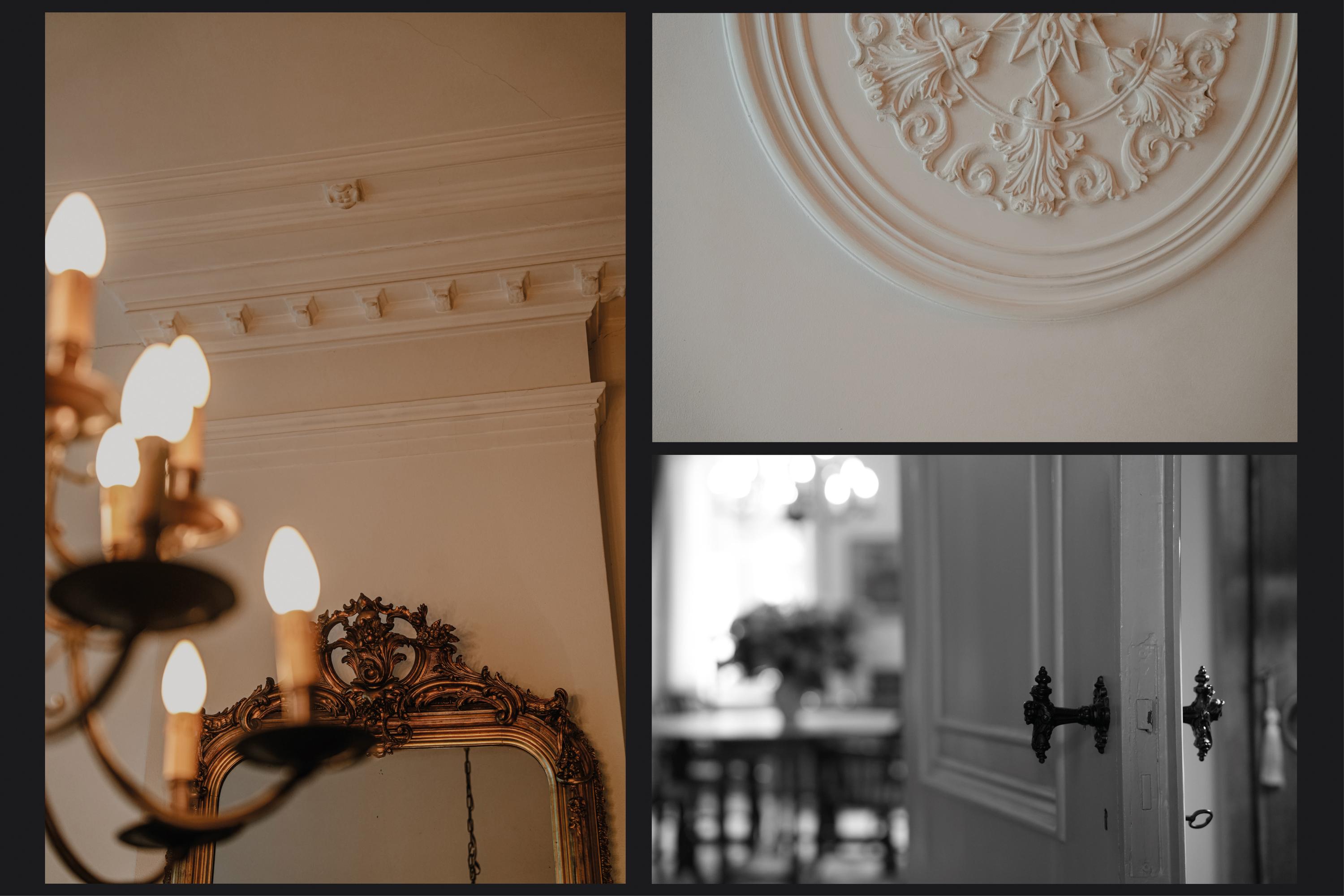 Une double cave médiévale voûtée s'étend sur toute la profondeur de la bâtisse, ancrant ainsi son histoire. Le hall d'entrée, dont le sol en marbre se prolonge dans un couloir pavé de pierre naturelle, donne le ton d’un art de vivre raffiné. Hauts plafonds ornés de stuc, vitraux, cheminées en pierre naturelle et parquet en point de Hongrie évoquent une rare authenticité. Le rez-de-chaussée s’ouvre sur un vaste salon de 70 m², avec portes-fenêtres sur un jardin urbain intimiste, ainsi qu'une cuisine donnant sur la terrasse et les haies basses. Les détails d’époque—banquettes de fenêtre, volets intérieurs, pompe du XVIIIe siècle—apportent un cachet tactile unique.