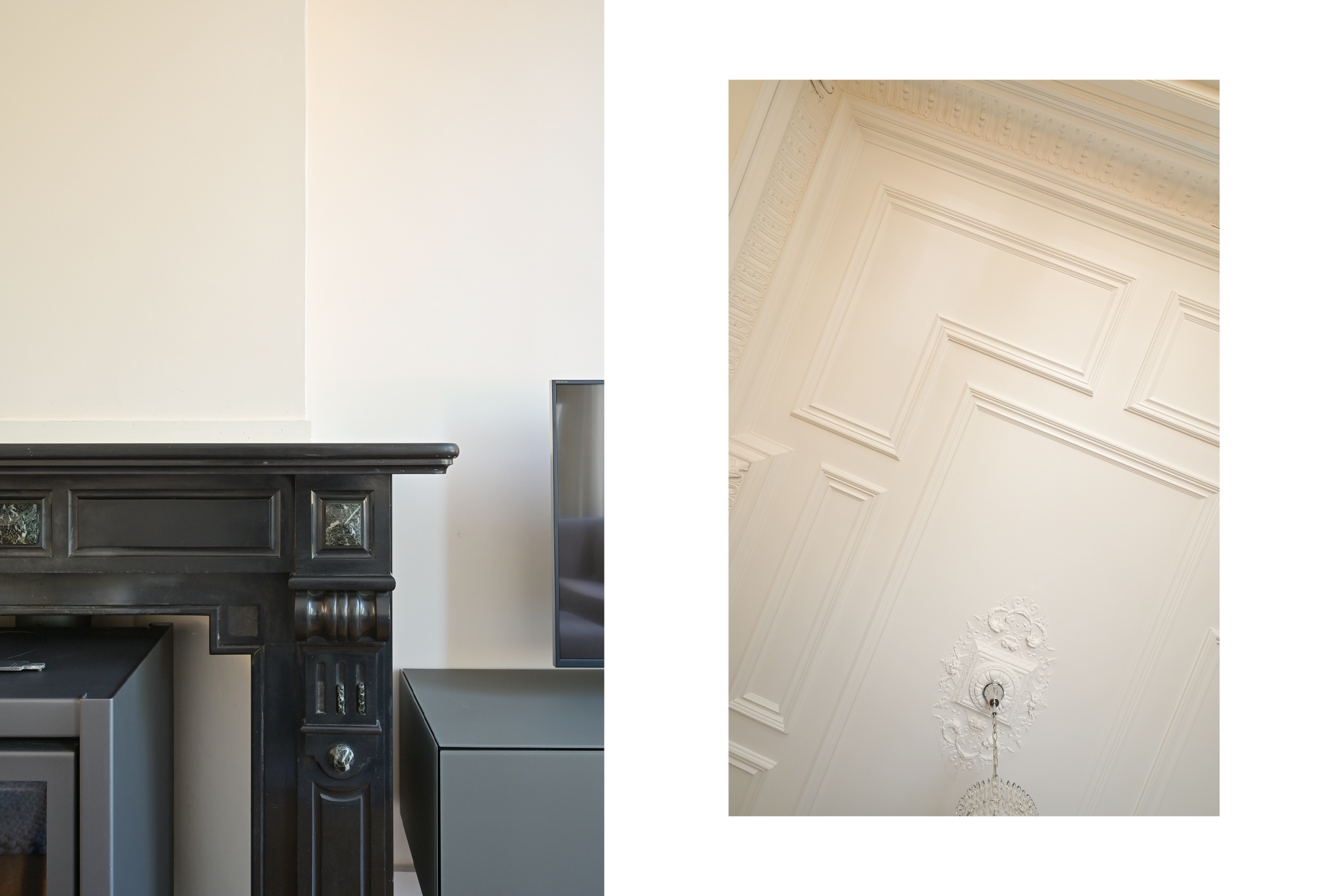 De woning heeft vrij zicht aan de voorzijde, en naast comfort ook originele details zoals hoge plafonds met ornamenten, suite separatie met schuifdeuren, paneeldeuren en marmeren schouwen.