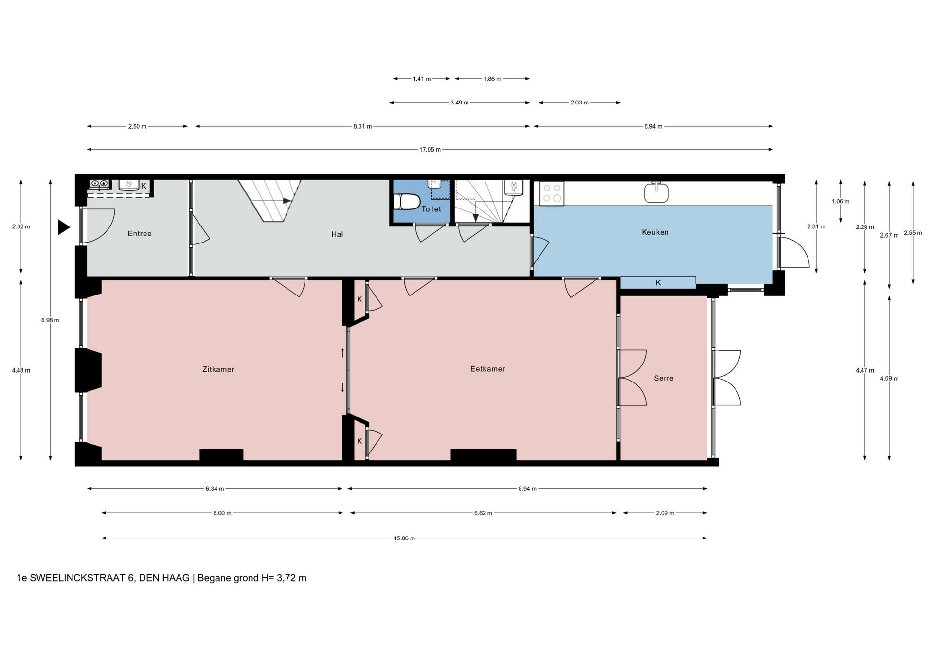 Begane grond (woonoppervlakte ca. 111 m2, plafondhoogte ca. 3,72 meter)