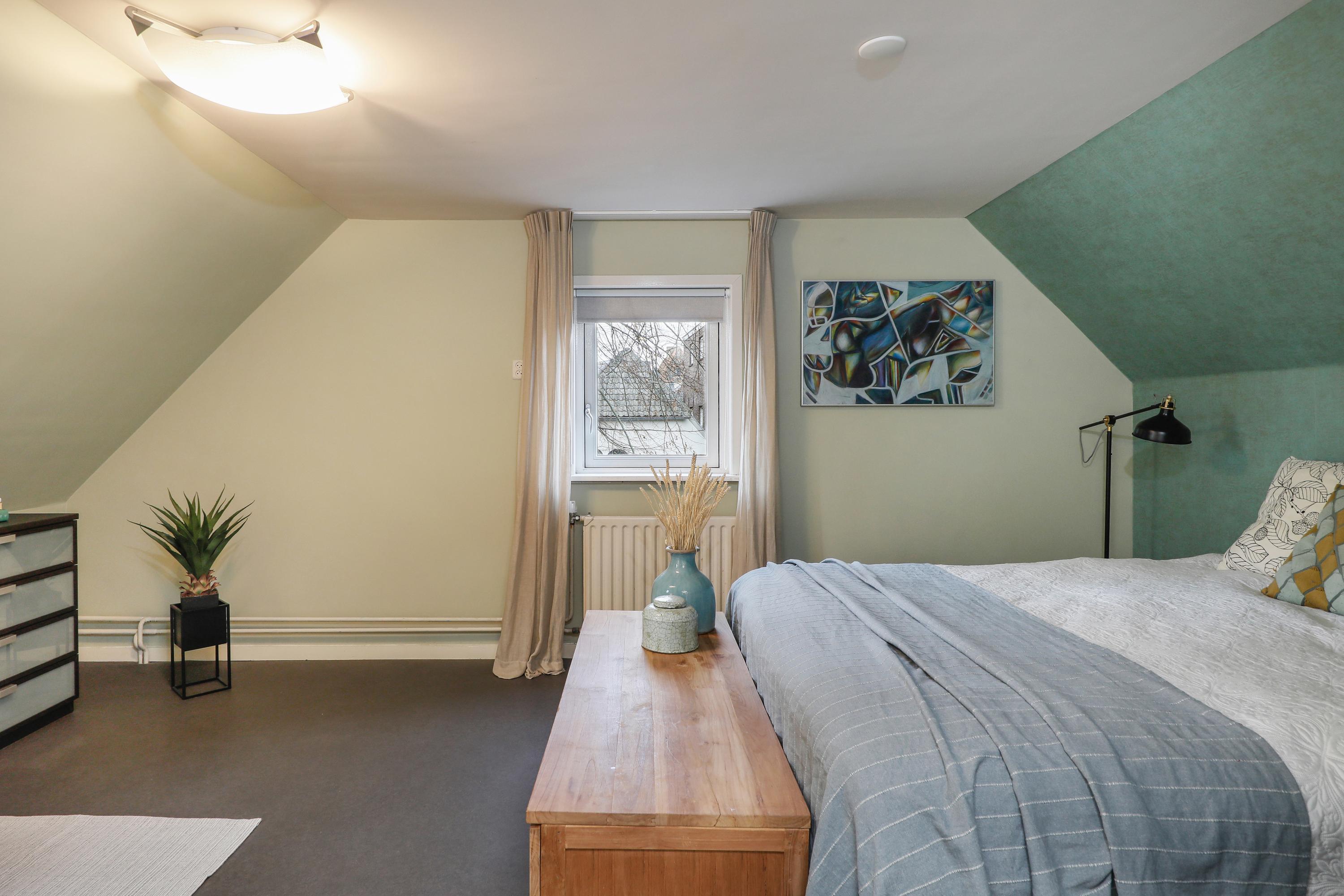 Twee slaapkamers, waarvan aan de hoofdslaapkamer een inloopkast ligt. De badkamer is in 2011 vernieuwd en voorzien van een ligbad, royale inloopdouche en wastafel – uiteraard met uitzicht op de Sint-Jan.