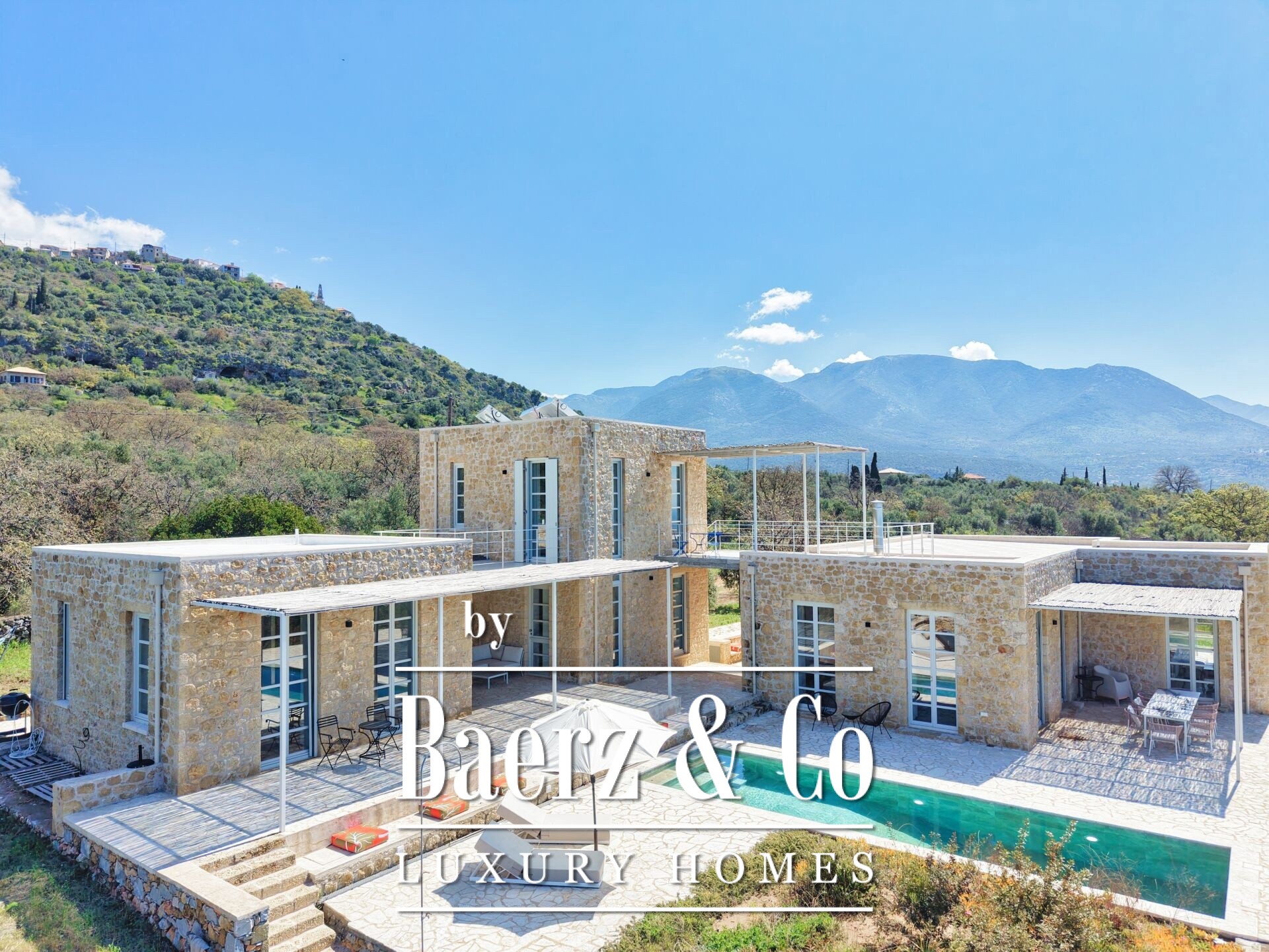 De stenen villa Agios Nikolaos bevindt zich in het gewilde landschap van de Messinias Mani en biedt verfijnd wonen met panoramisch, onbelemmerd zeezicht. Deze nieuw gebouwde villa, gelegen op een perceel van 2.029 m², beschikt over 260 m² woonoppervlakte, verdeeld over drie zelfstandige gebouwen. Hierdoor wordt maximale privacy en flexibiliteit geboden.
