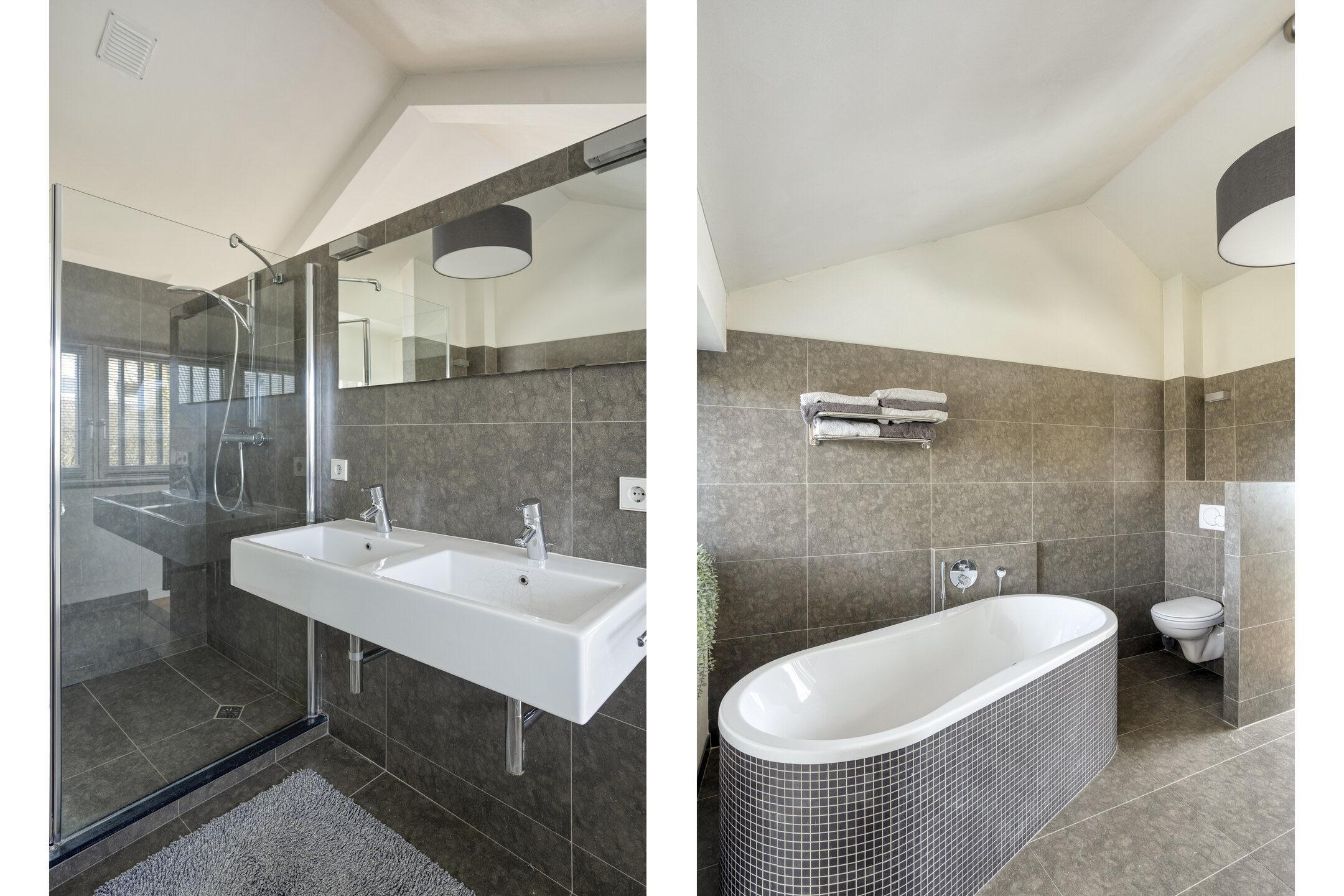 Via de trap komt u op de 1e verdieping, die geheel is afgewerkt met een houten vloer en gestucte wanden en plafonds. Hier bevind zich aan de voorzijde een ruime slaapkamer met een inbouwkast. Een compacte tweede badkamer met inloopdouche, wastafel en aansluiting voor wasmachine en droger is via de overloop te bereiken, evenals de CV-ruimte met CV-ketel uit 2024! Aan de achterzijde vind u de indrukwekkende master bedroom. Licht, ruim en voorzien van een ruime inloopkast en een luxe open badkamer met dubbele wastafel, inloopdouche en een heerlijk ligbad. Tevens bied deze slaapkamer uitzicht over de tuin en heeft het de beschikking over bergruimte in het knieschot.