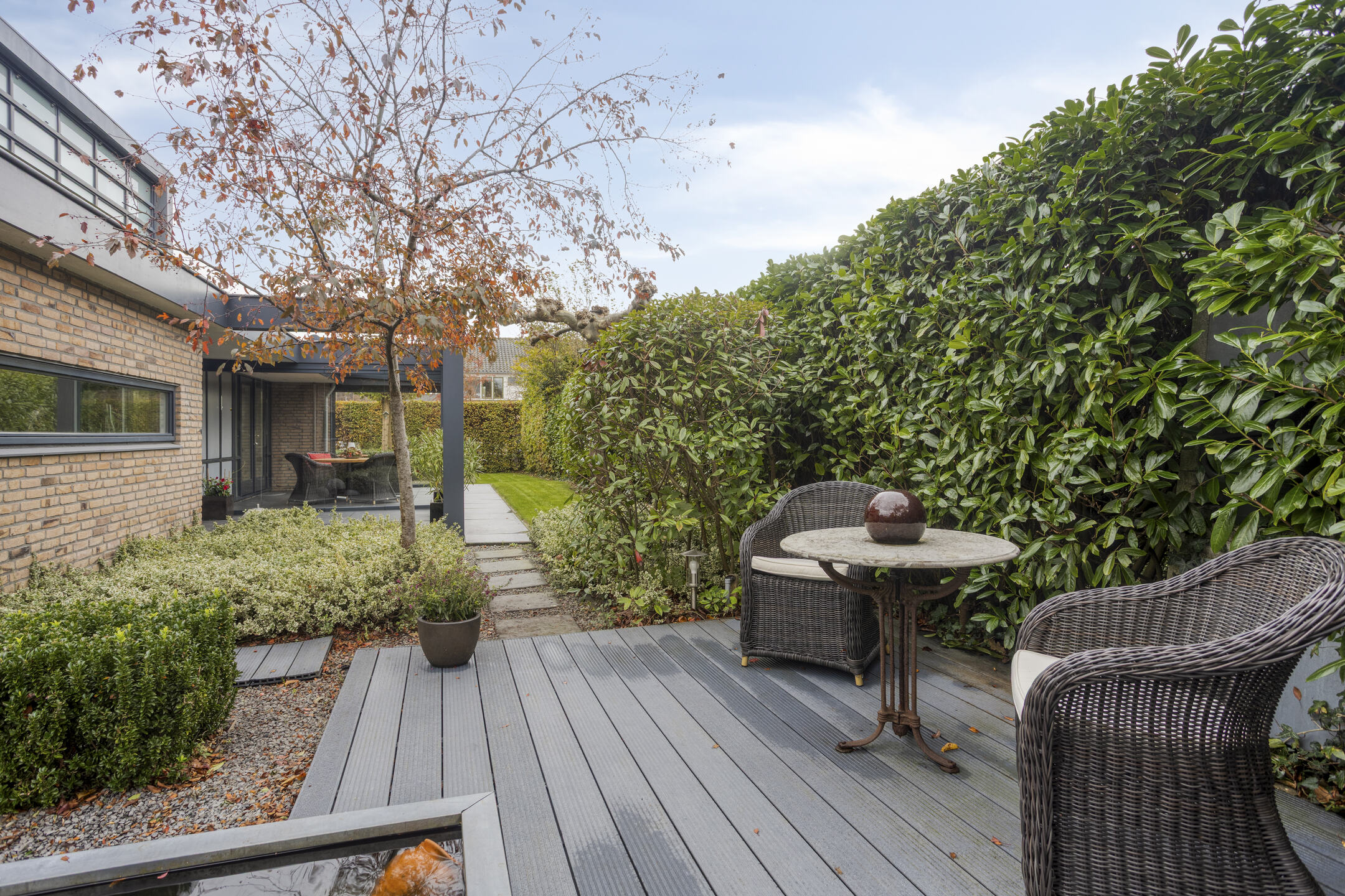De tuin is een waar kunstwerk, ontworpen door een tuinarchitect en perfect onderhouden. Aan de Zuidzijde bevindt zich een heerlijke serre die helemaal open kan. Hier kunt u het hele jaar heerlijk vertoeven! Daarbij beschikt de serre over een elektrisch zonnescherm. Verderop in de tuin vind u een spiegelvijver met doorloop naar de sfeervolle veranda met overkapping en led-buitenverlichting. Nog een stukje verder komt u bij het terras aan het water, waar u uitkijkt op het in alle seizoenen prachtige natuurpark Egmonderhout. Verder beschikt de tuin over een beregeningssysteem met pomp, tuinverlichting, meerdere groene perkjes en een ruime oprit met garage.