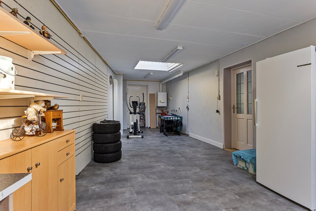 Aangrenzend aan de woning bevindt zich een royale multifunctionele ruimte met een eigen ingang. Dankzij de bestemming wonen en bedrijf biedt deze ruimte volop mogelijkheden en is deze bijvoorbeeld zeer geschikt voor mantelzorg, een winkel aan huis of het uitoefenen van een bedrijf aan huis. Met enkele aanpassingen is hier eenvoudig een zelfstandige mantelzorgunit te realiseren, bijvoorbeeld door het creëren van een eigen keuken, slaapkamer en badkamer. De ruimtes kunnen ook uitstekend ingevuld worden voor extra opslag. Dankzij de aanwezige lichtkoepels wordt de ruimte bovendien prettig voorzien van natuurlijk daglicht, wat zorgt voor een aangename en lichte omgeving. Tevens is hier ook een voorziening van een witgoedaansluiting, wat het geheel extra praktisch en veelzijdig maakt.