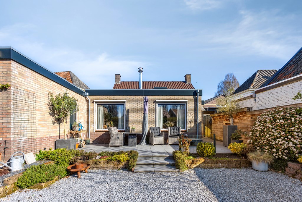 Een absoluut hoogtepunt van de woning is de riante, zonnige achtertuin. De tuin is deels bestraat en wordt aangevuld met veel groen, wat zorgt voor een levendige en sfeervolle buitenruimte. Het is de ideale plek om volop van de zonuren te genieten. Dankzij de royale opzet leent de tuin zich uitstekend voor het creëren van meerdere terrassen, zodat u op elk moment van de dag een fijne plek in de zon of schaduw kunt vinden. Vanuit de tuin heeft u bovendien direct toegang tot de berging.