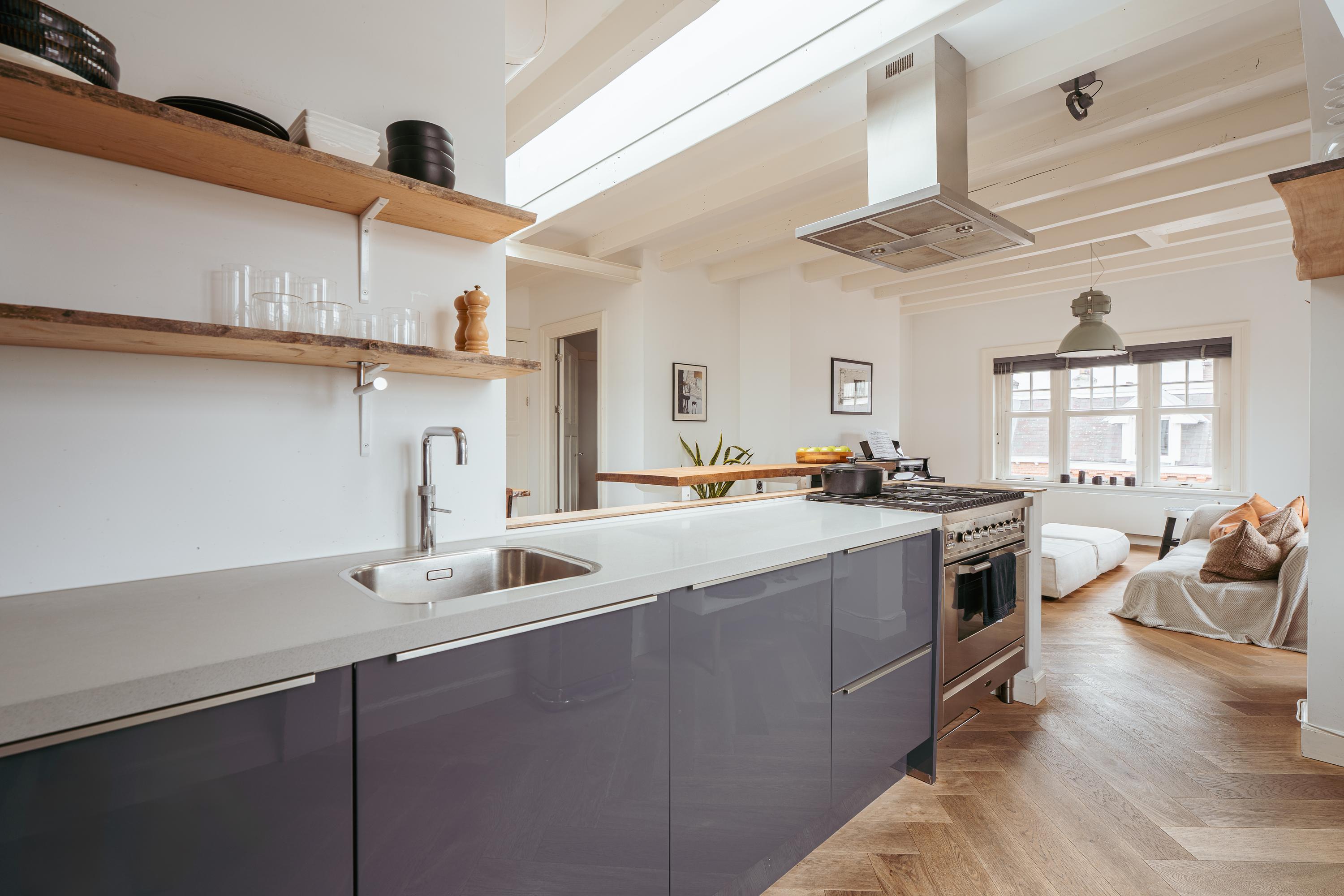 De bereikbaarheid is uitstekend: tramlijnen 7 en 17 stoppen om de hoek en brengen u rechtstreeks naar onder meer het Centraal Station. Met de auto rijdt u binnen enkele minuten de Ring A10 op. Een groot pluspunt is de ondergrondse parkeergarage aan de overzijde van De Hallen, waar u met een parkeervergunning kunt parkeren. Dit is een van de weinige garages in de stad met deze mogelijkheid. Een luxe voorziening waarbij uw auto binnen staat, er vrijwel altijd plek is in de buurt en u niets extra’s betaalt bovenop de vergunning.