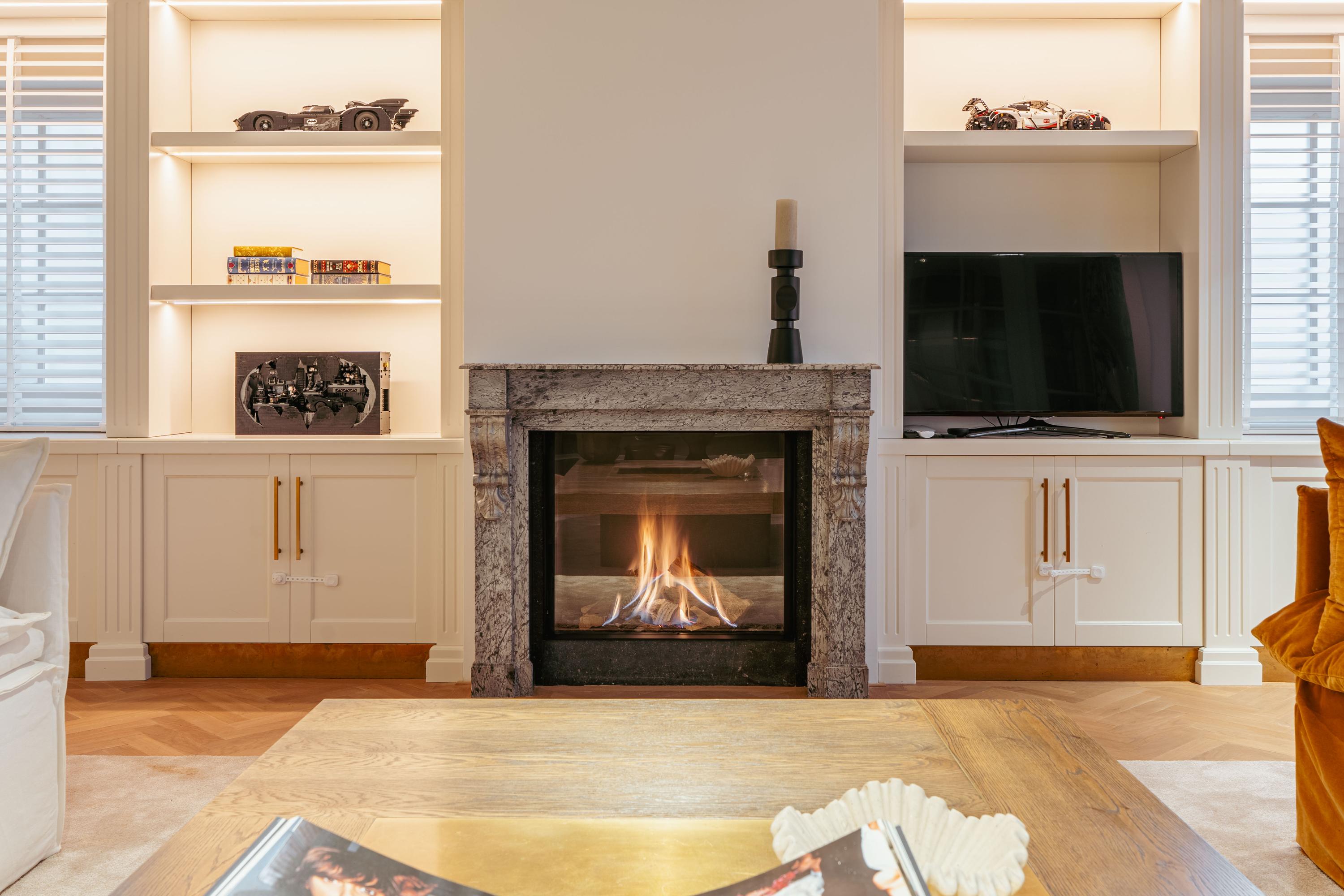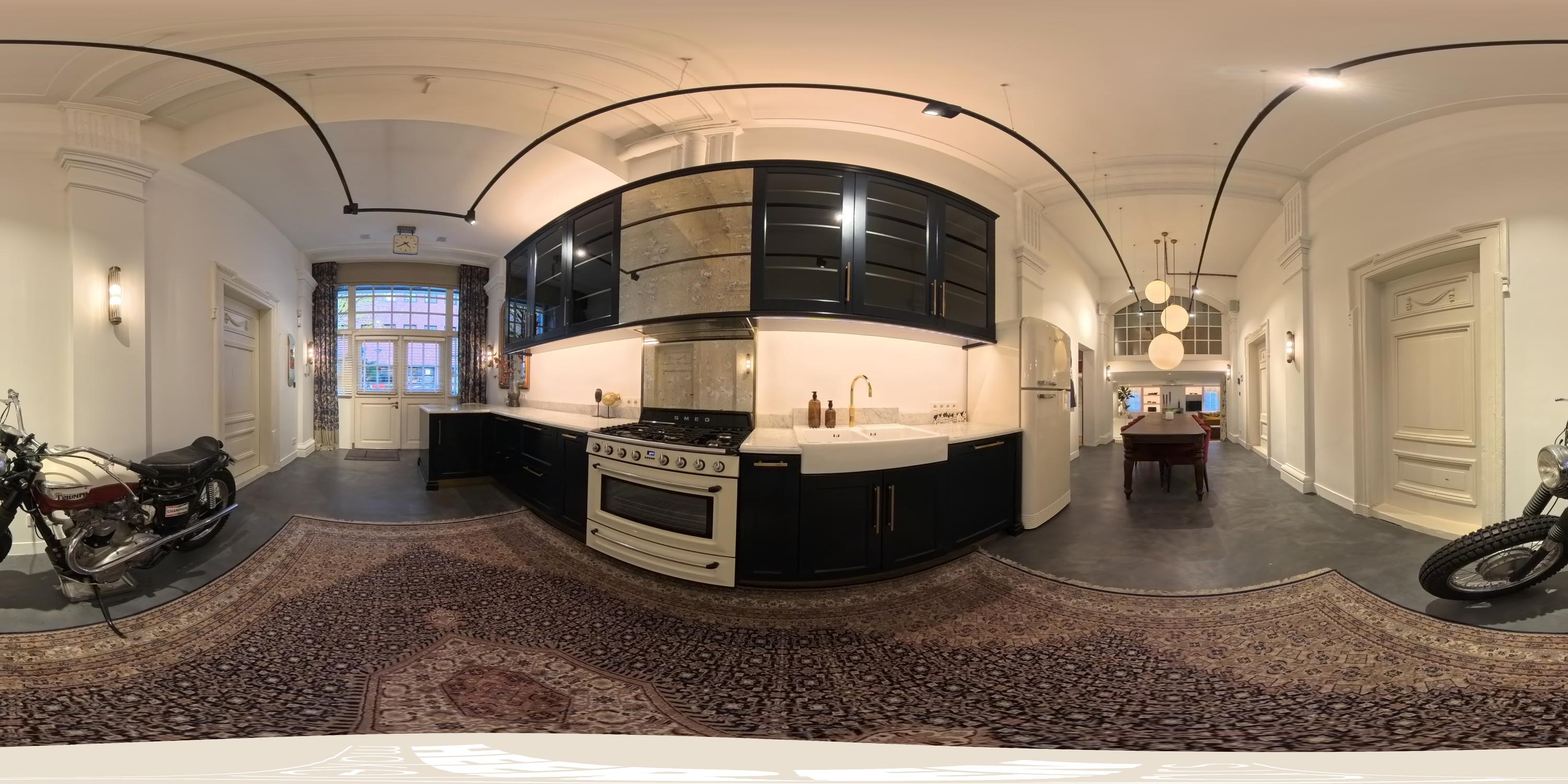 Via een statige entree komt u binnen in de ruime en zeer sfeervolle open woonkeuken. De open woonkeuken is voorzien van diverse inbouwapparatuur, zoals vaatwasser, gasfornuis met oven en een Quooker. De verschillende hoogtes in elke ruimte geven deze woning een speels effect. Tussen de open woonkeuken en de zitkamer bevindt zich de werk/- studeerkamer en het ruime toilet. De woonkamer is voorzien van een mooie visgraat parketvloer, een op maat gemaakte inbouwkast en een beamer met scherm. Om de gezellige woonkamer compleet te maken, is er een grote gashaard geplaatst.