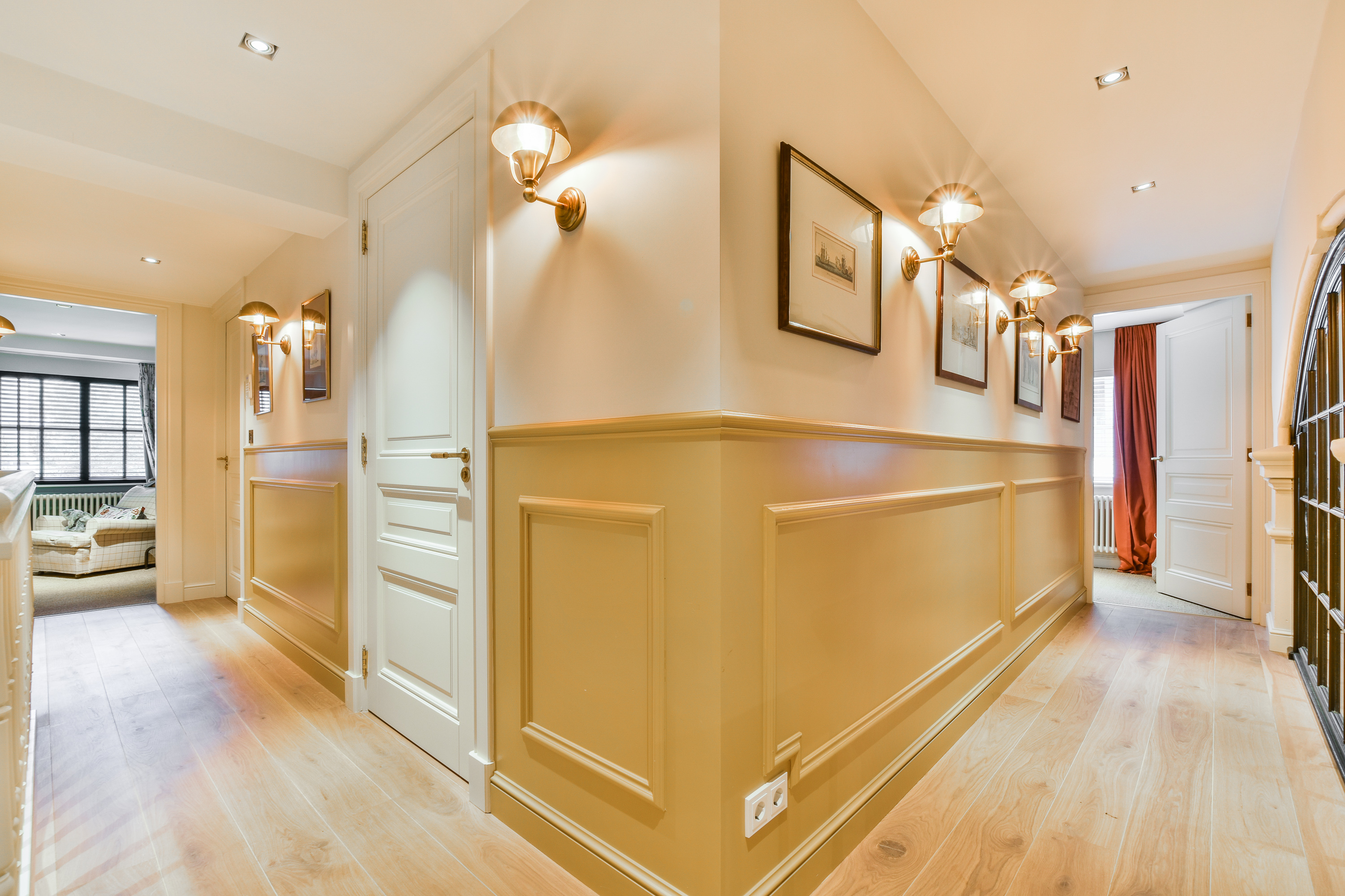 Op deze verdieping valt het gelijk op dat de stijl van beneden is doorgetrokken, met oog voor detail en afwerking. In totaal zijn er drie ruime slaapkamers, waarvan één de master bedroom en twee badkamers, o.a. voorzien van een ligbad en een rainshower voor twee personen. De master bedroom heeft een walk-in-closet en inbouw geluidsspeakers.