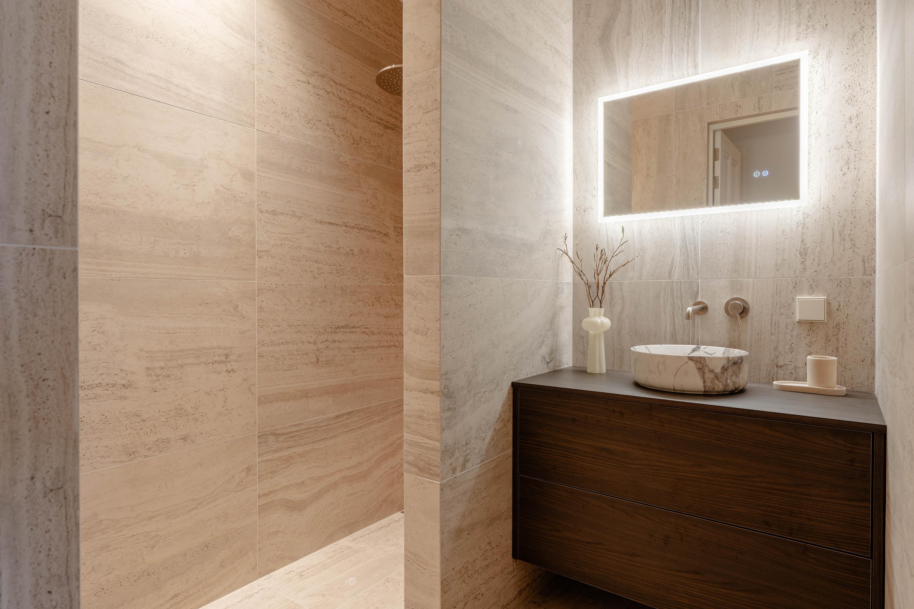 Dit luxe appartement is gelegen op de vierde verdieping en wordt gekenmerkt door een ruimtelijke en lichte opzet met hoge plafonds en opvallende, schuin geplaatste dakramen aan de achterzijde. Deze grote raampartijen geven de woning een uitgesproken karakter en zorgen gedurende de dag voor een uitzonderlijke lichtinval en een vrij, groen uitzicht over de stad. De woonkamer en keuken bevinden zich aan de achterzijde van het appartement en vormen samen één royale leefruimte. De bijzondere dakconstructie in combinatie met de grote dakramen creëert een open en architectonisch interessant geheel, met volop daglicht en fraaie zichtlijnen. Er is ruim voldoende plaats voor zowel een comfortabele zithoek als een royale eettafel. De luxe keuken is strak en tijdloos uitgevoerd en sluit naadloos aan op de leefruimte. De keuken is voorzien van een inductiekookplaat, spoelbak met Quooker, combi-oven, klimaatkast, vaatwasser separate koelkast en vriezer, en beschikt daarnaast over veel werk- en bergruimte. Aan de voorzijde van het appartement bevinden zich twee slaapkamers, beide van goed formaat en rustig gelegen. De master bedroom beschikt over een ensuite badkamer, welke is voorzien van een inloopdouche en een dubbele wastafel met meubel. Centraal op de overloop bevindt zich de tweede badkamer, uitgerust met een inloopdouche en een wastafel met meubel. Daarnaast is er een separaat toilet en praktische kastruimte aanwezig. Via de interne trap is het dakterras bereikbaar. Dit royale dakterras biedt veel privacy en is voorbereid op het plaatsen van een jacuzzi (constructief en dubbele groep elektra). Aansluitend zijn er voorzieningen getroffen voor een buitendouche (waterleiding). Tevens is er een voorbereiding aangebracht voor het realiseren van een buitenkeuken (water- en elektra-aansluiting), waardoor deze buitenruimte een volwaardige aanvulling vormt op het wooncomfort.