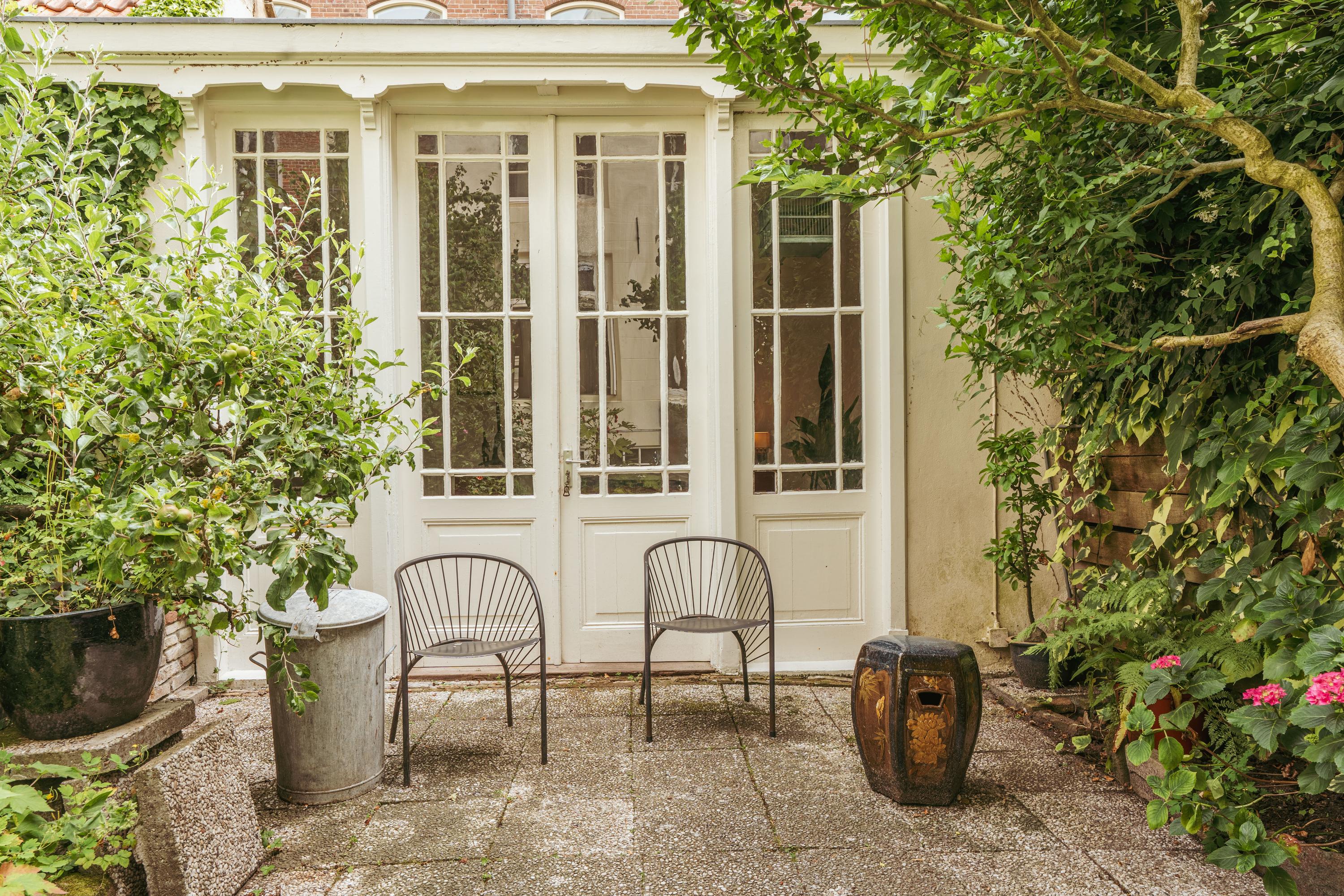 Via het souterrain bereikt u de diepe achtertuin van ca. 50 m²: een zeldzame buitenruimte op deze locatie in de grachtengordel. Achterin de tuin bevindt zich een vrijstaand tuinhuis van ca. 22 m², ideaal voor fietsen, opslag of als hobbyruimte. De ruimte wordt momenteel gebruikt als apart gastenverblijf.