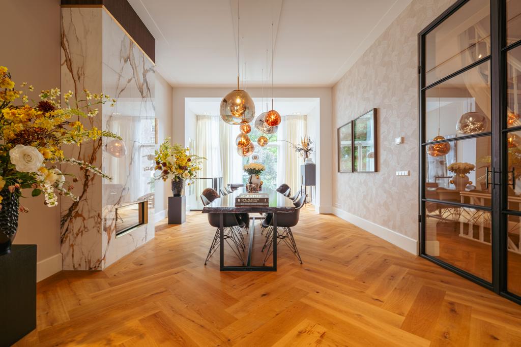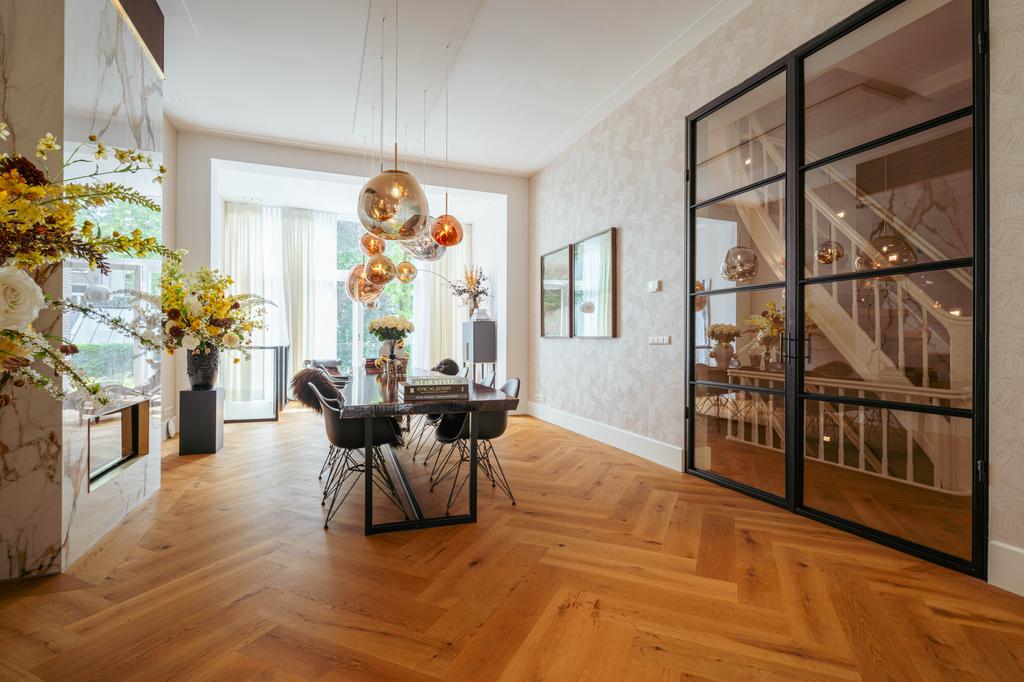De gehele woning is voorzien van een prachtige houten vloer, in visgraat motief gelegd.