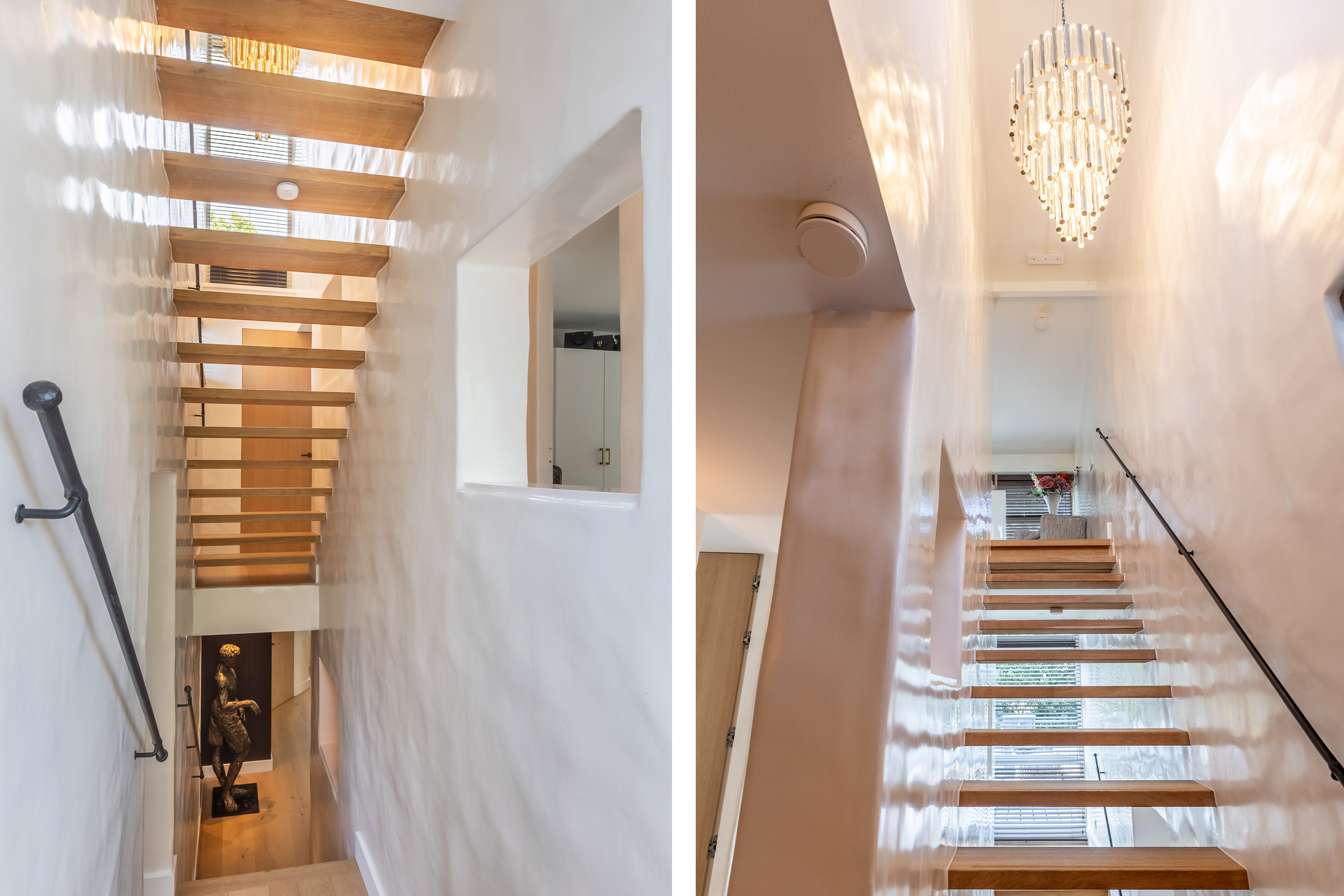 Alle wanden zijn uitgevoerd met exclusief puddingstuc in moderne Ibiza-stijl. Puddingstuc is een hoogwaardige en ambachtelijke afwerkingstechniek voor wanden en plafonds. Het staat bekend om zijn zachte, bijna fluweelachtige uitstraling en subtiele glans. De naam komt voort uit de romige, gladde textuur die doet denken aan pudding.Dit stucwerk wordt met de hand in meerdere lagen aangebracht en zorgvuldig gepolijst, waardoor een naadloos en luxe oppervlak ontstaat. Het oogt warmer dan strak pleisterwerk en rijker dan standaard stucwerk. Puddingstuc wordt vaak toegepast in exclusieve villa’s en boutique hotels vanwege de authentieke, Mediterrane sfeer en de combinatie van strak design met een natuurlijke, elegante uitstraling.