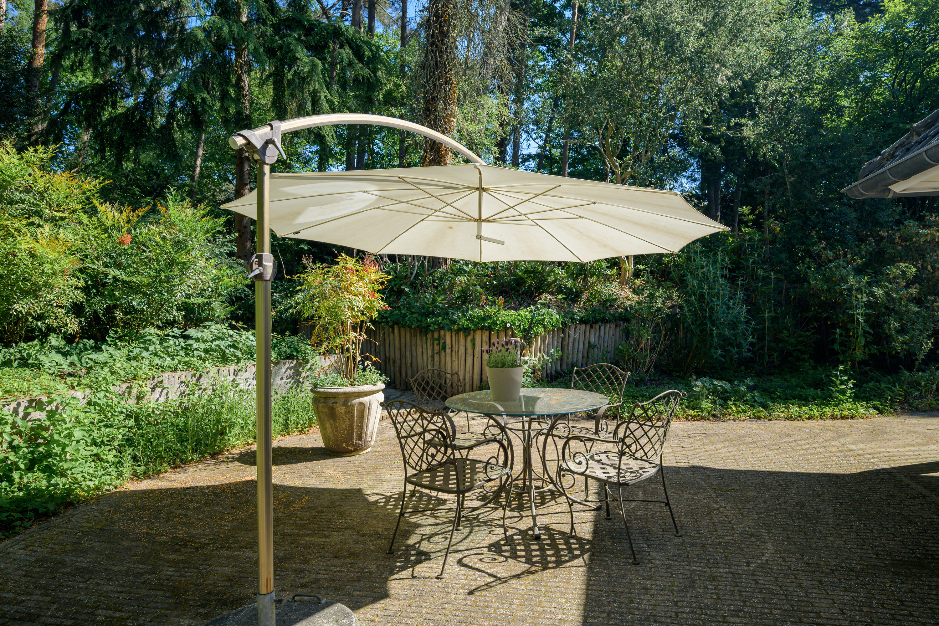 De prachtige, parkachtige (bos)tuin is rondom de woning gesitueerd en biedt ultieme privacy en het genot van het buitenleven. De ligging is uniek, een rustige, groene omgeving maar tevens nabij alle voorzieningen.