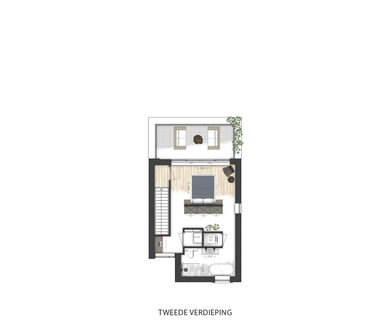 Buiten vindt u een tuin met steiger, boven een dakterras als extra buitenverblijf. Heerlijk om die zomerse dag in de tuin of op het terras door te brengen met vrienden en familie. Straks gaat de barbecue aan, eerst een aperitiefje. Fantastisch dat uw woning in Bonheur ook alle mogelijkheden heeft om van het buitenleven te genieten.