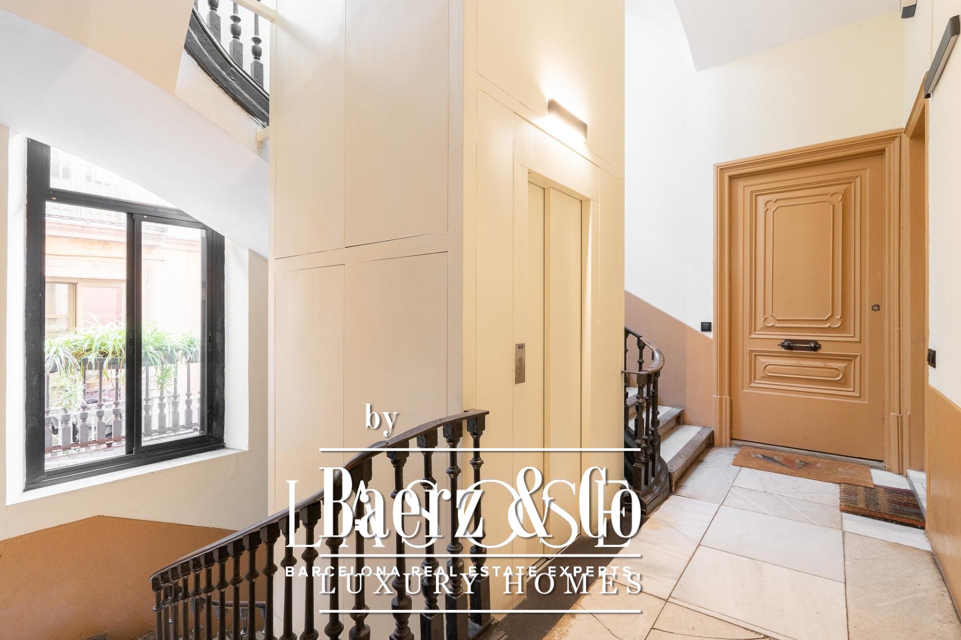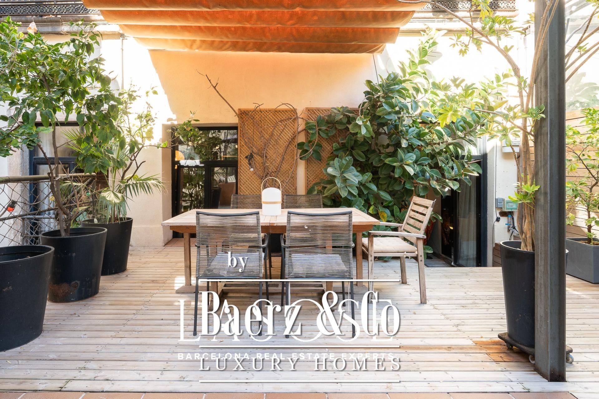 Het terras, recentelijk voorzien van een discrete nieuwe overkapping, versterkt het gevoel van privacy voor leven in de open lucht. Elke hoek getuigt van een zorgvuldige renovatie met respect voor authentieke architectonische details. Voorzieningen omvatten lift, inbouwkasten, moderne apparatuur, verwarming, airconditioning en een privézwembad. Gelegen op een steenworp van Paseo Colón, Port Vell en op korte afstand van de stranden en culturele hotspots van Barcelona, nodigt dit appartement uit tot een leven in balans tussen de dynamiek van Barri Gotic en het comfort van een eigen thuis. Luxe appartement te koop in Barcelona.