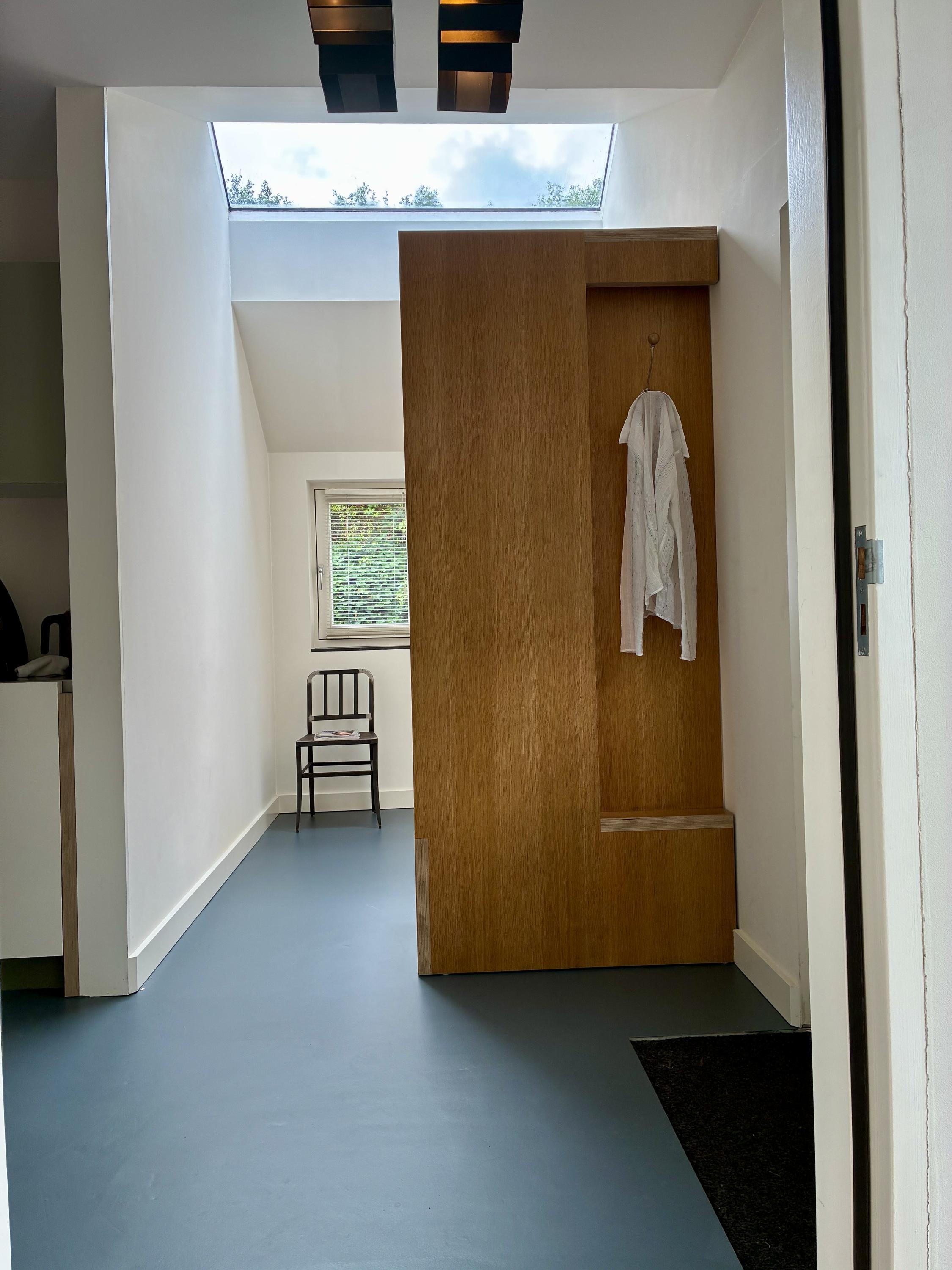 In de wandkast is o.a. de groepenkast (8 groepen, meerdere krachtgroepen + aardlekschakelaar) geplaatst.