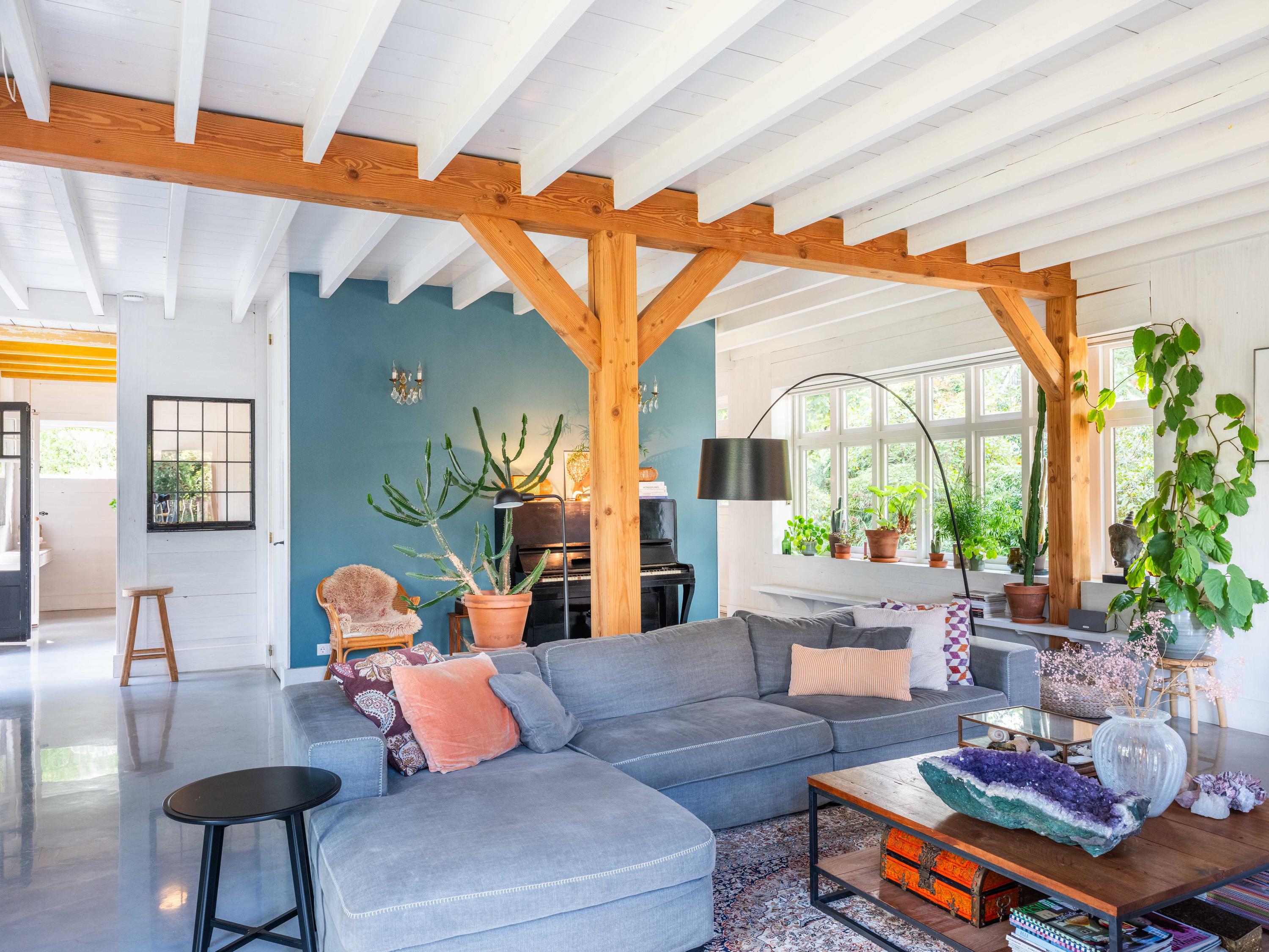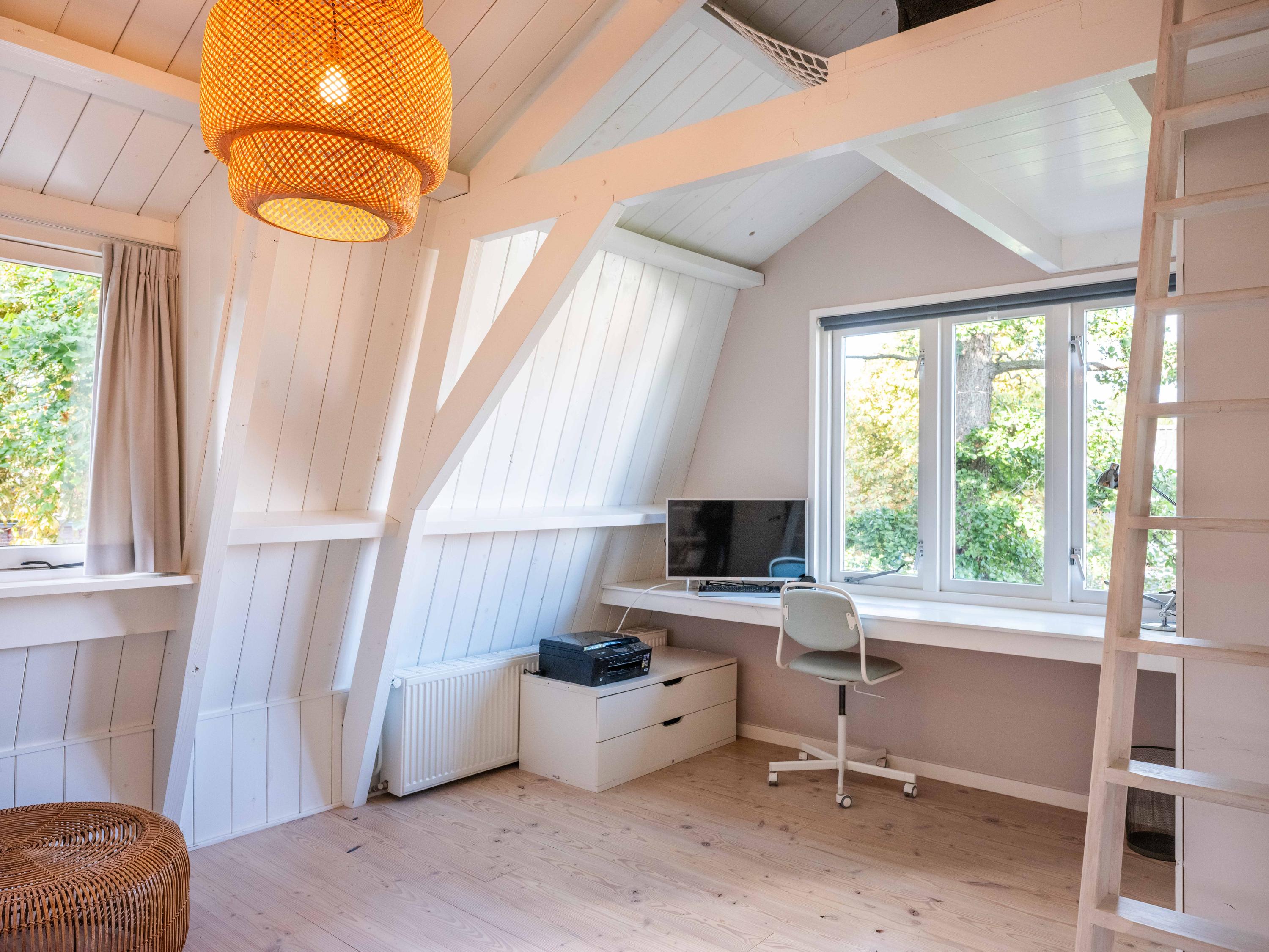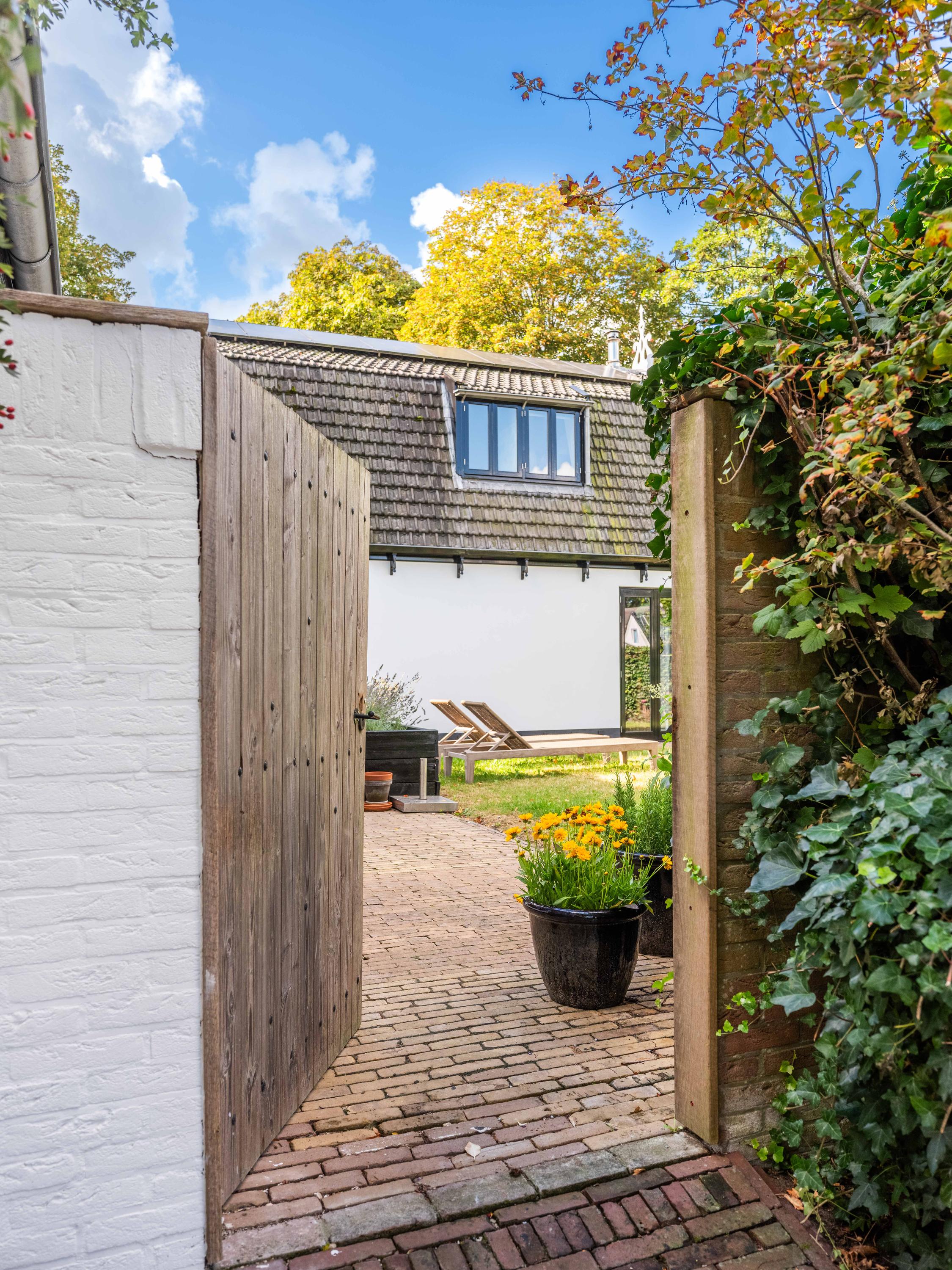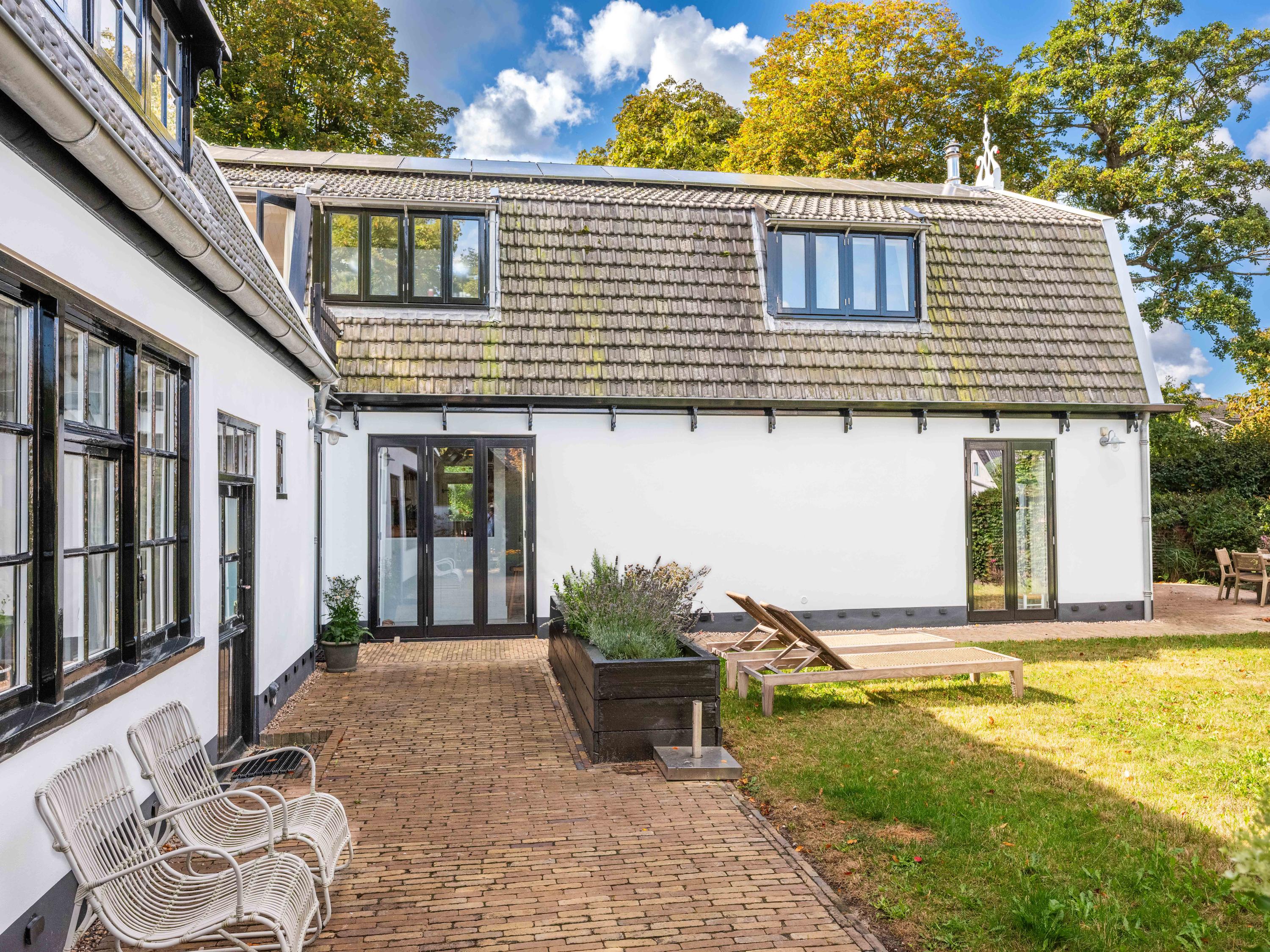 Aan de andere zijde van de woning bevindt zich het voormalige atelier, thans in gebruik als bijhuis met keukentje en slaapgelegenheid. Met ca. 80 m² vloeroppervlak en een eigen toegang is dit een heerlijk lichte ruimte, ideaal te gebruiken als atelier, kantoor aan huis, praktijkruimte of bijvoorbeeld als kangoeroewoning of verblijf voor een au-pair.