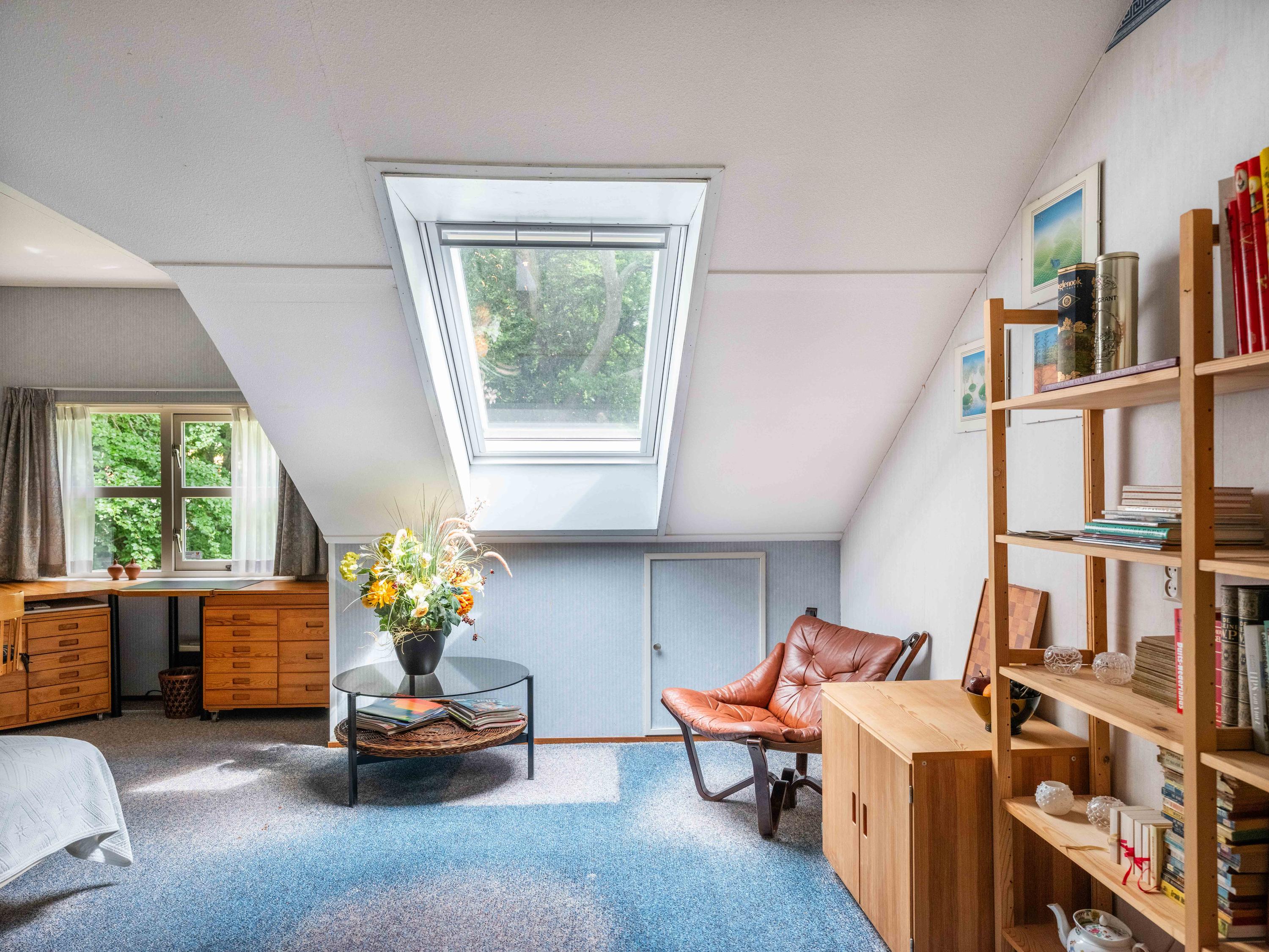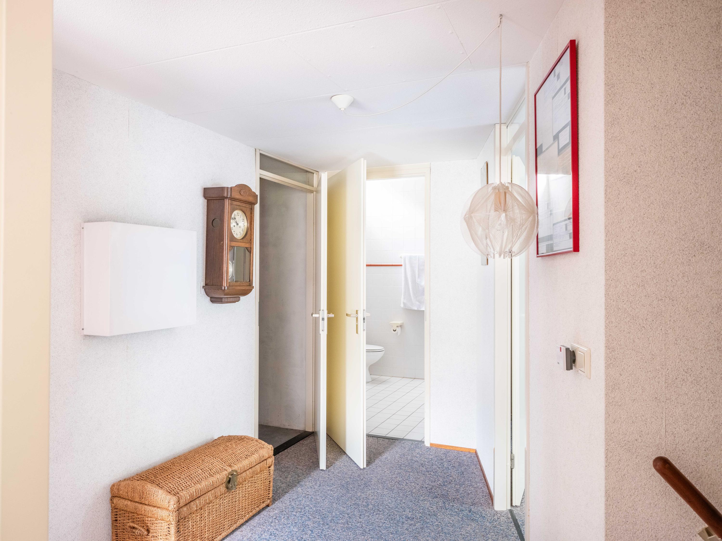 De eerste verdieping met dakkapellen biedt drie slaapkamers, waaronder een bijzonder ruime master bedroom. Daarnaast is er een tweede badkamer met douche, toilet, wastafel en wasmachine-aansluiting. Extra bergruimte en een separate stookruimte met wasmachine-aansluiting en toegang tot extra bergruimte maken het plaatje compleet.