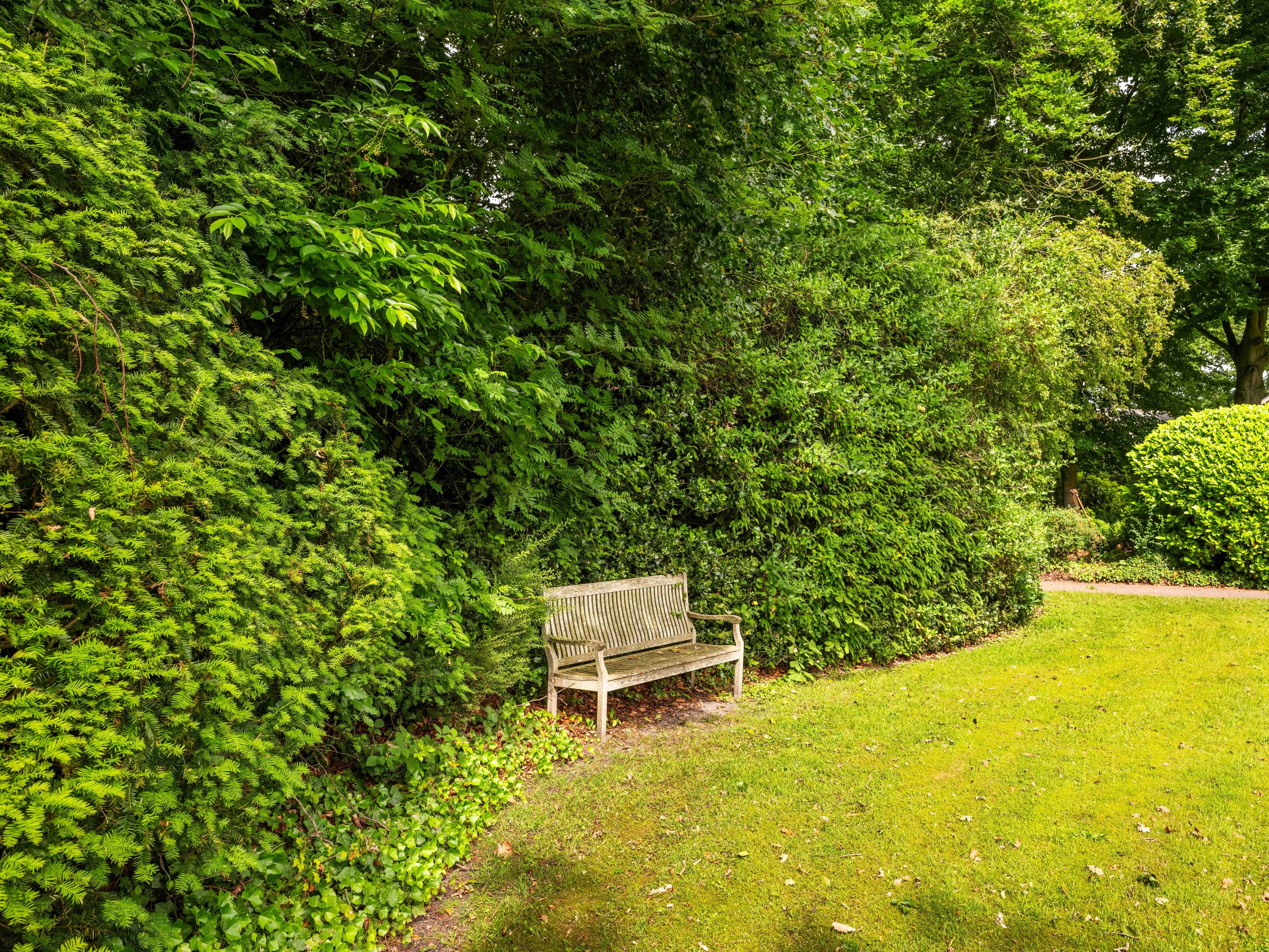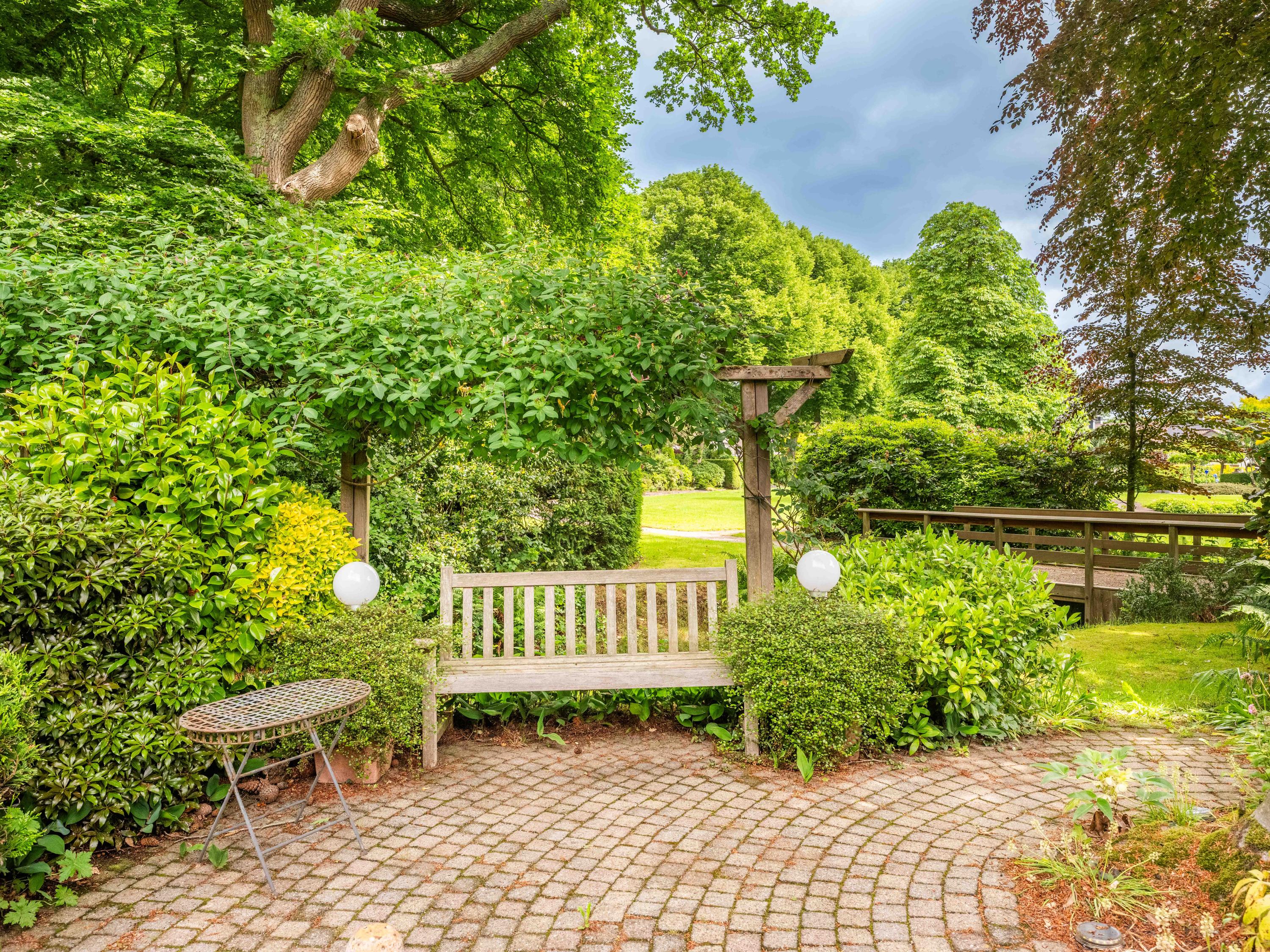 Via de grote schuifpui stapt u zo de zonnige, beschutte achtertuin in, een heerlijke plek om te genieten van rust en privacy, met een terras en uitzicht op de vijverpartij. De fraai aangelegde, zonnige tuin is een oase van rust en privacy. Het terras grenst aan het exclusieve, mandelige park met vijverpartijen – een unieke plek waar u volop kunt genieten van de natuur. Het park is uitsluitend toegankelijk voor omwonenden.