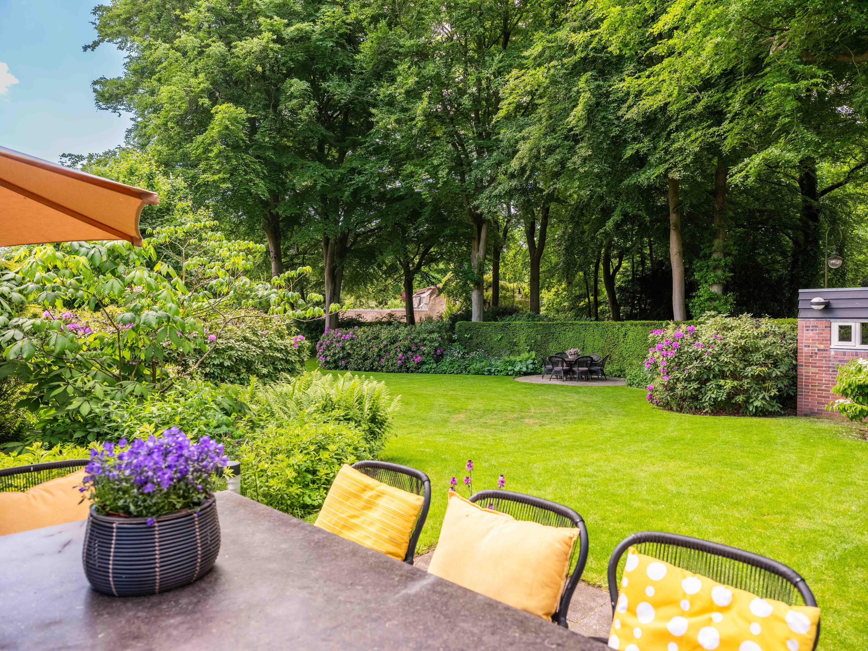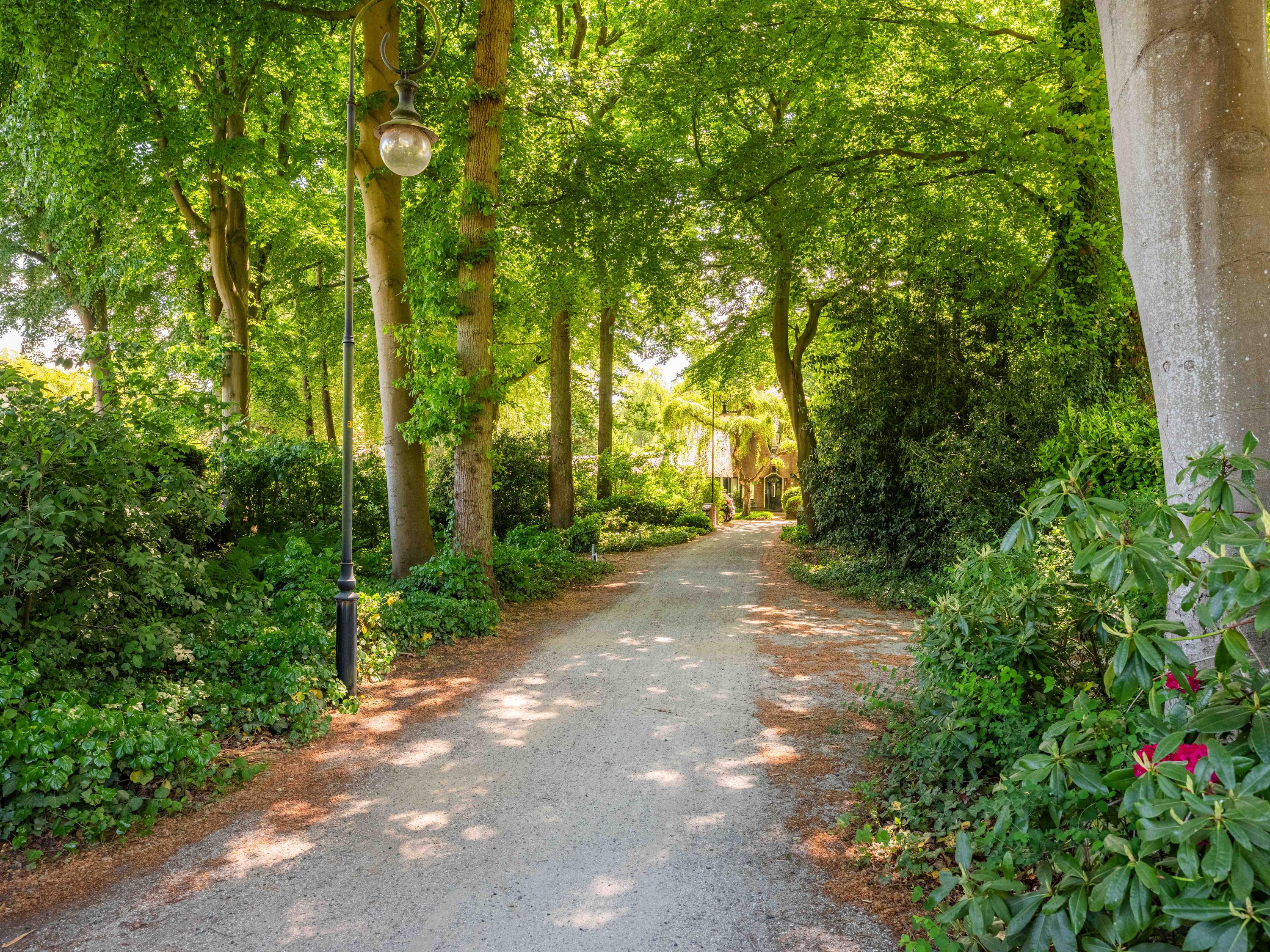 Bij het entree van het park vanaf de Studler van Surcklaan wordt u verwelkomt door het "toegangshuisje" nu in gebruik als kantoor en behorende bij de villa die wij hier te koop aanbieden! De villa en het bijhuisje zijn gelegen in een prachtige parkachtige tuin met aan de de achterzijde een geheel omsloten en privacyvolle achtertuin.